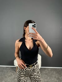 Siyah Gömlek Yaka Sırt Dekolteli Bluz