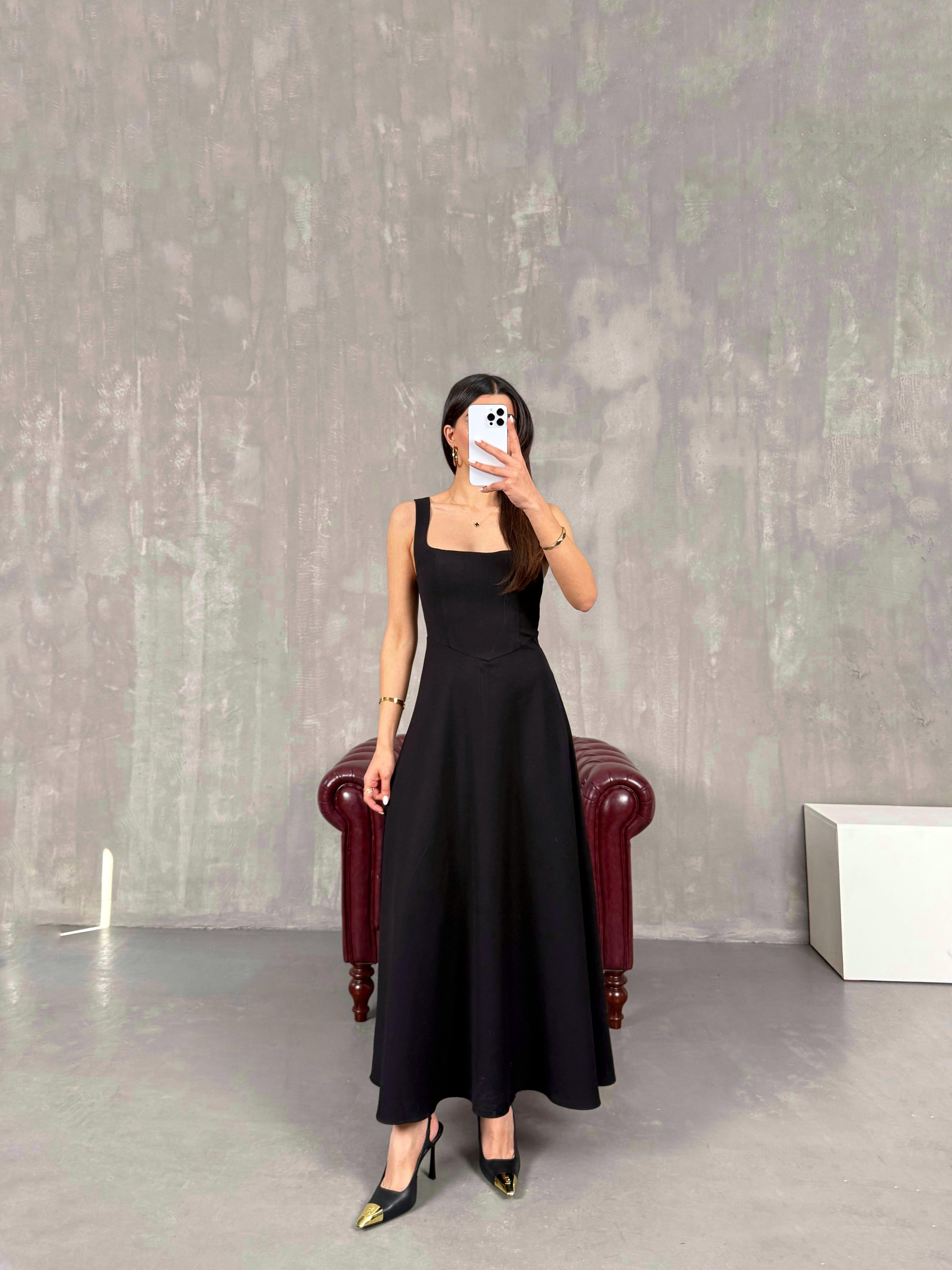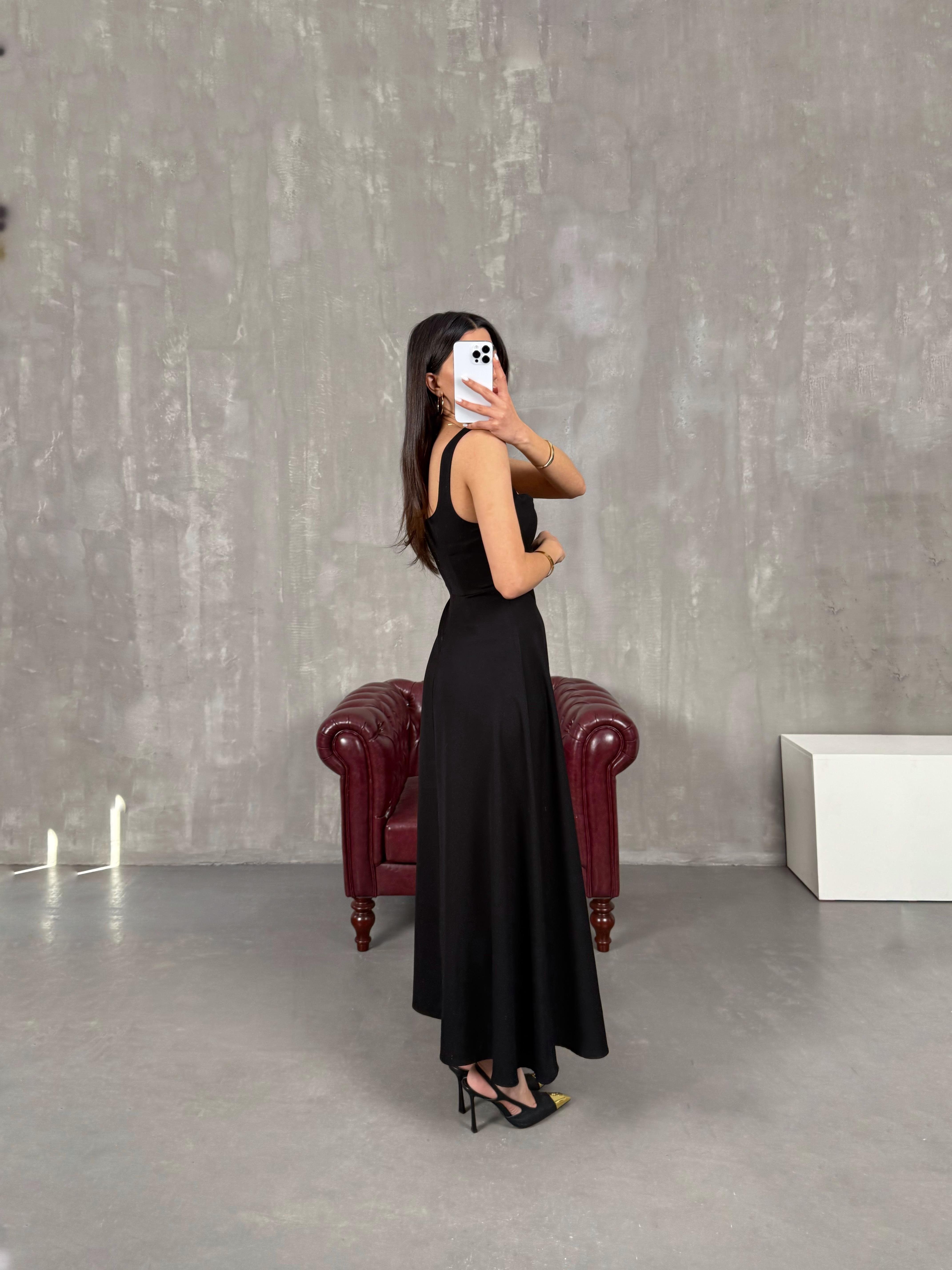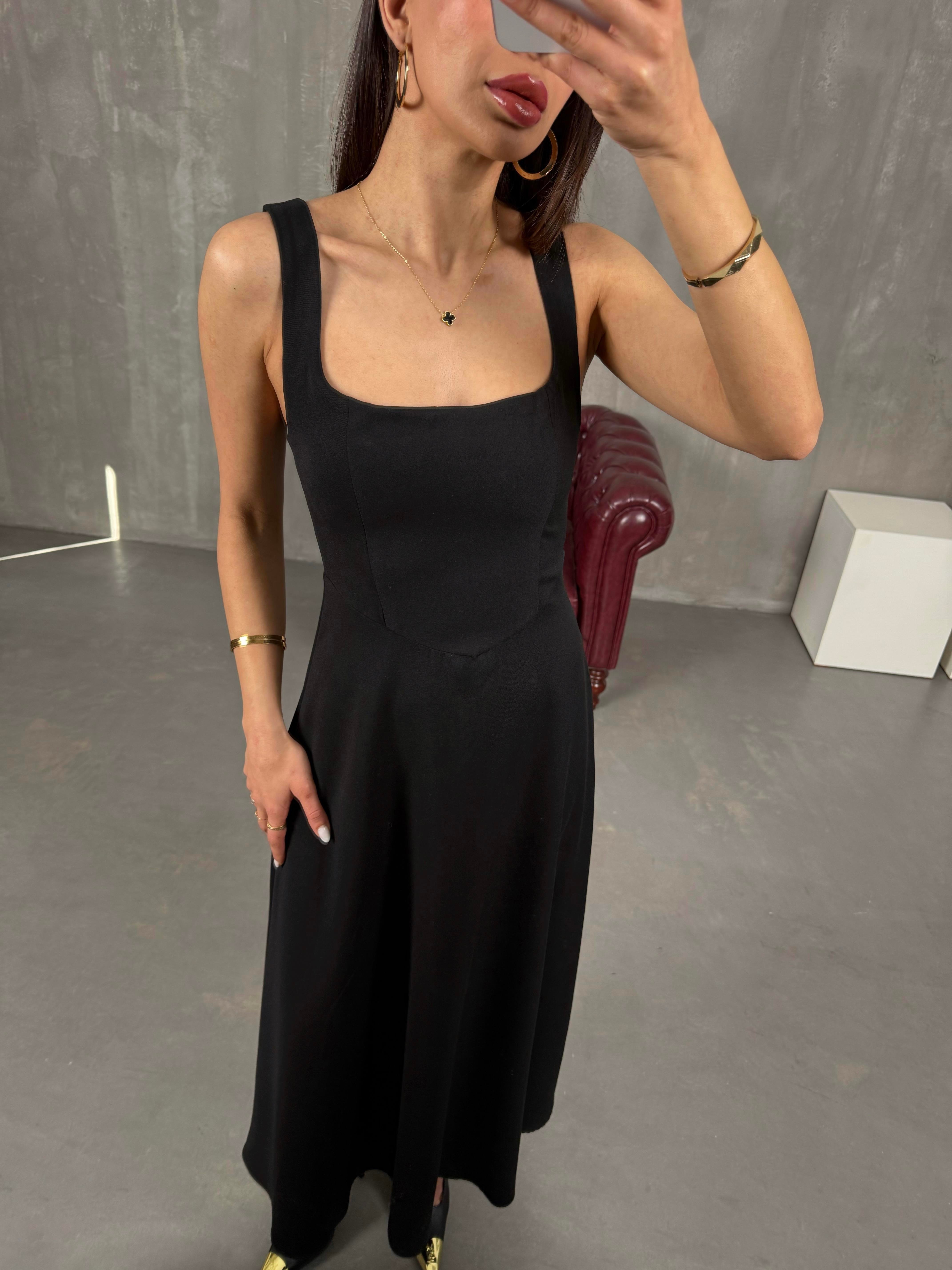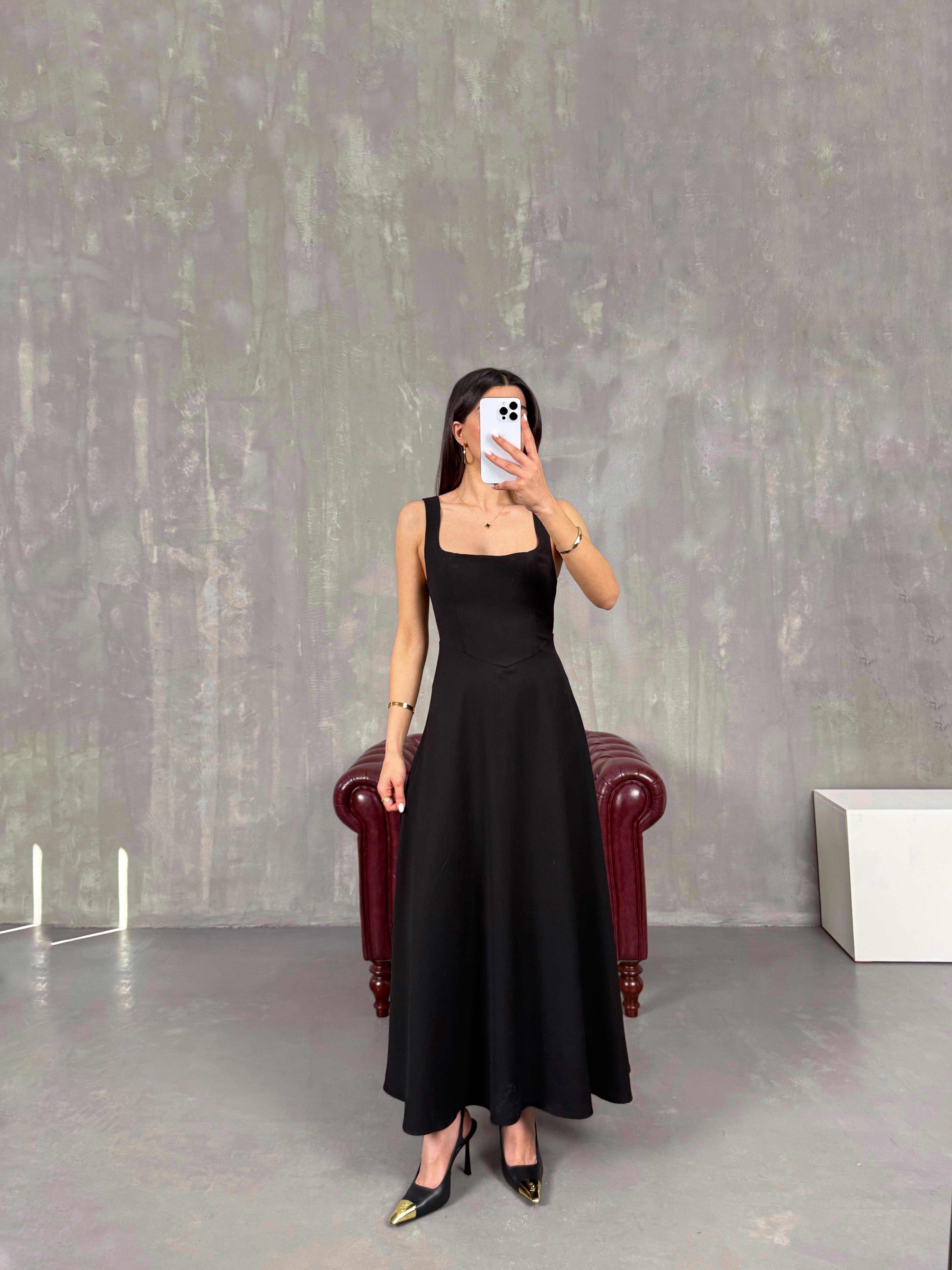 فستان أسود بحمالات عريضة وسحاب Gaus00072
