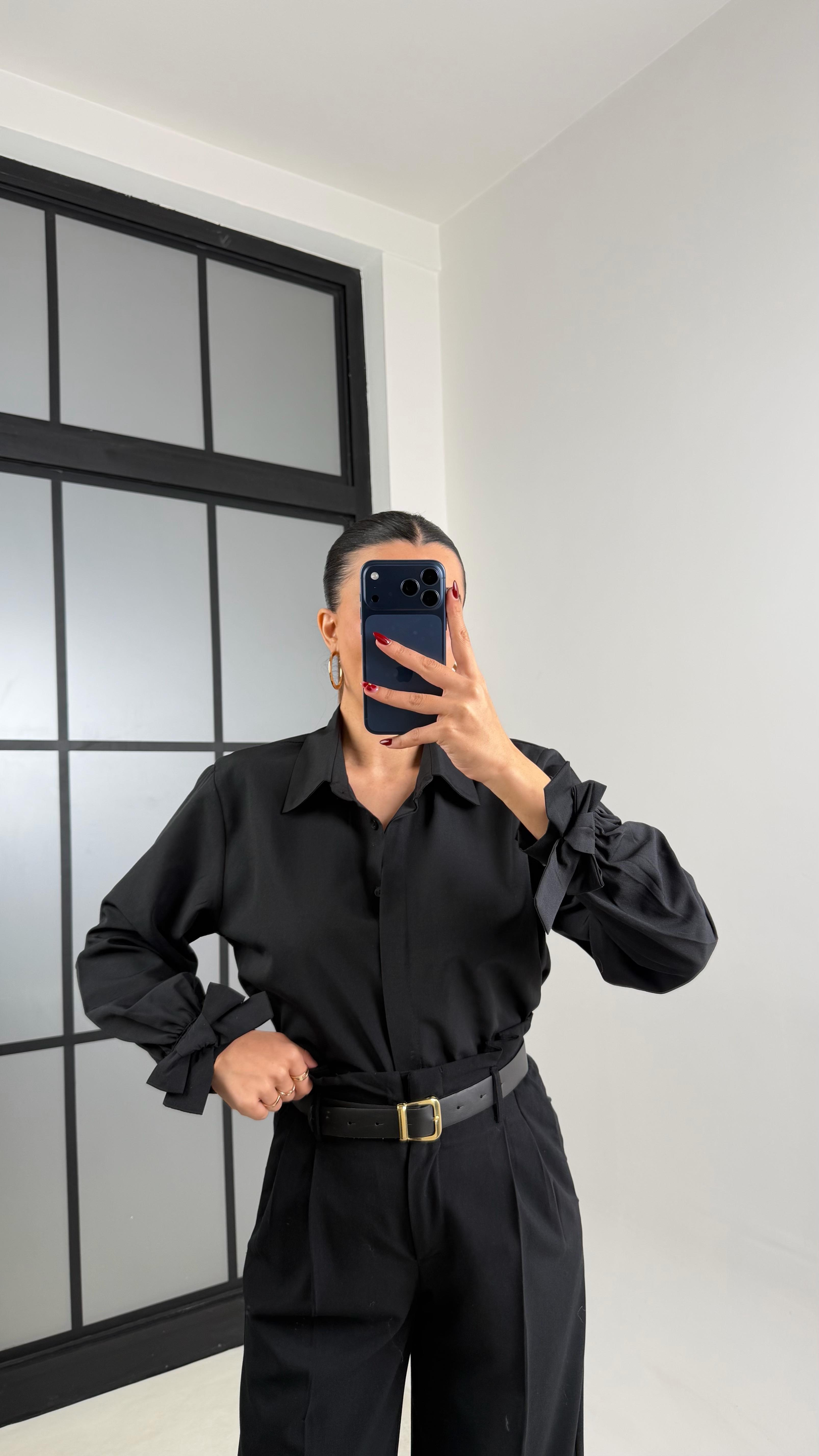 Siyah Kol Kurdele Detaylı Gömlek GAUS-00680