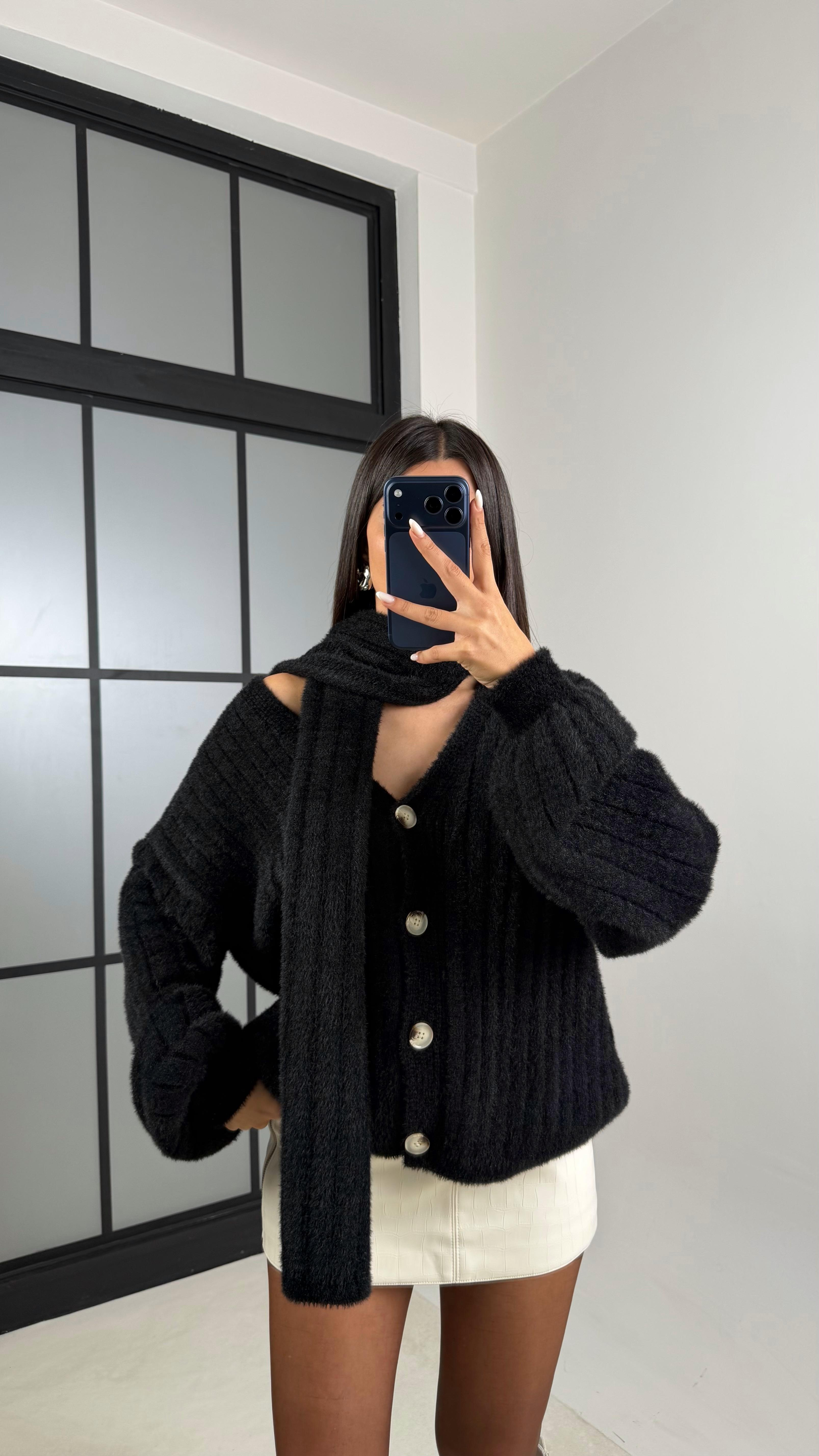 Siyah Şal Detaylı Yumuşak Dokulu Triko Hırka GAUS-00650GAUS الكارديغان  GAUS-00650