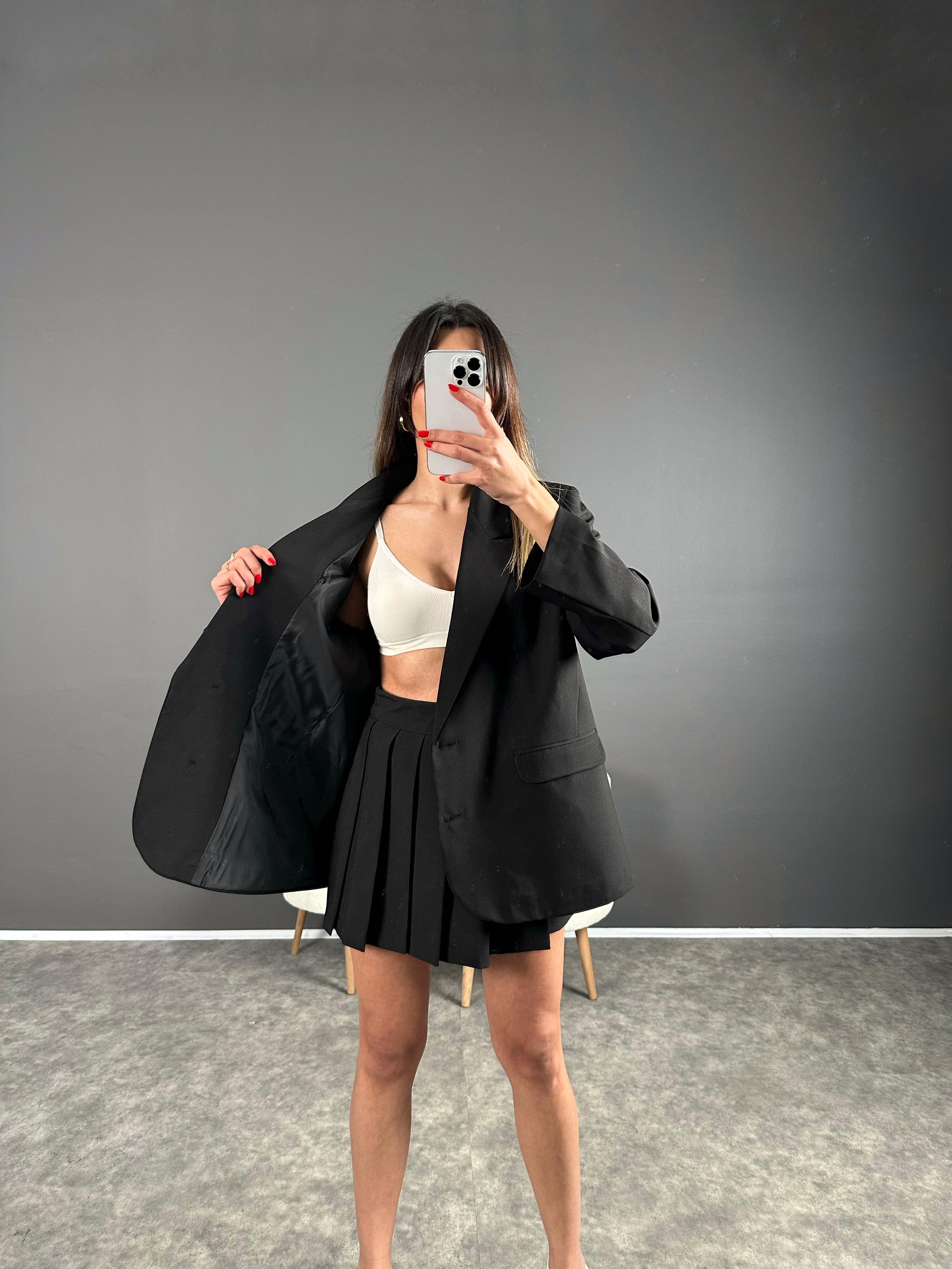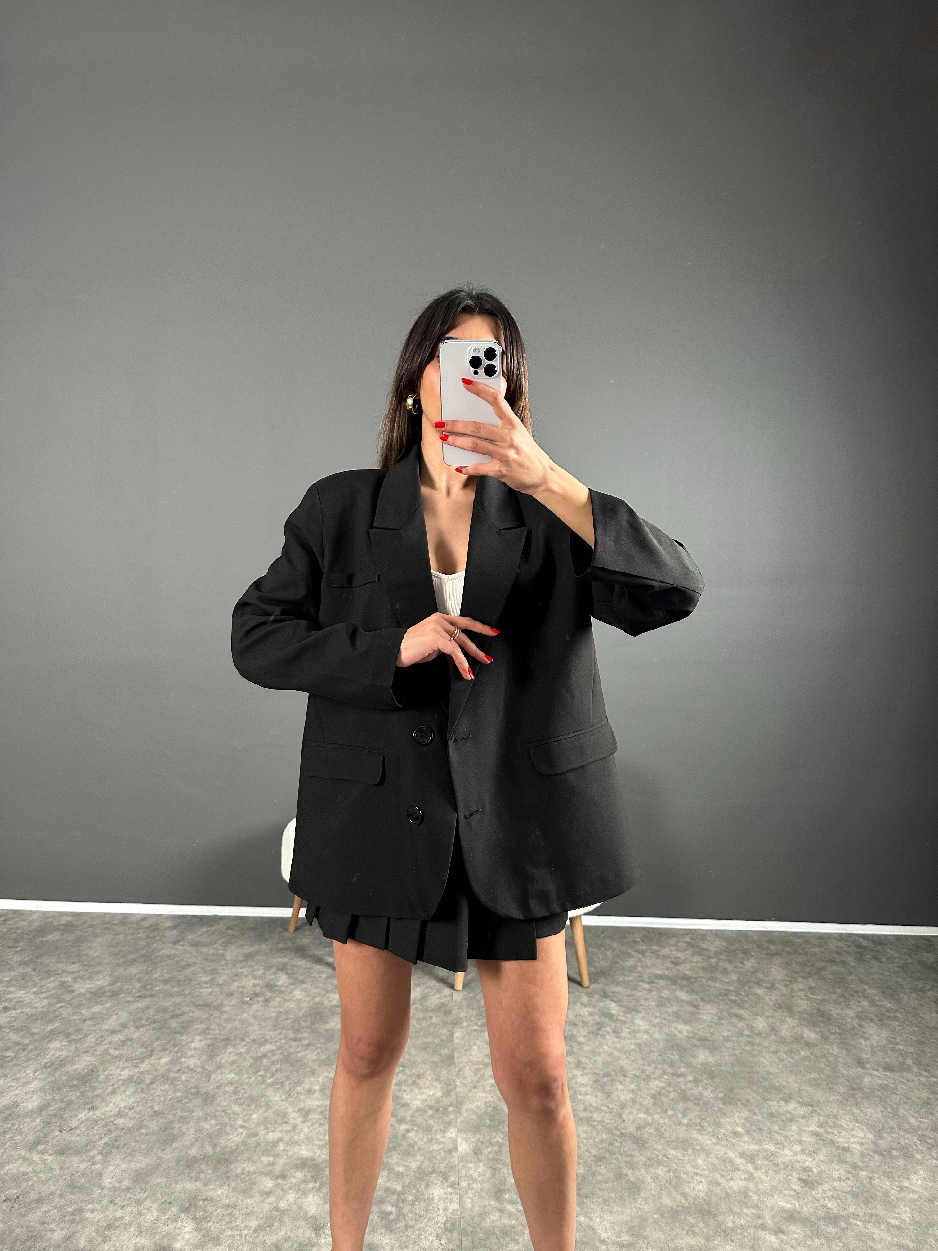 Siyah Sırt Baskılı Oversize Blazer Ceket