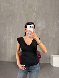 بلوزة تريكو لون أسود بياقة شكل V Gaus00042
