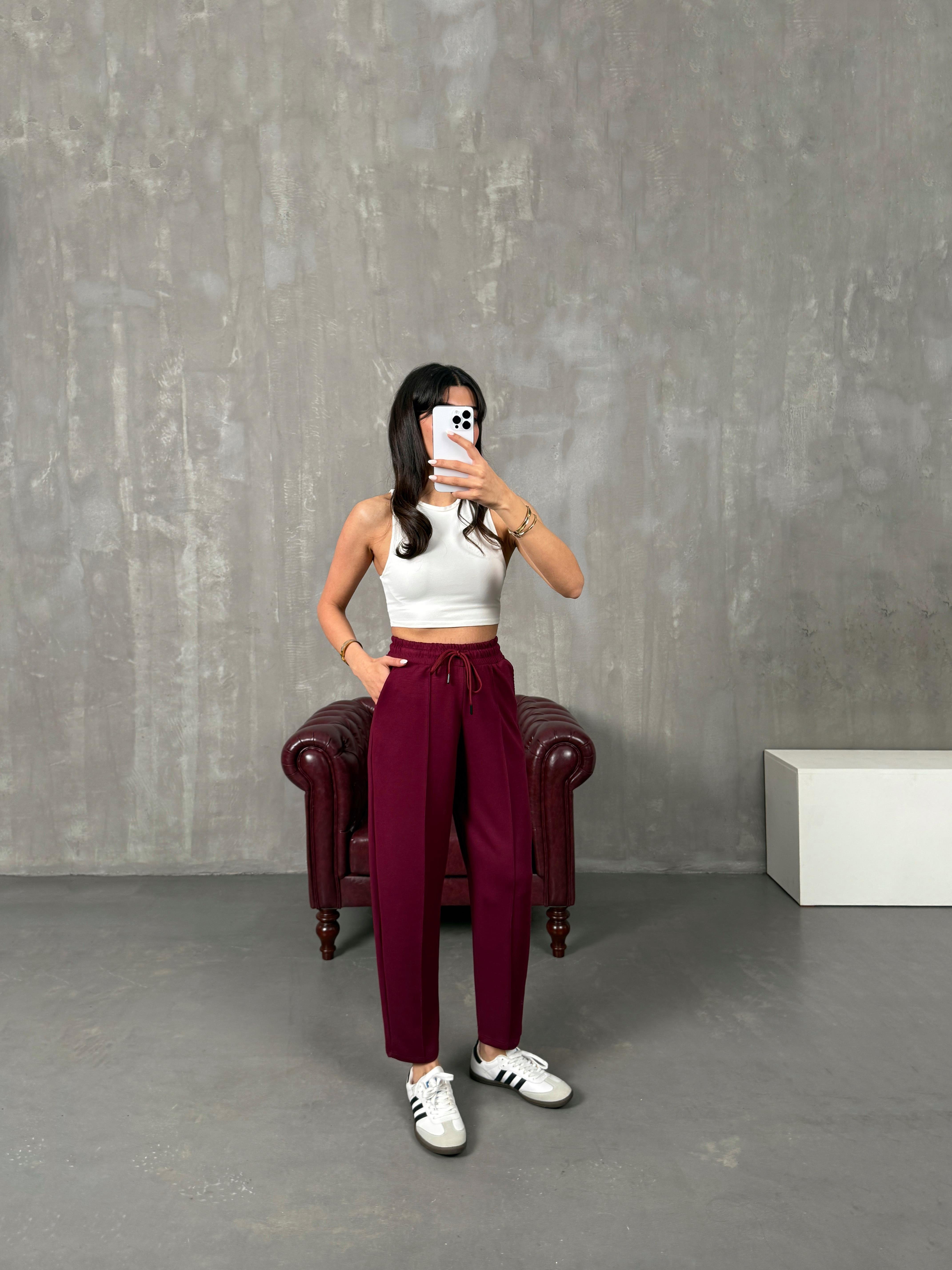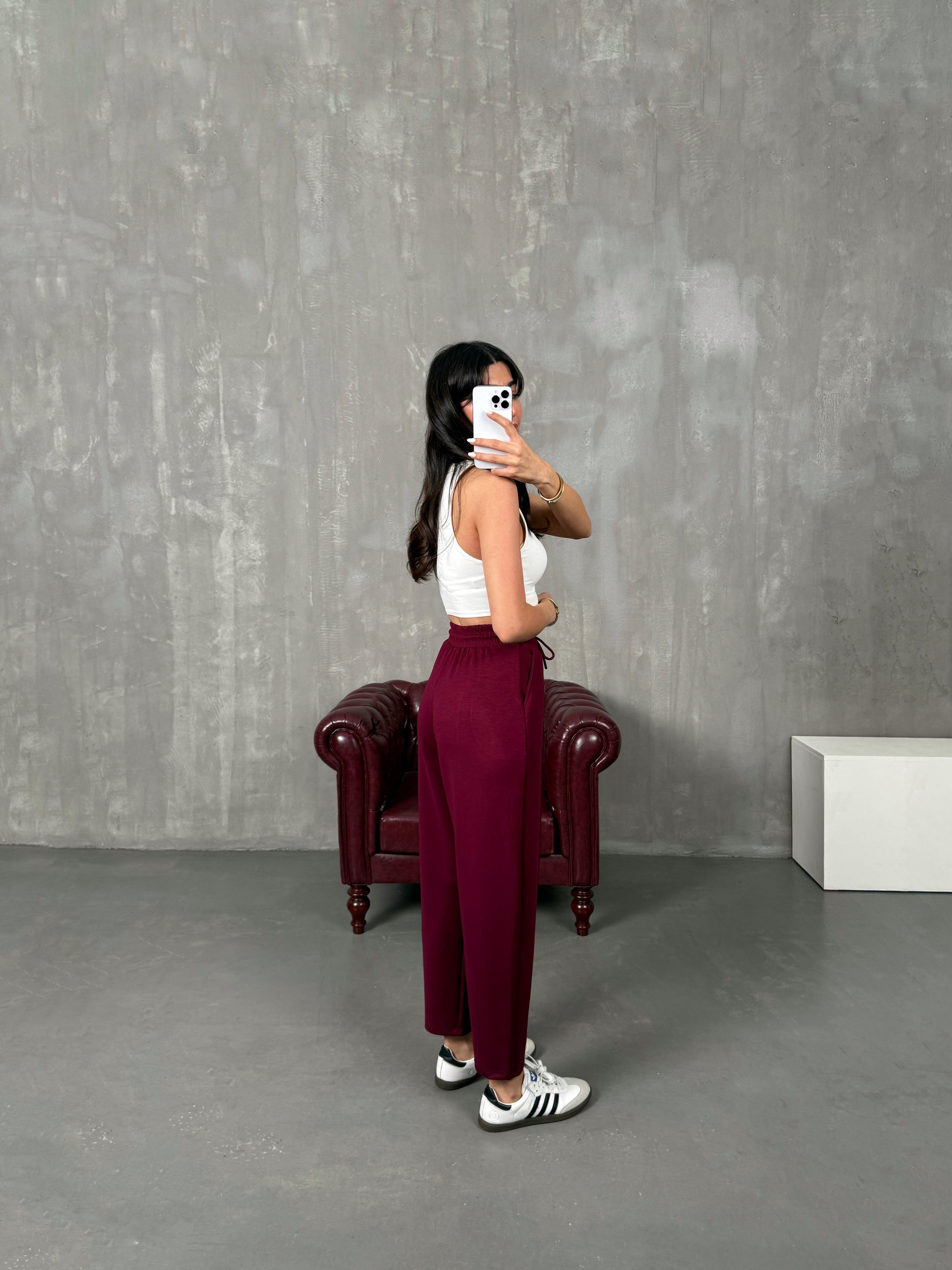 Sofya Bordo Oysh Muadil Modal Kumaş Balon Pantolon