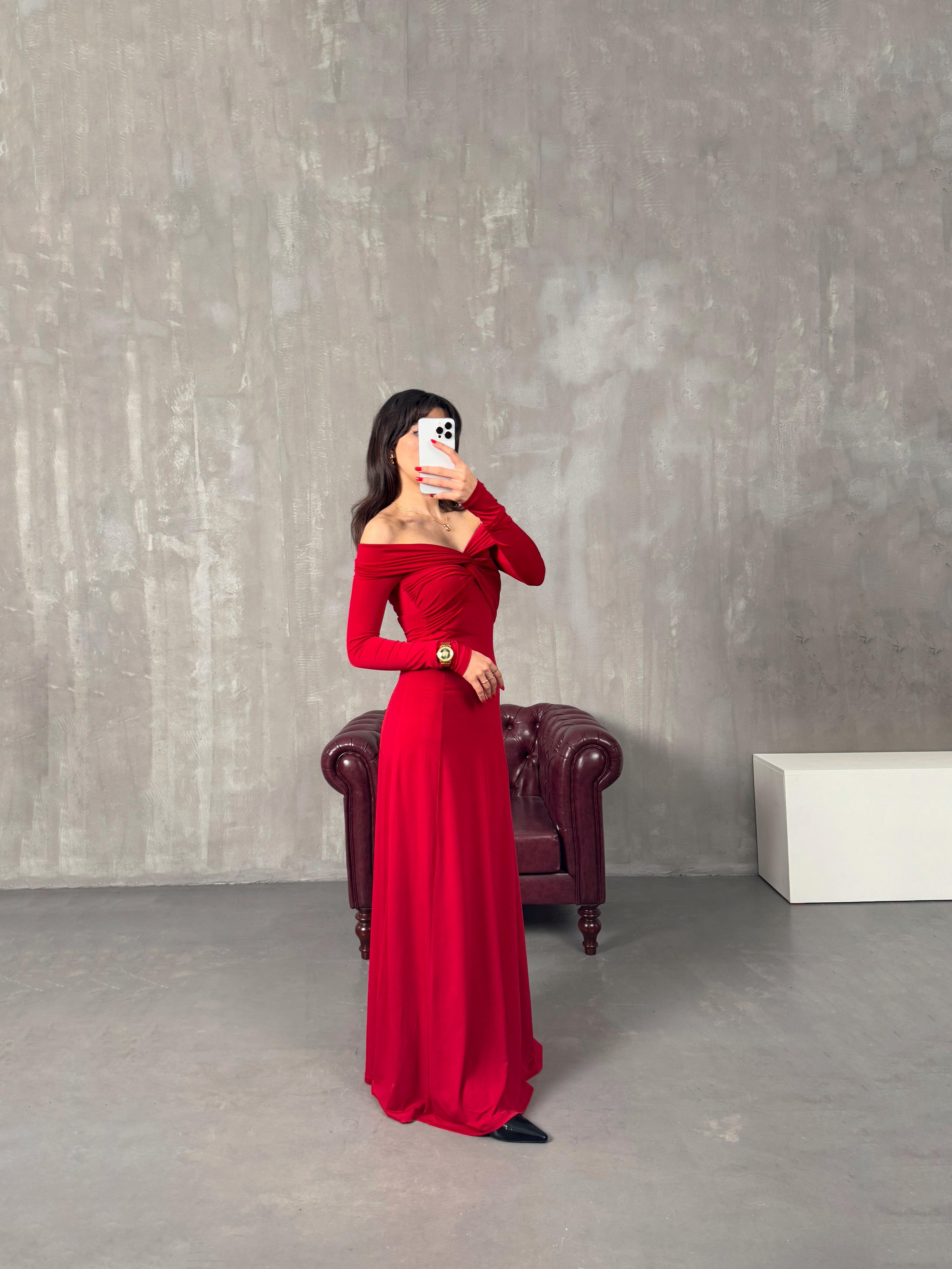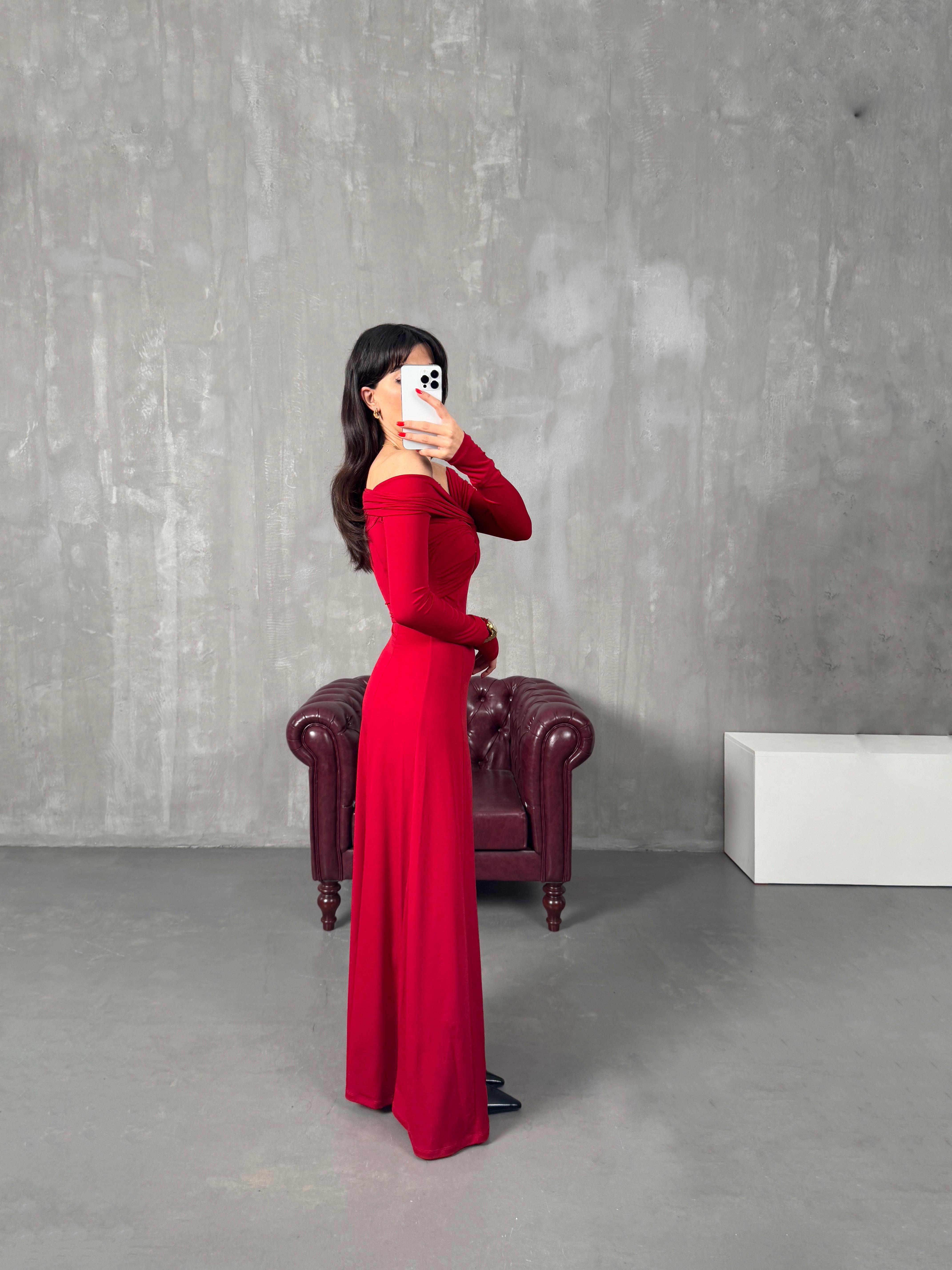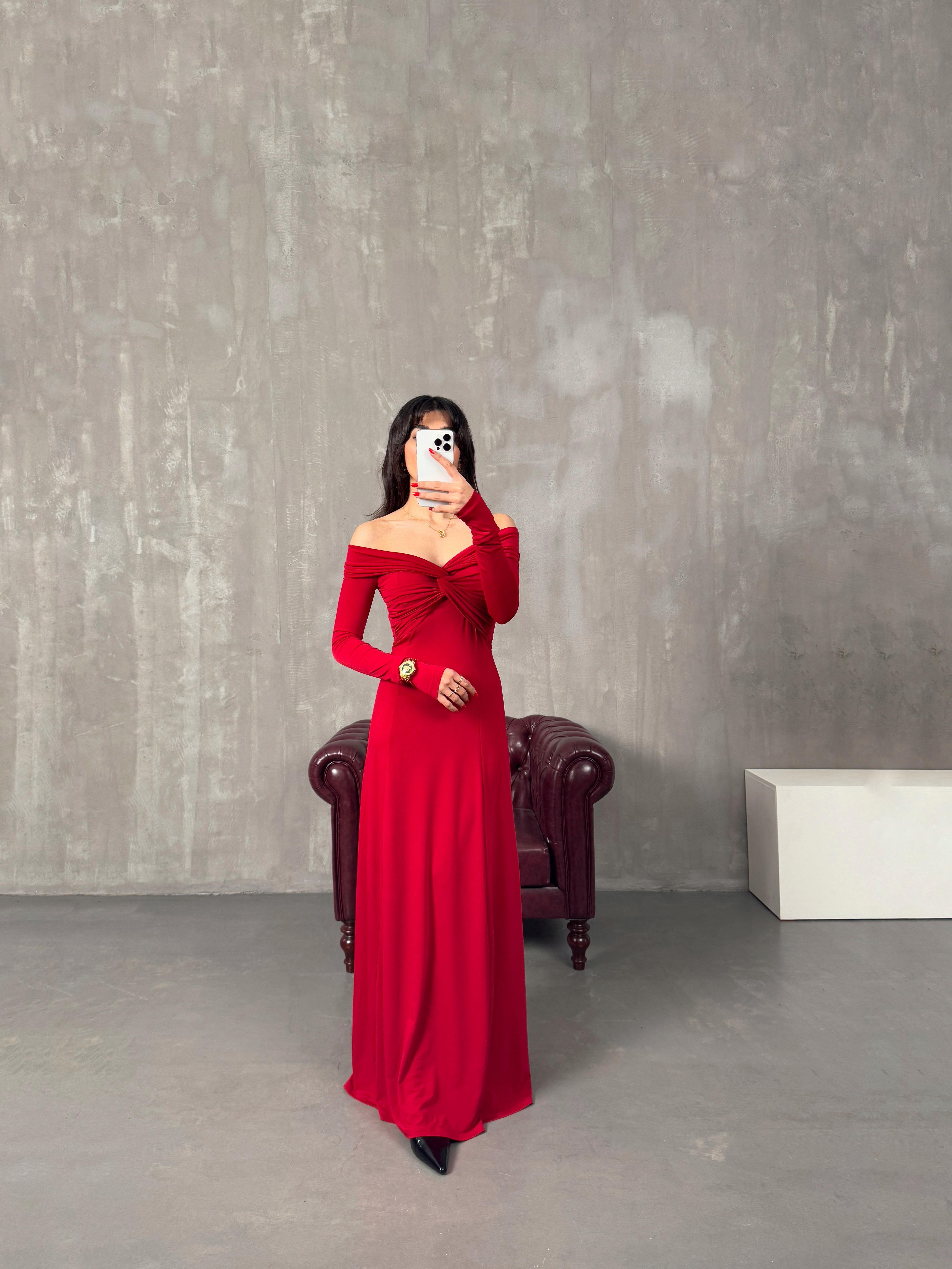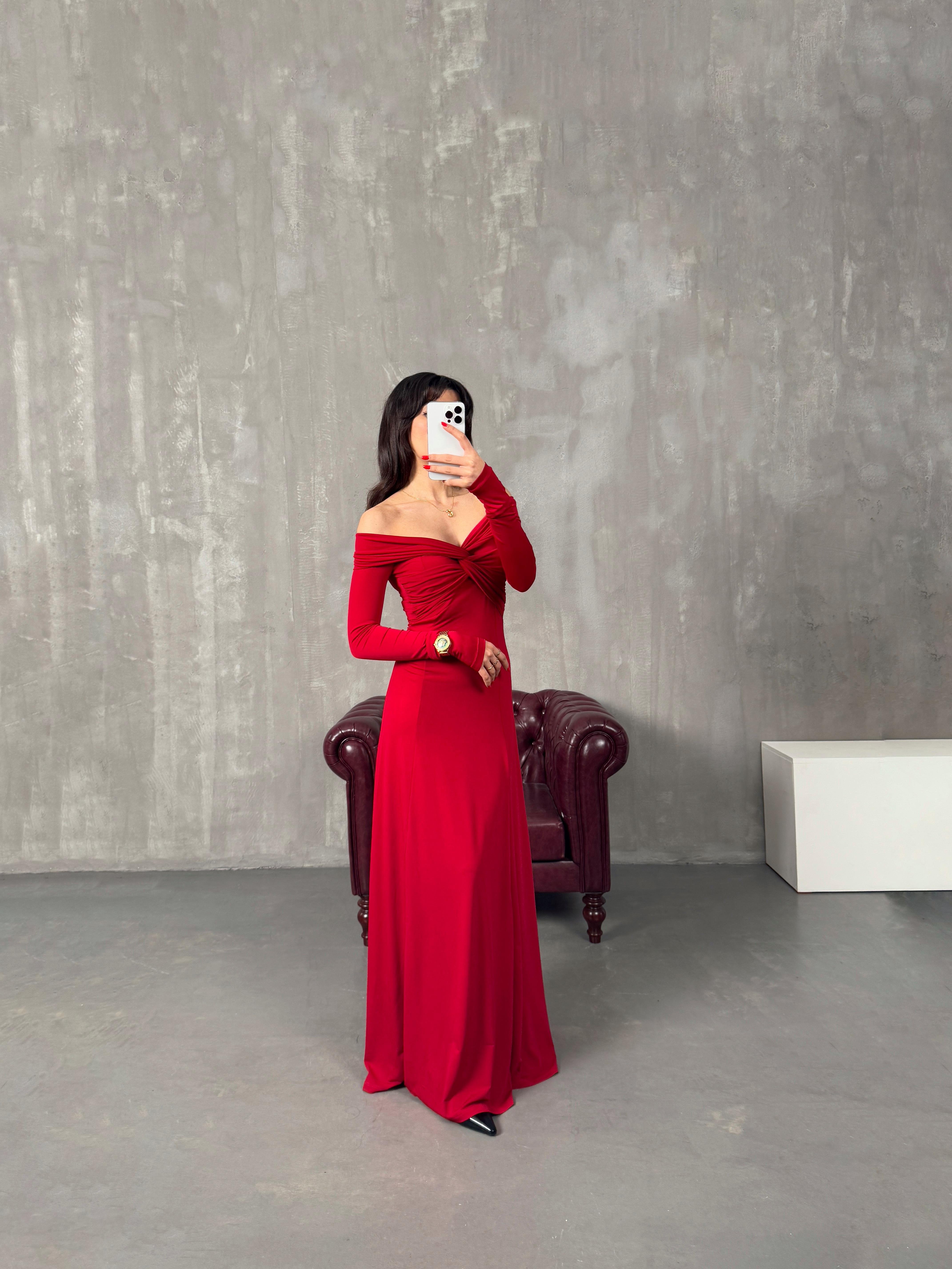 Sonia Kırmızı Madonna Yaka Pinterest Elbise