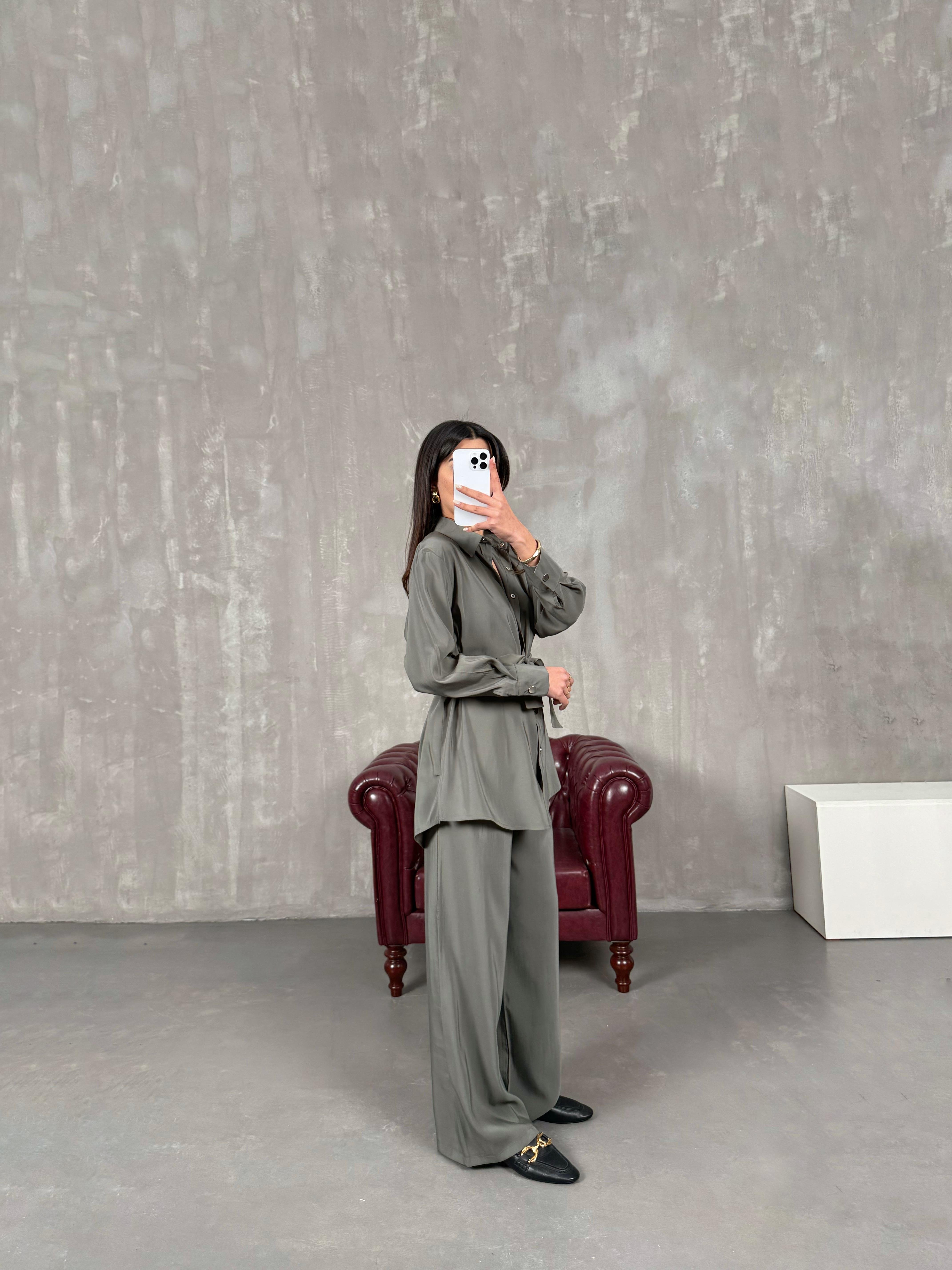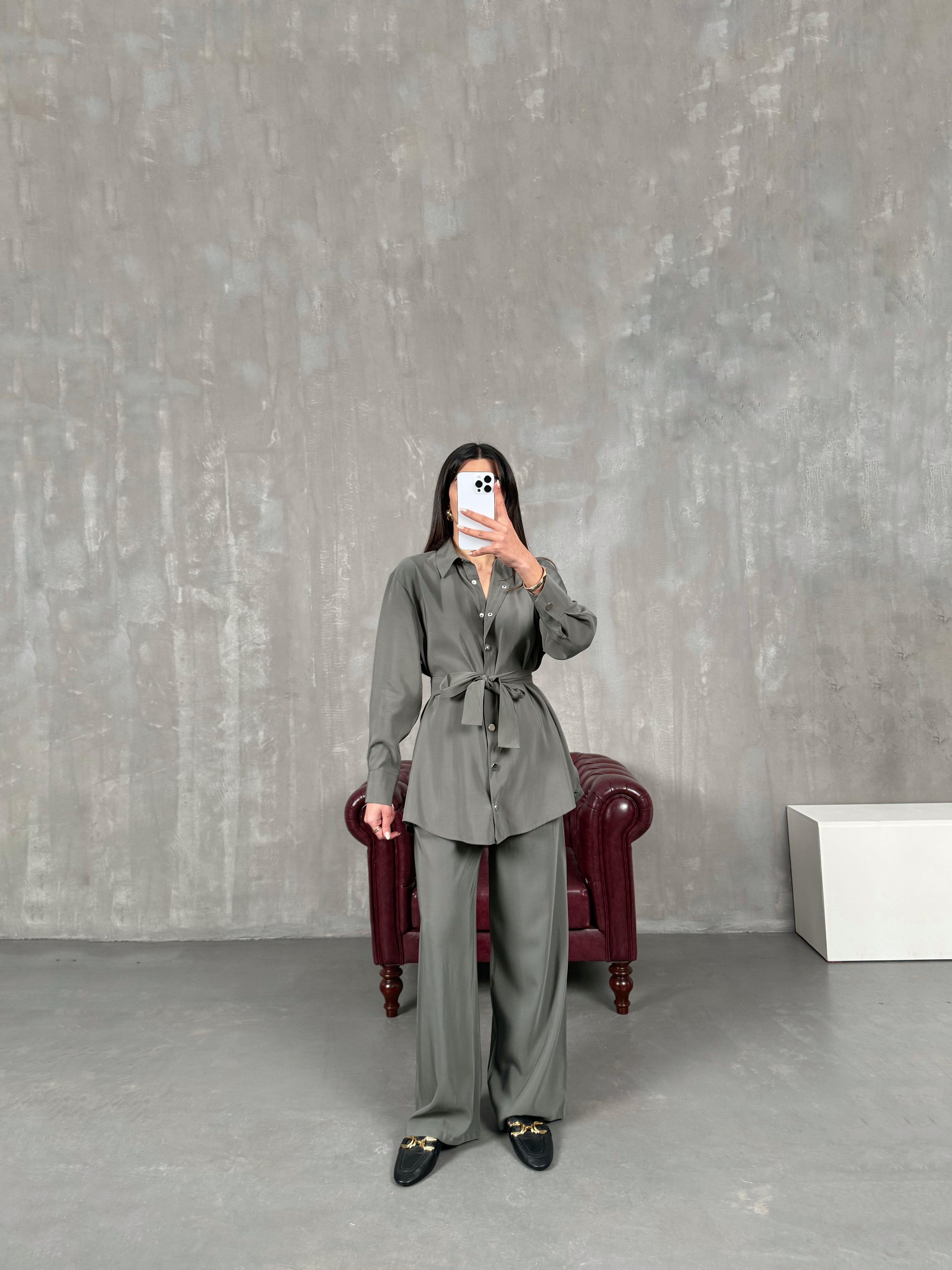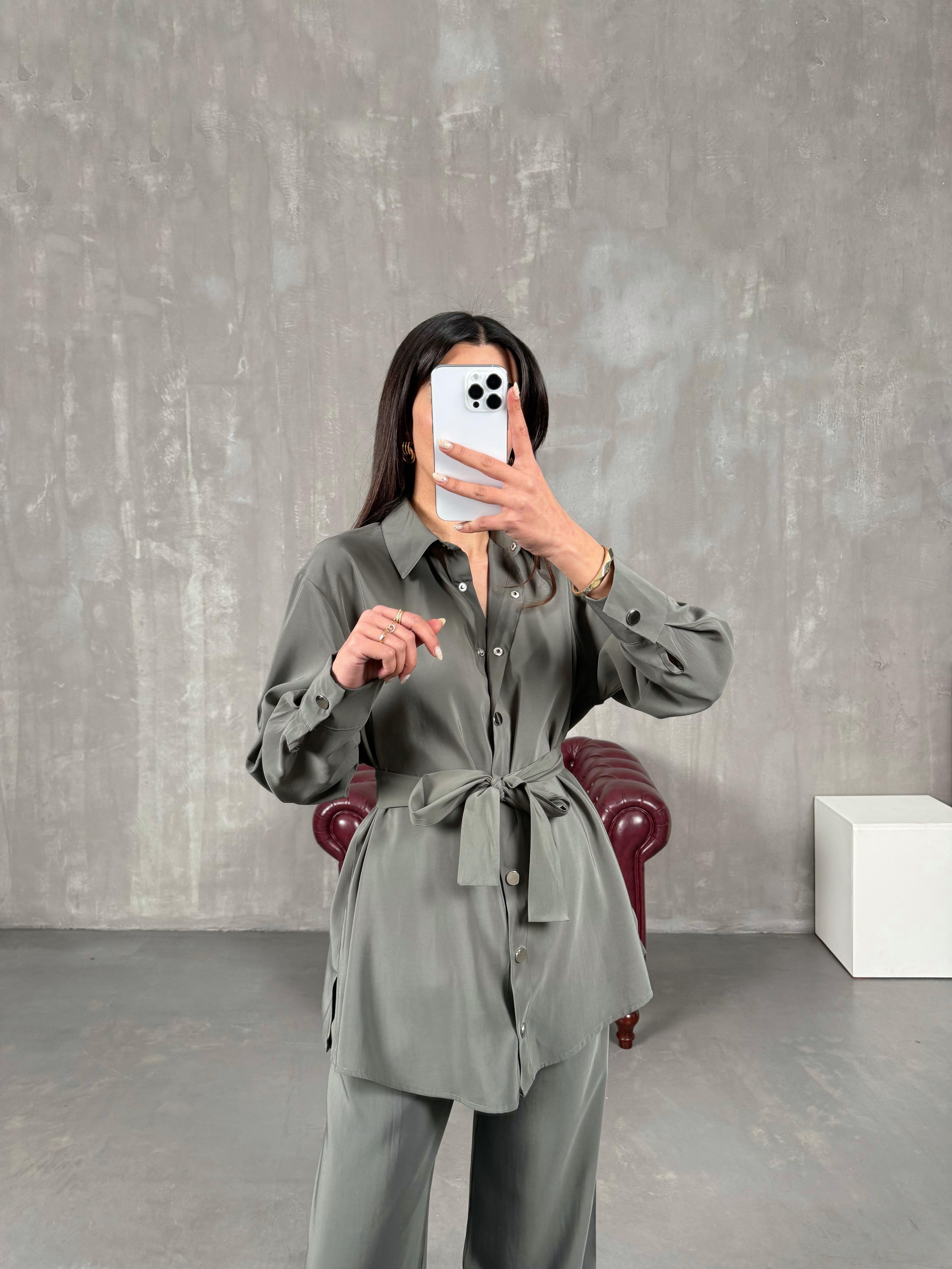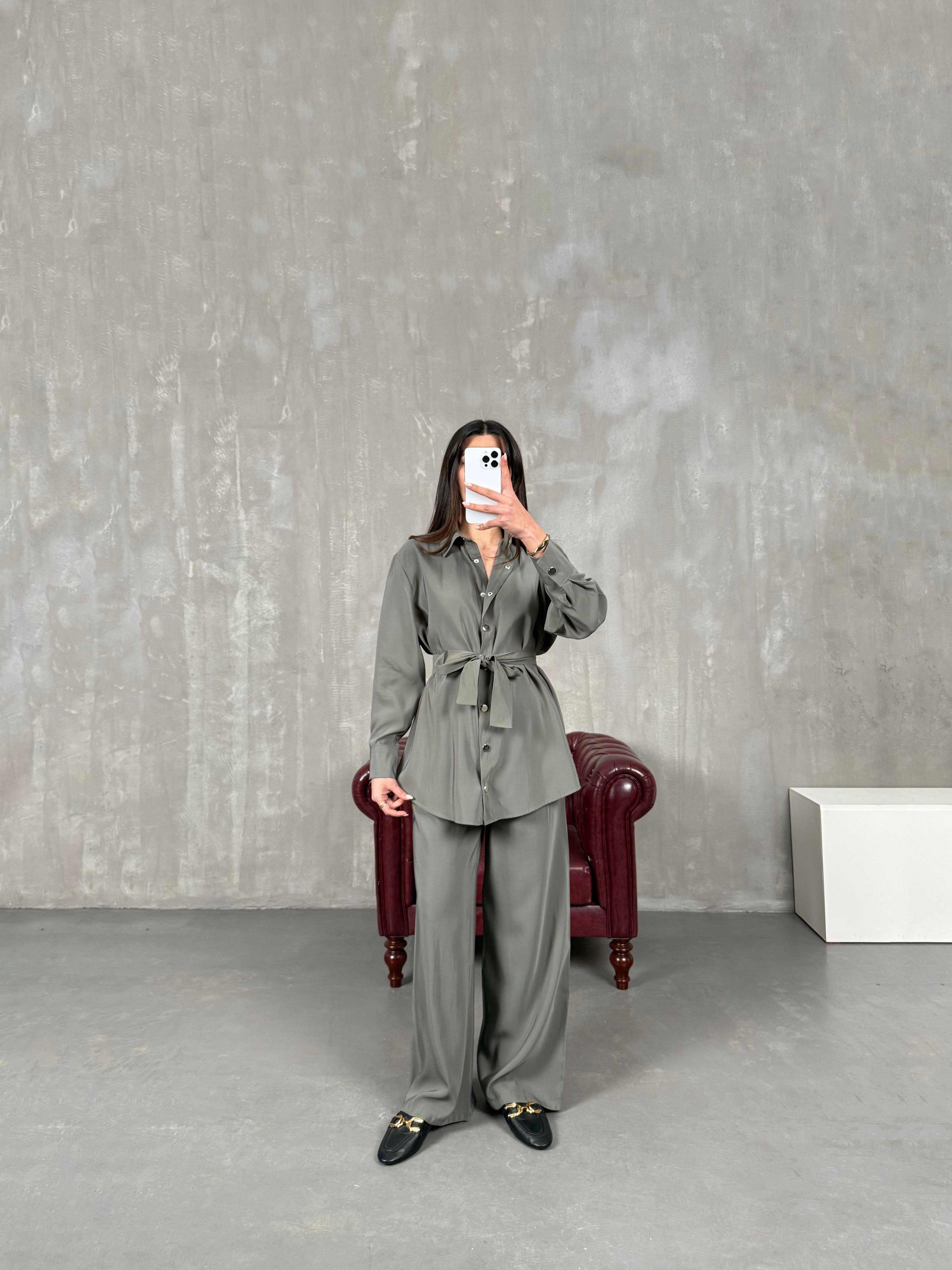 Sonya Haki Kuşaklı Çıtçıt Düğmeli Tensel Takım