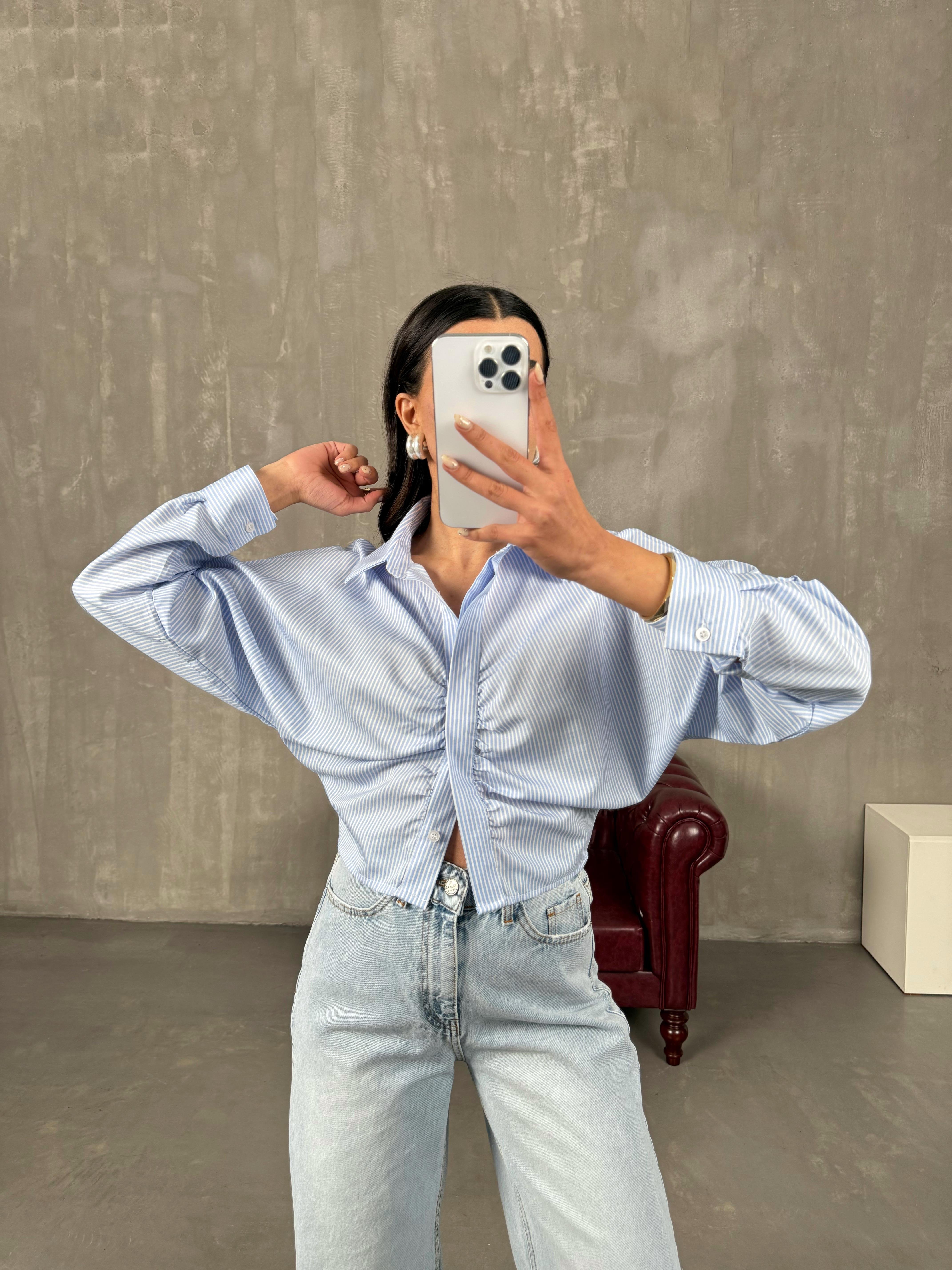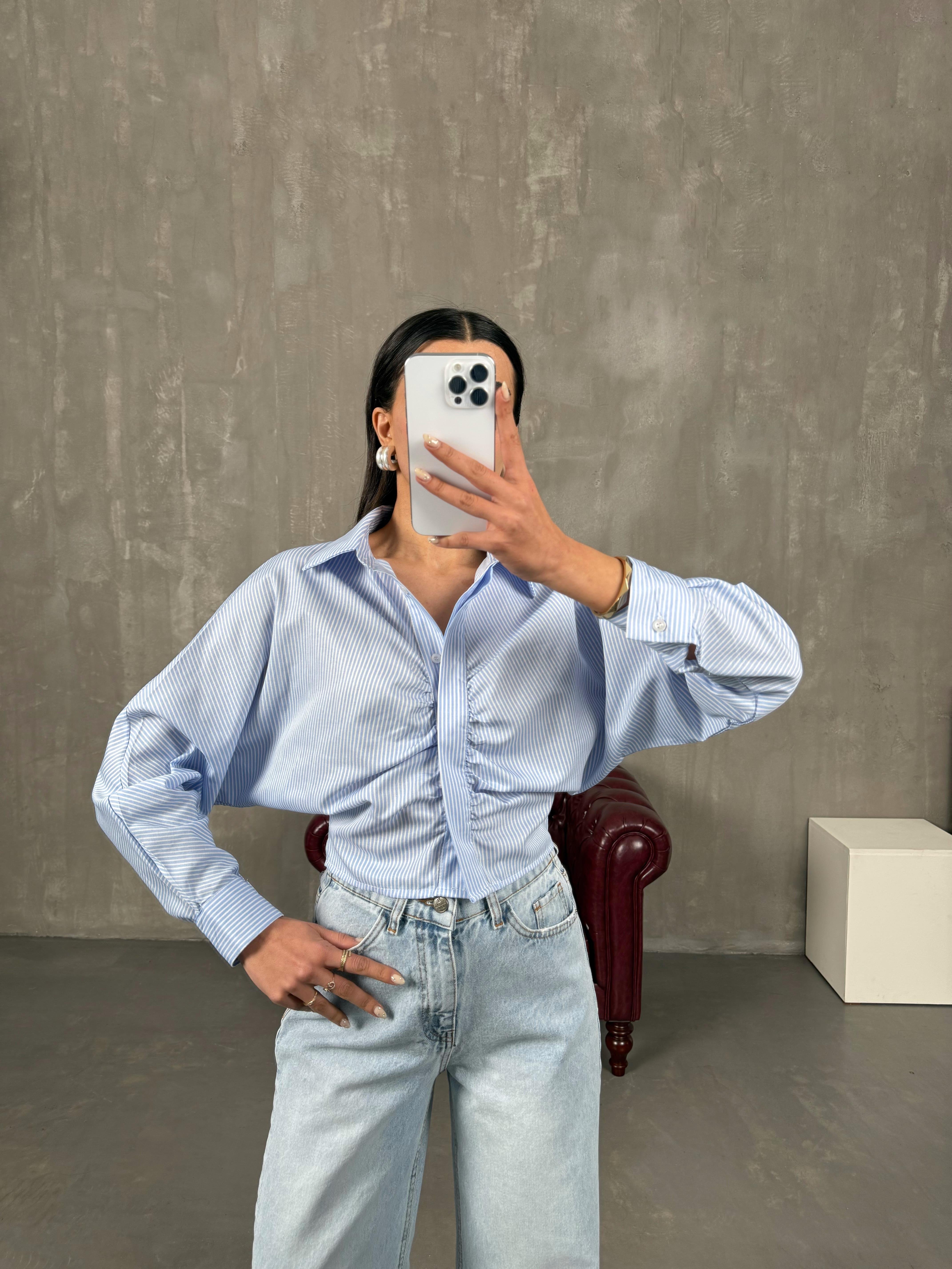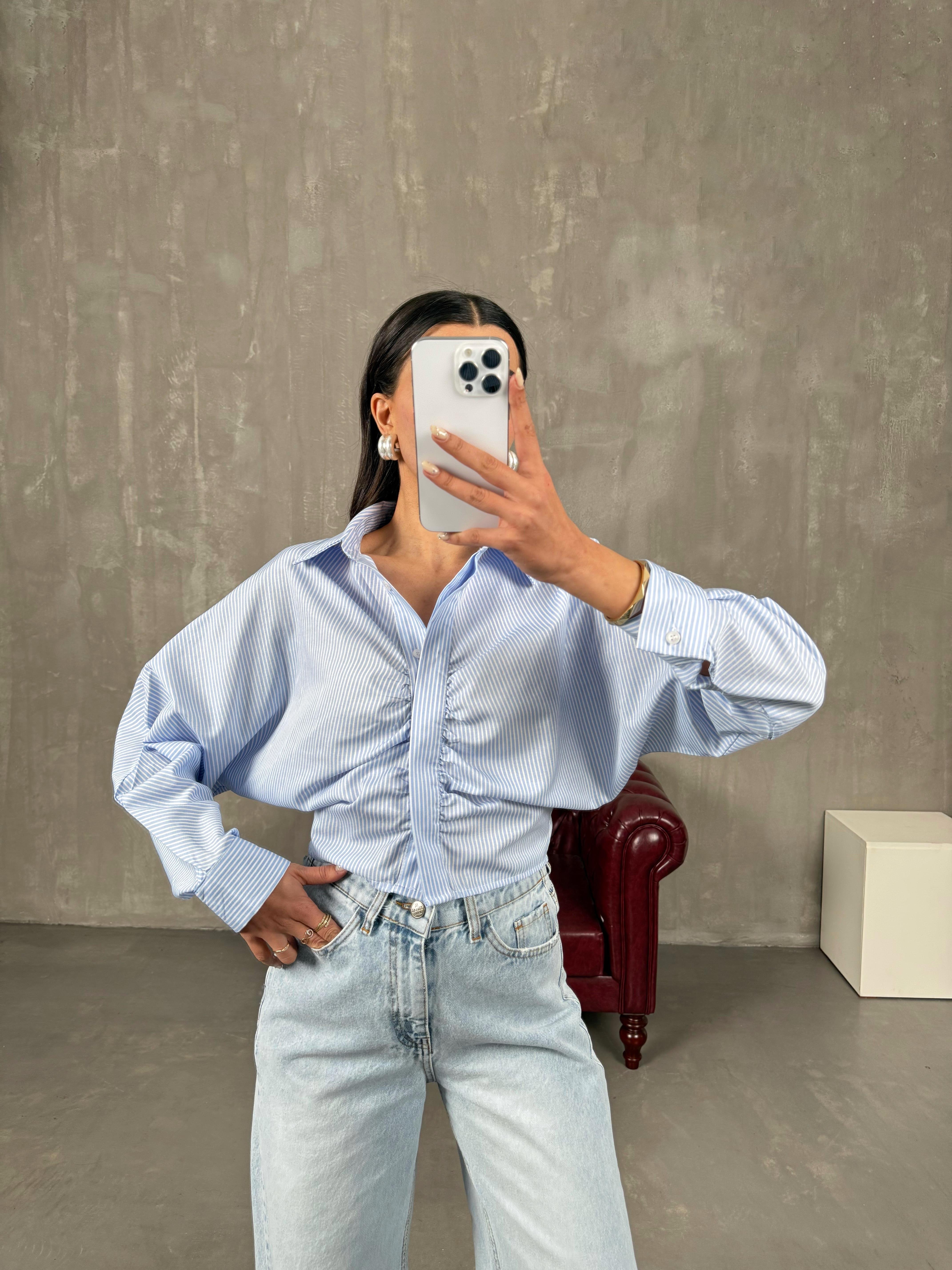سورا قميص أزرق مخطط أبيض بأزرار مخفية