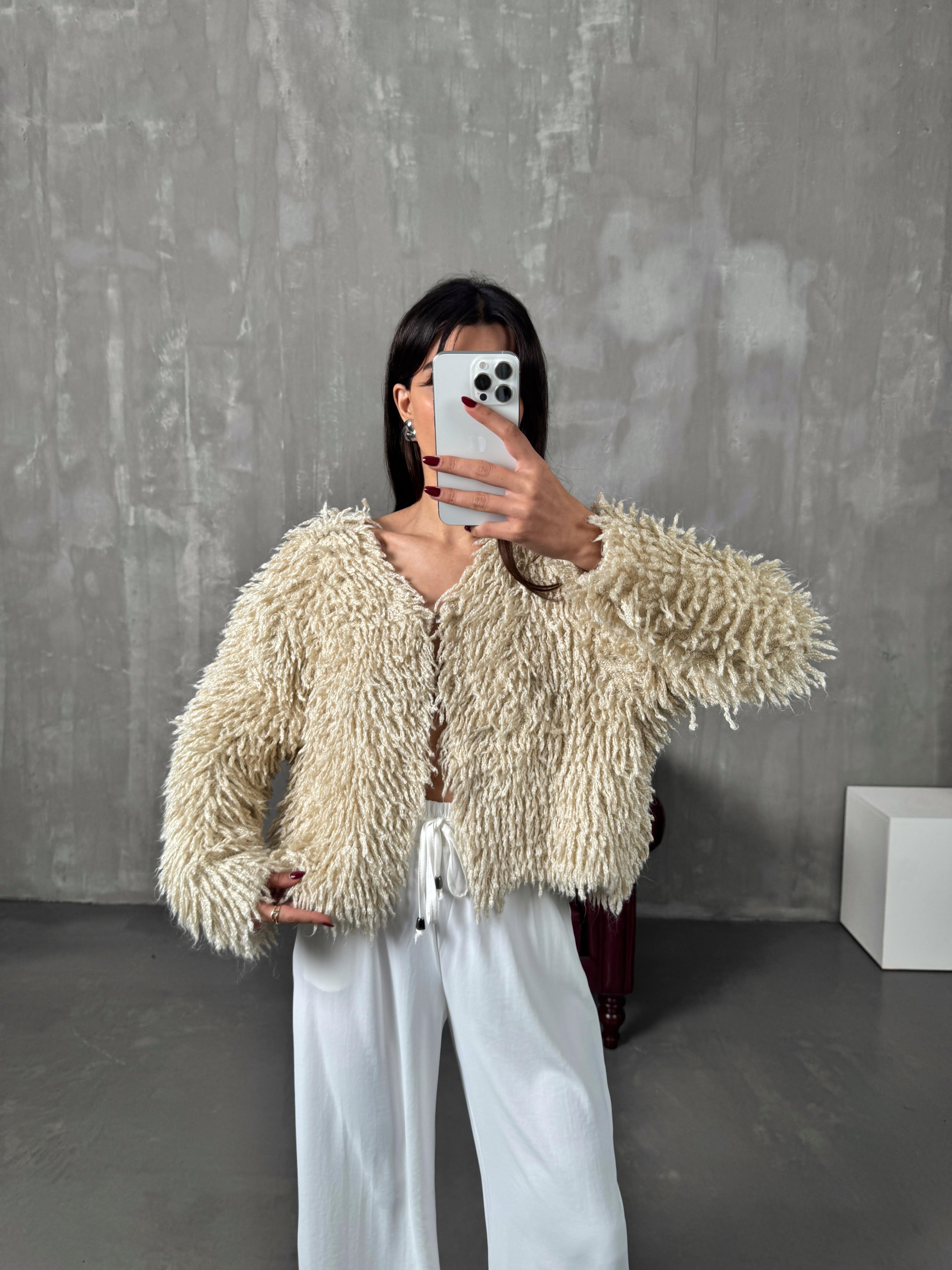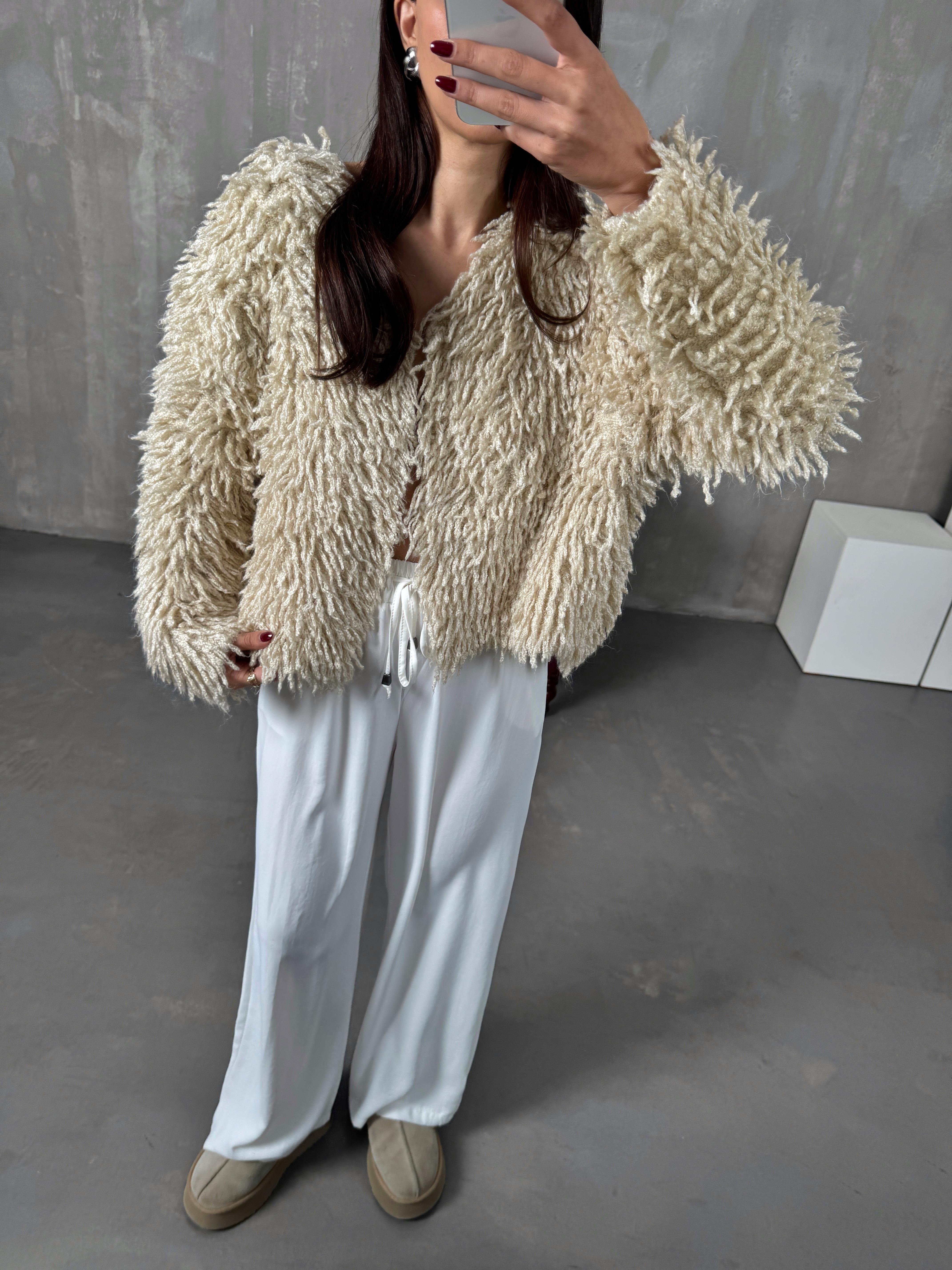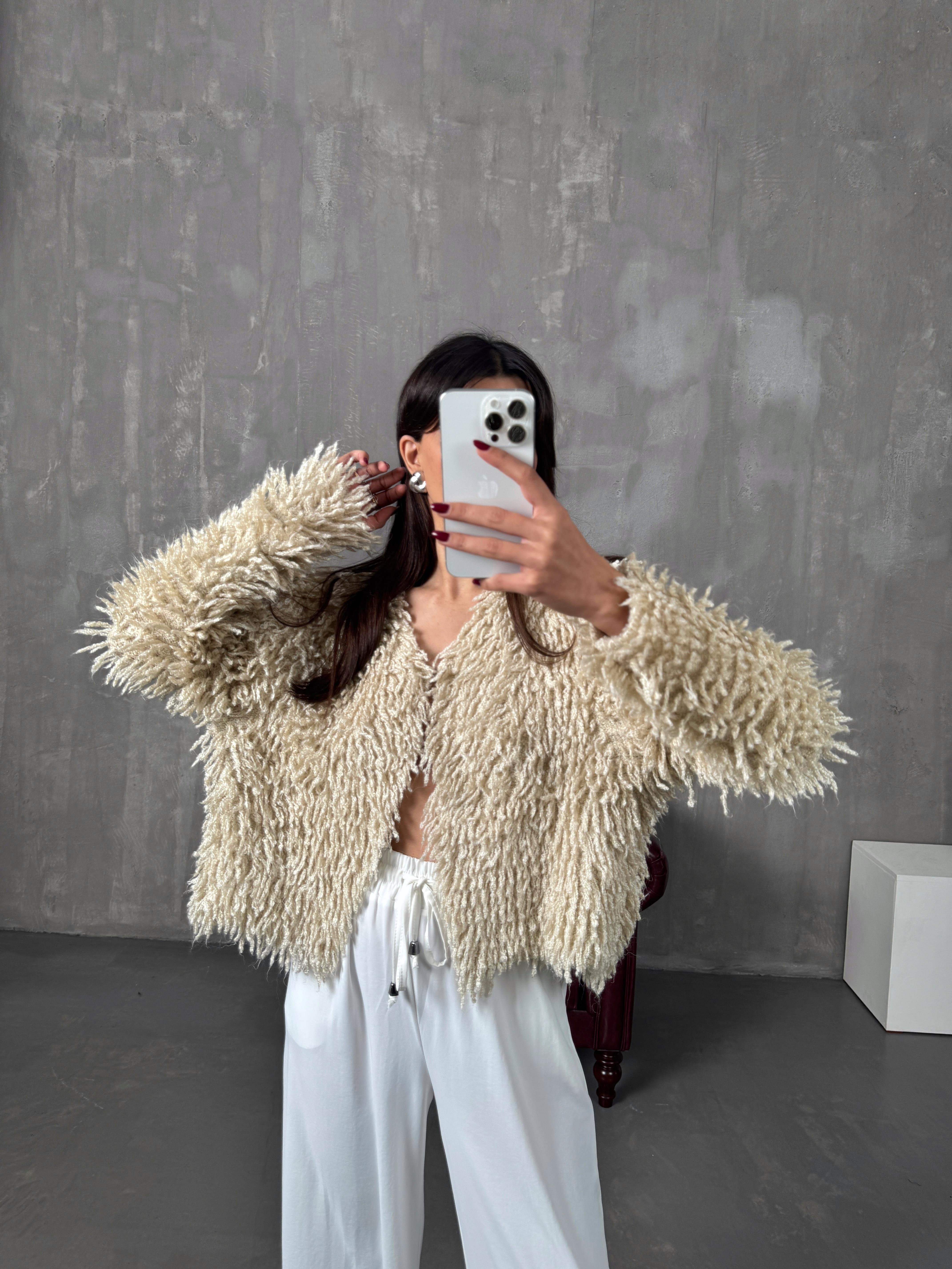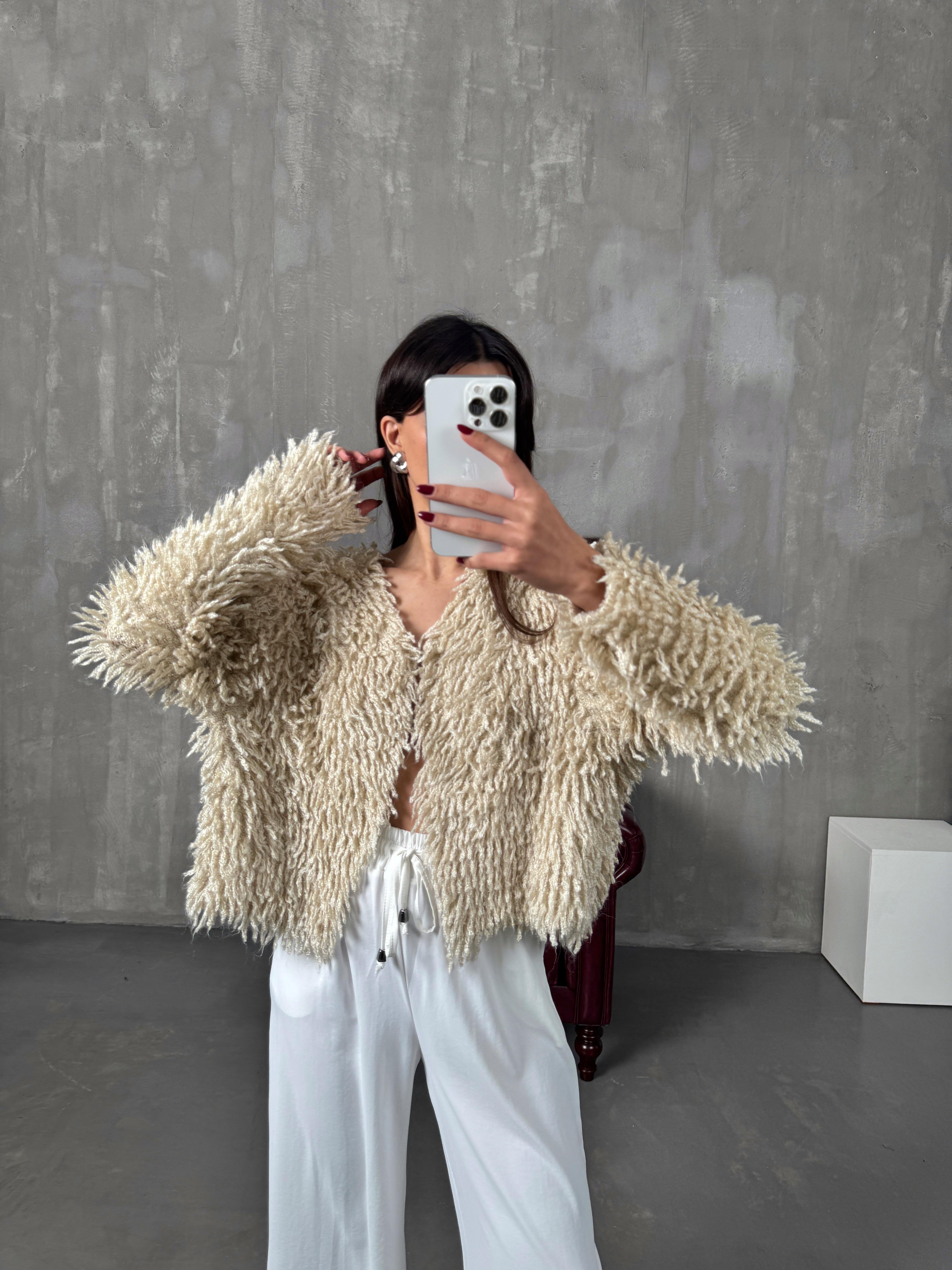Sova Taş Püsküllü Çengel Düğmeli Tasarım Hırka
