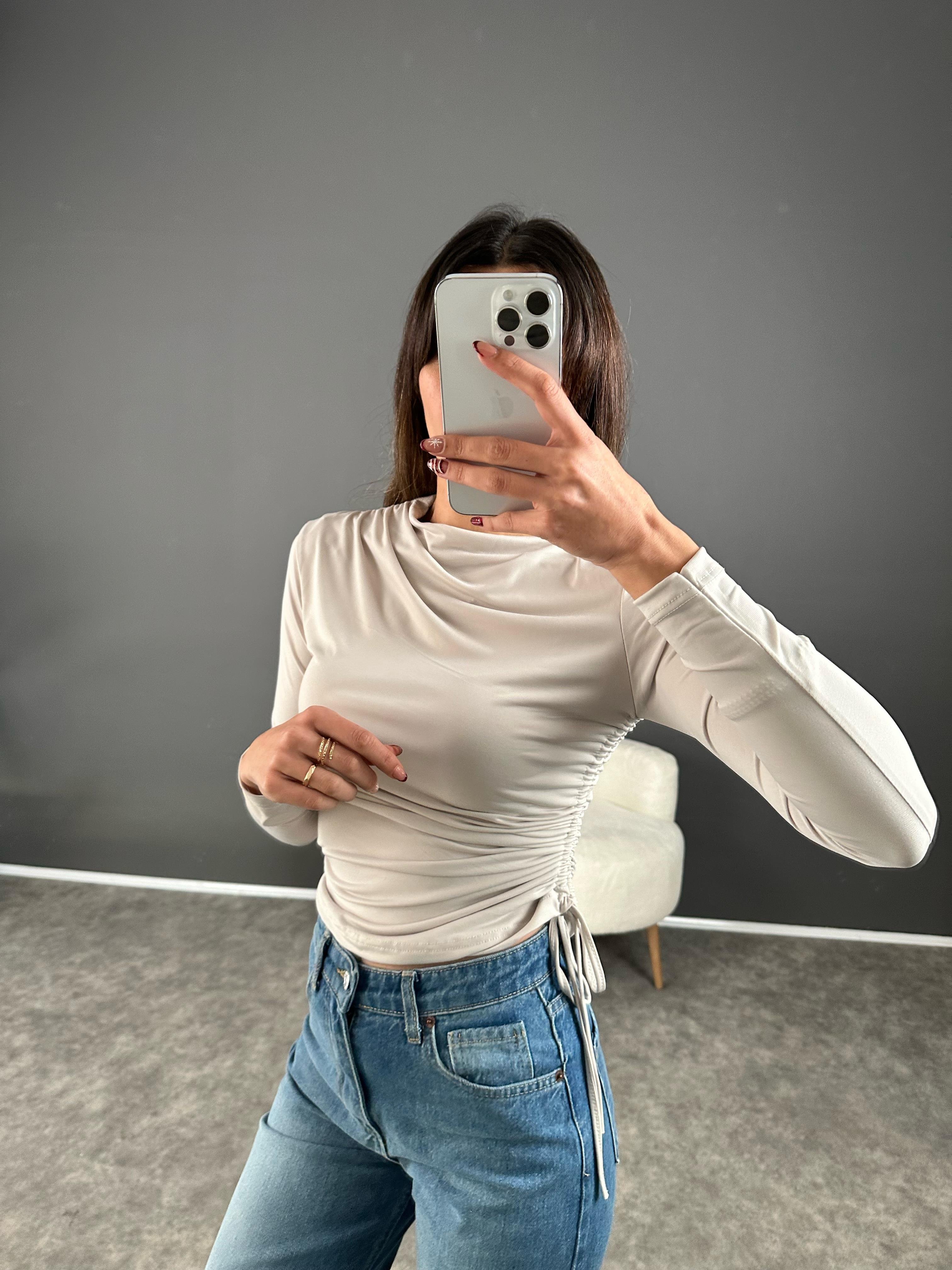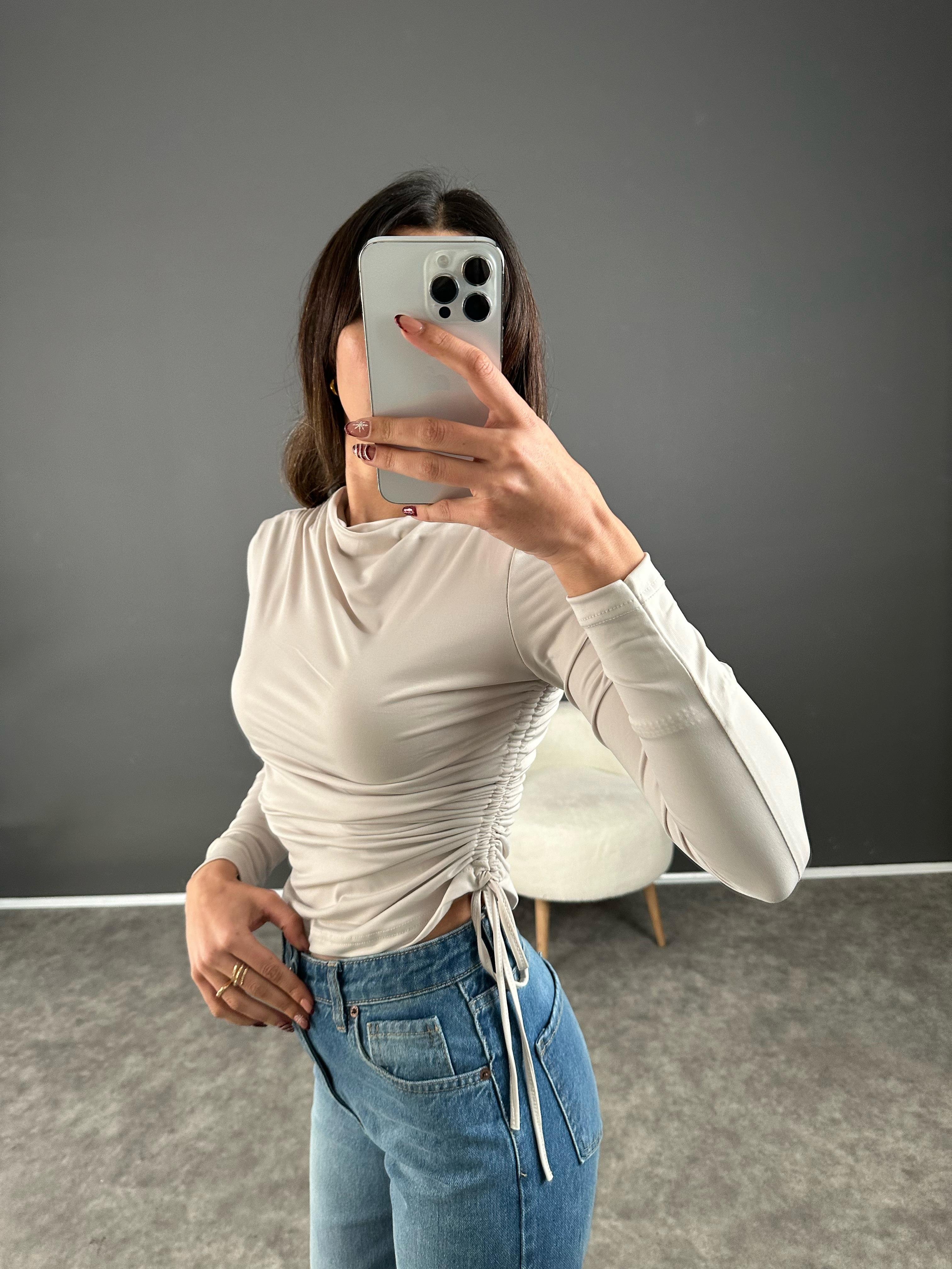 Taş Yandan Büzgülü Bluz