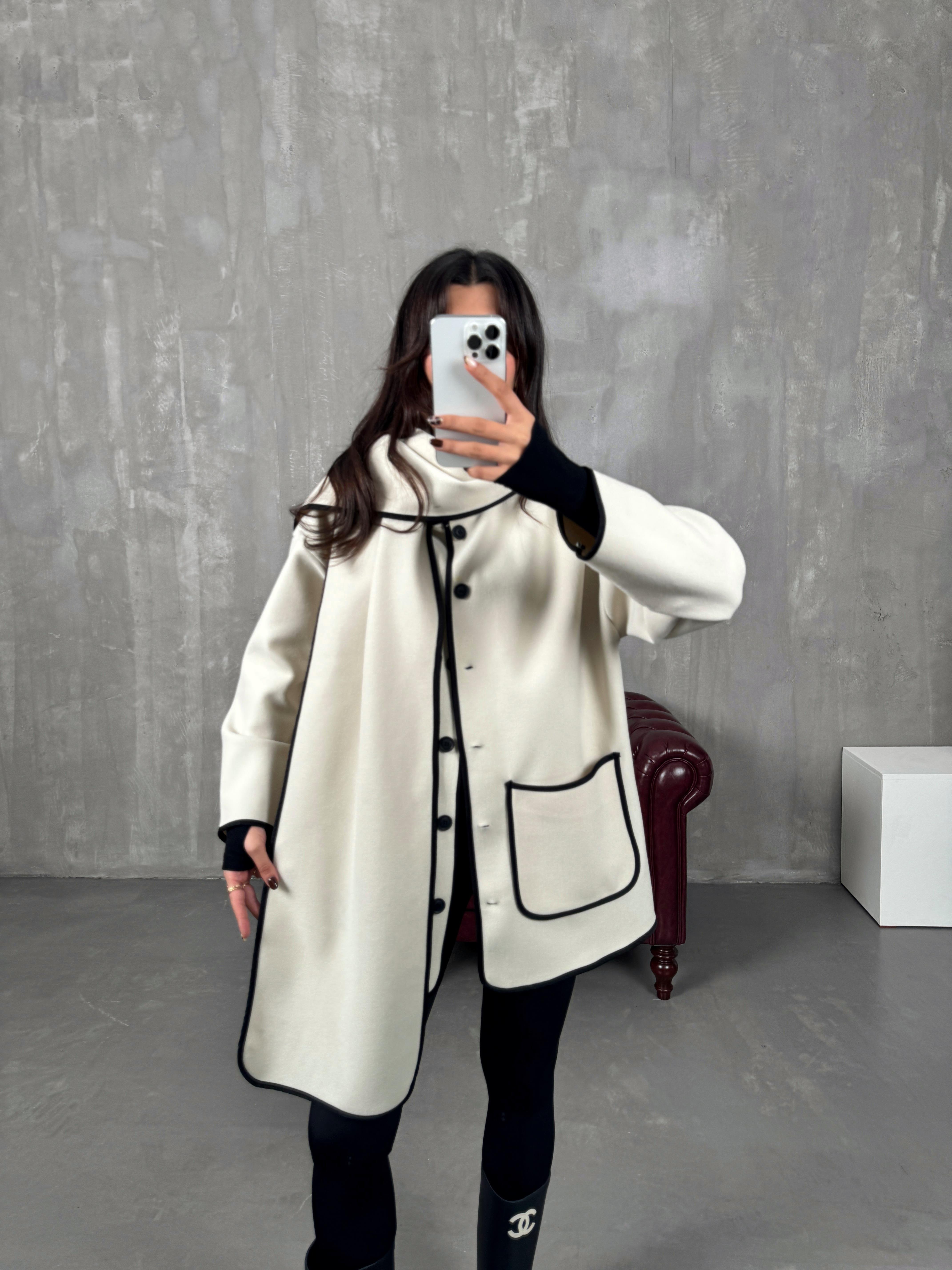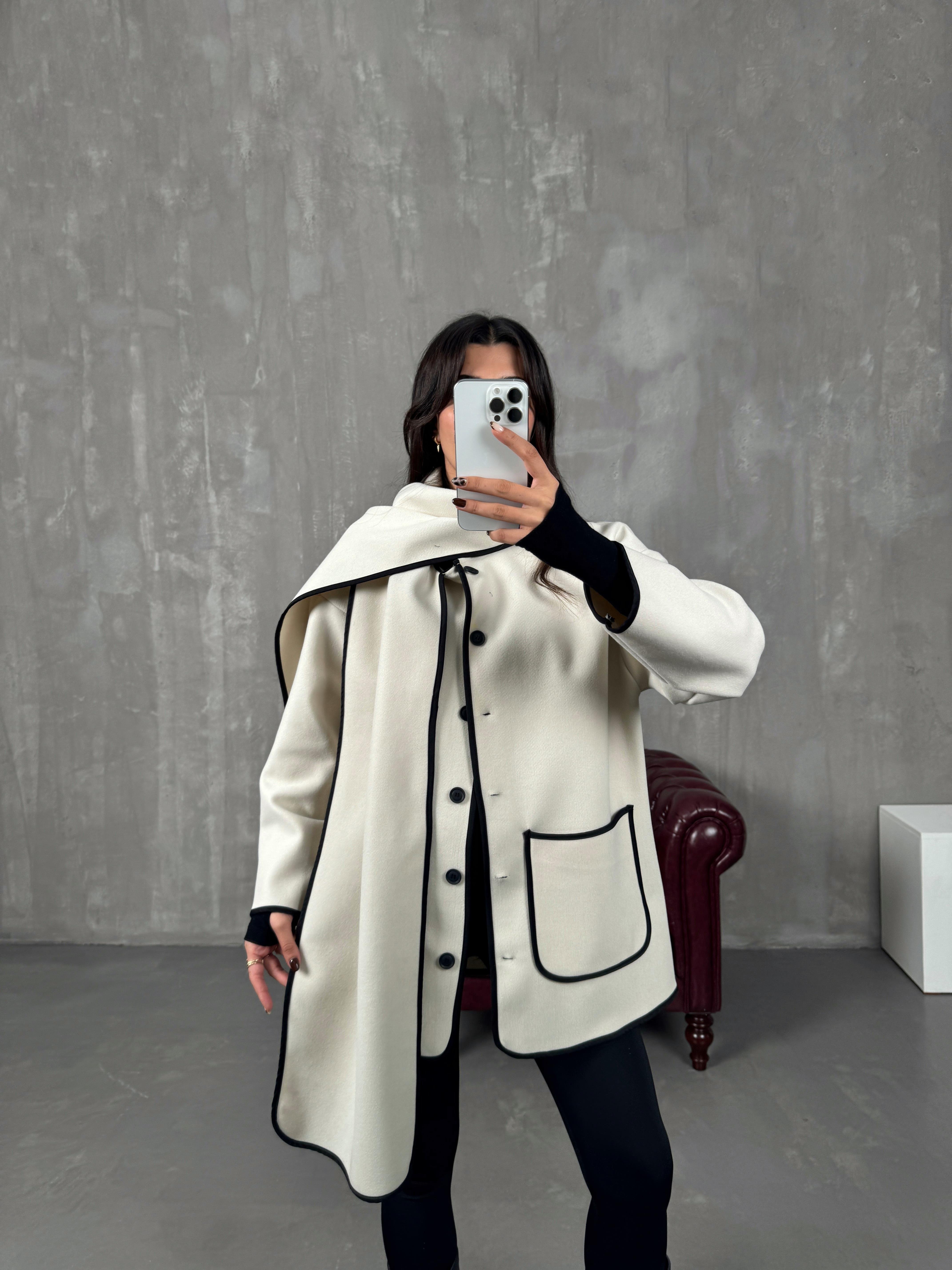 Tate Taş Siyah Şeritli Atkı Detaylı Tasarım Kaşe Ceket