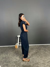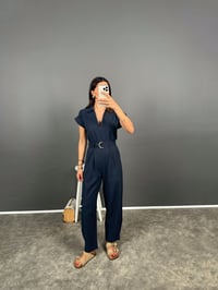 Tatissi Lacivert Kemer Bağlamalı V Yaka Keten Tulum