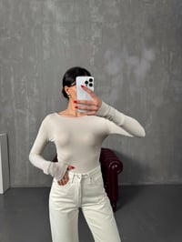 Toffe Taş Oys Kumaş Geniş Yaka Bluz