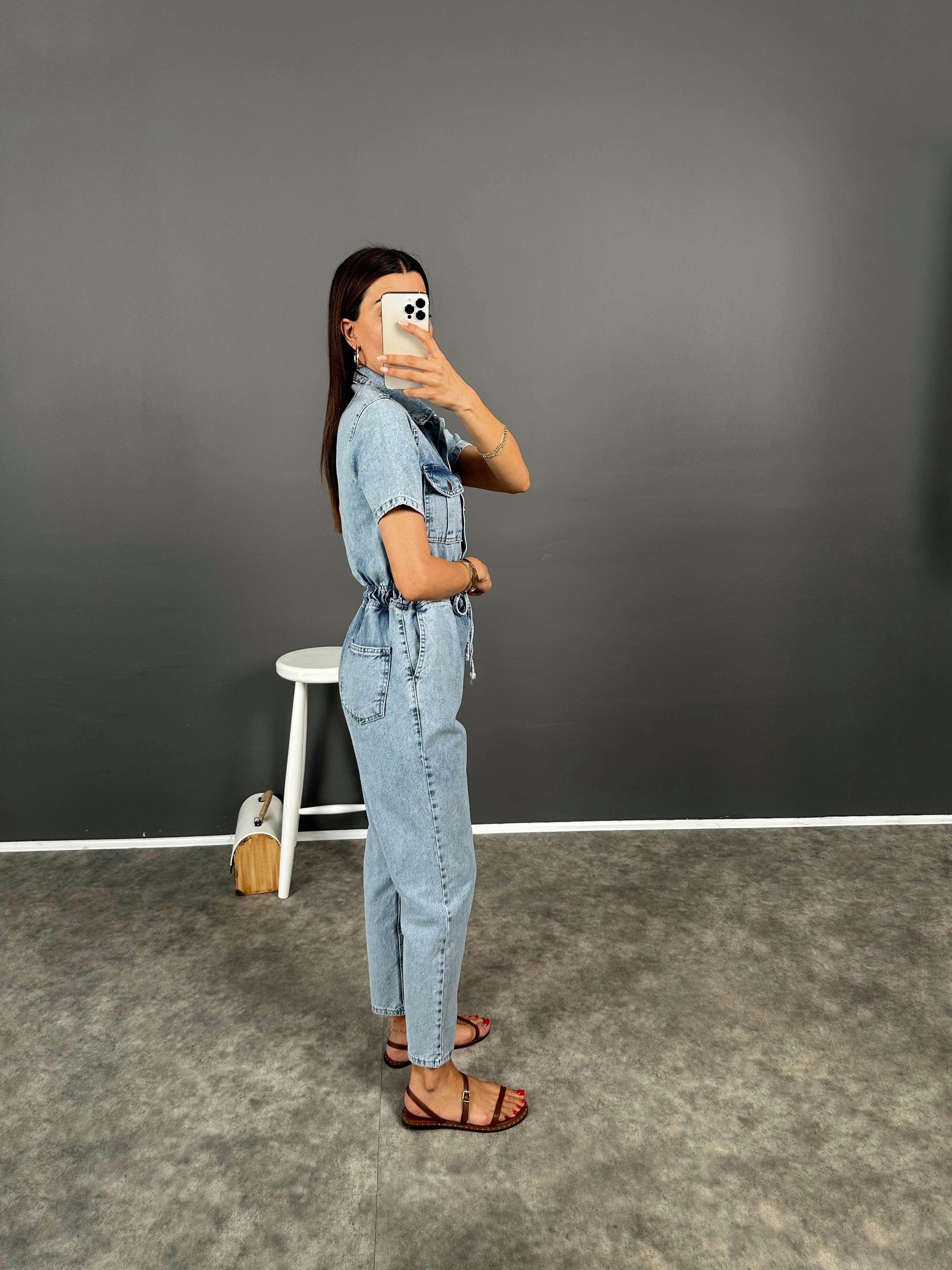 Valens Premium Denim Düğmeli Beli Lastikli Tulum