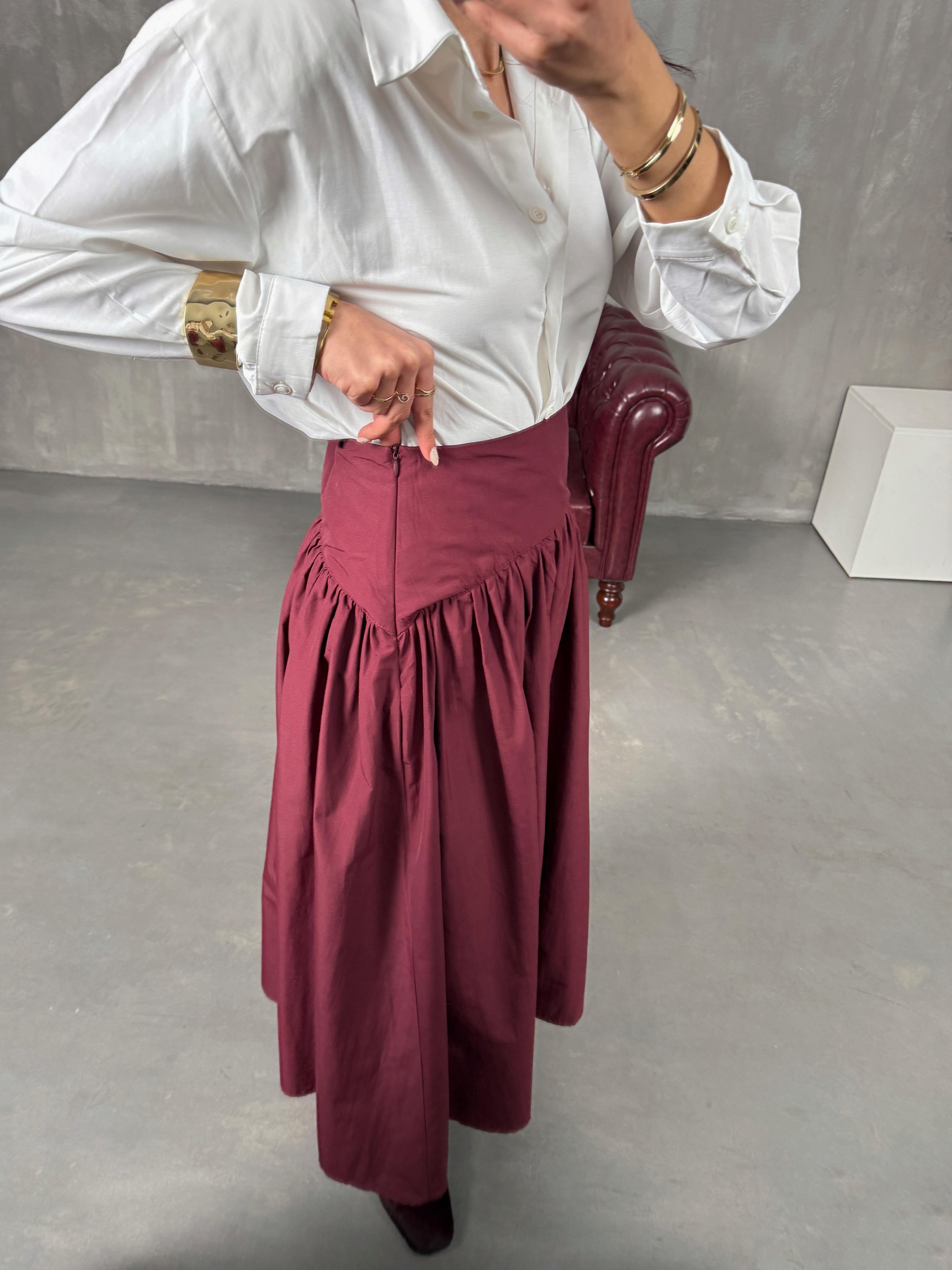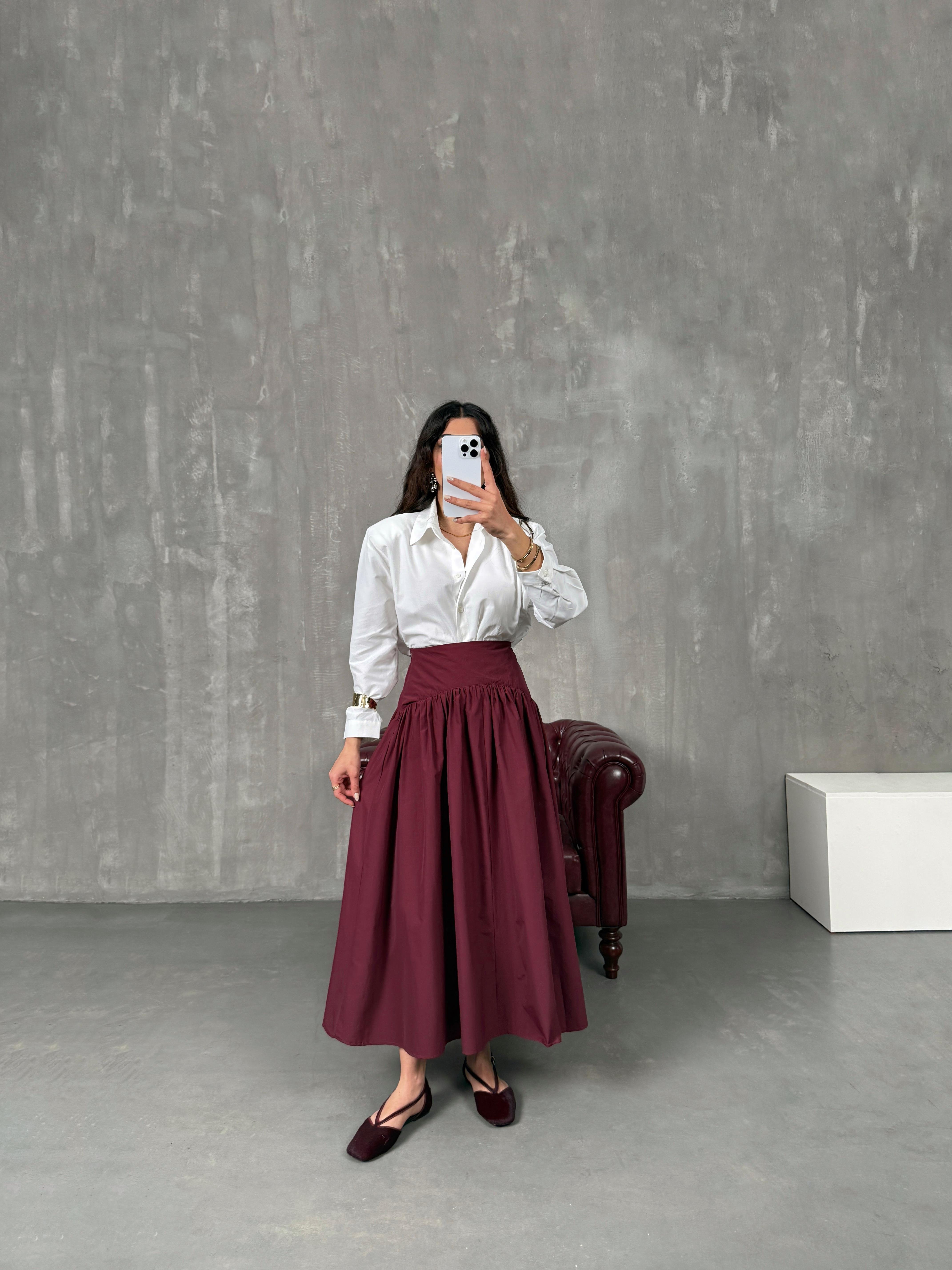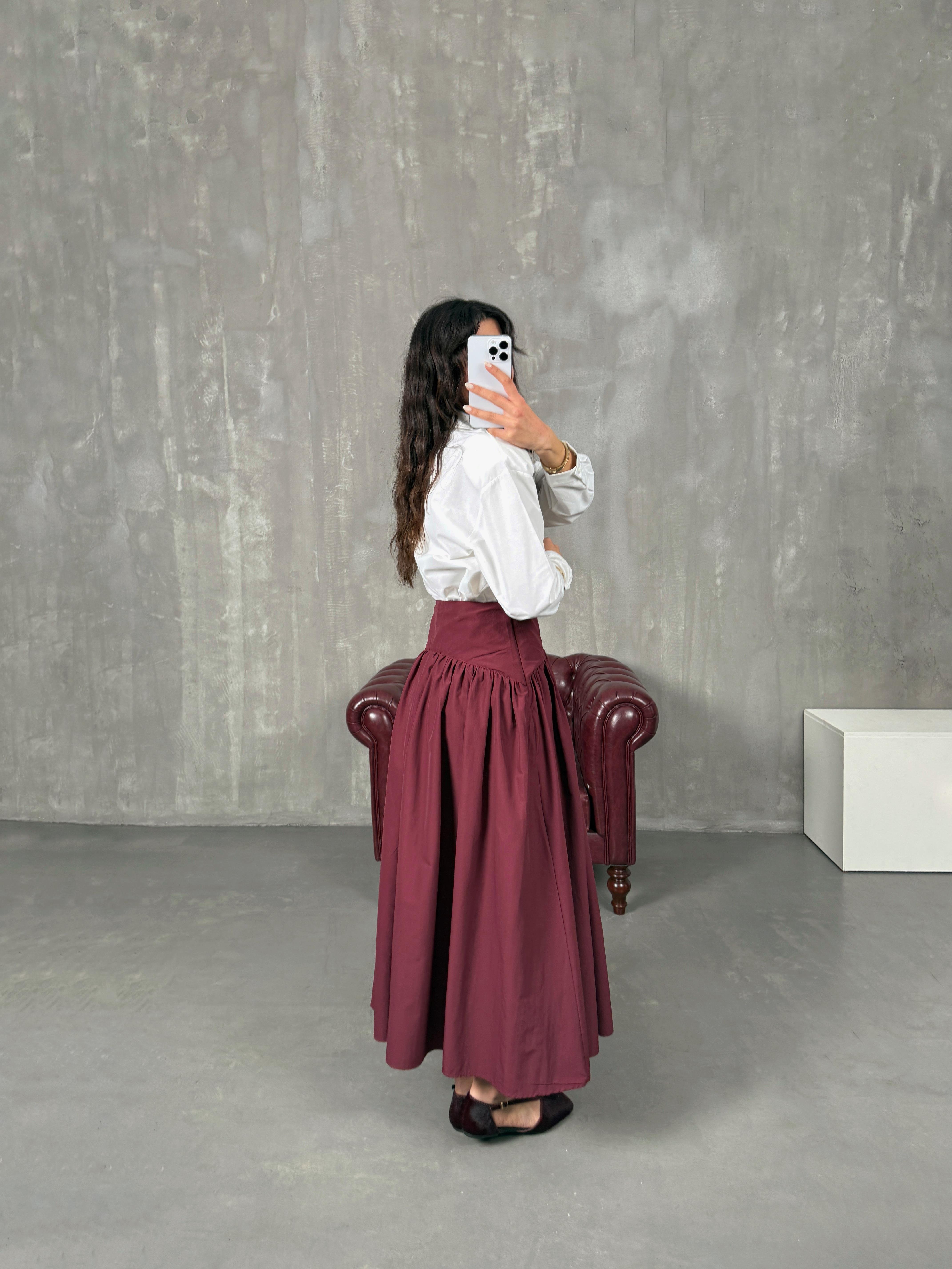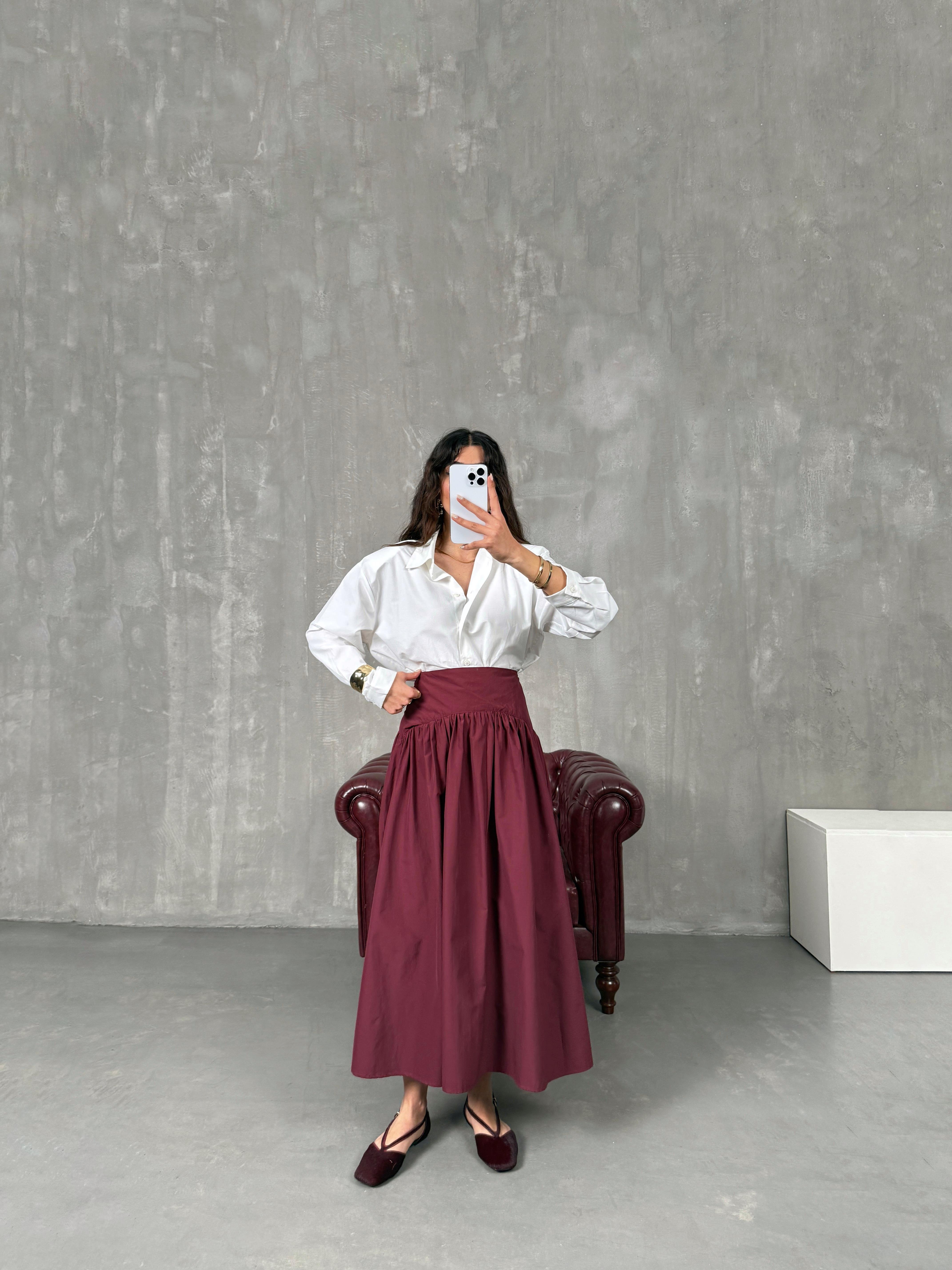 فاسكو تنورة لون بوردر قماش بوبلين بتفاصيل خصر مُعادل لماسّي