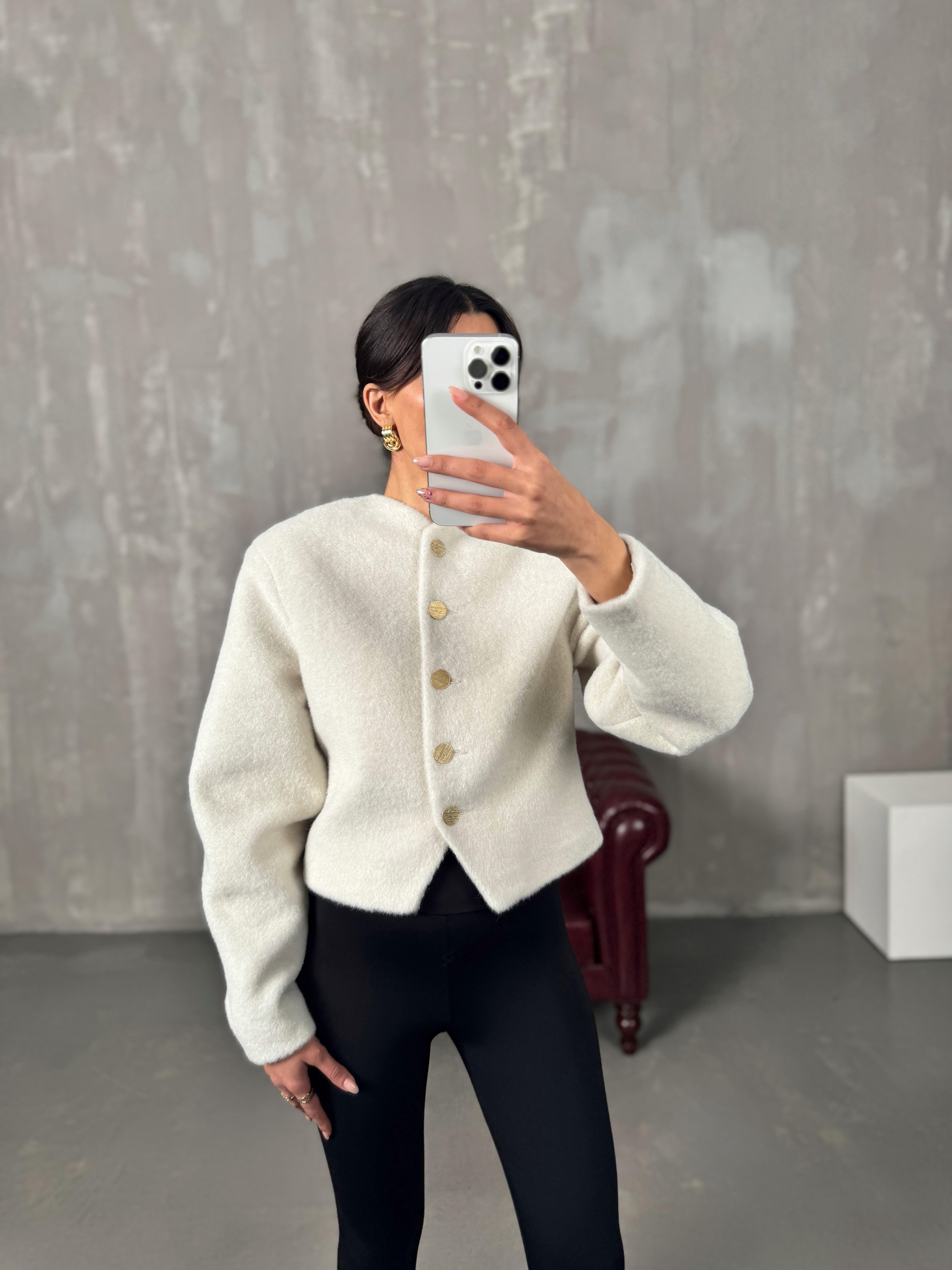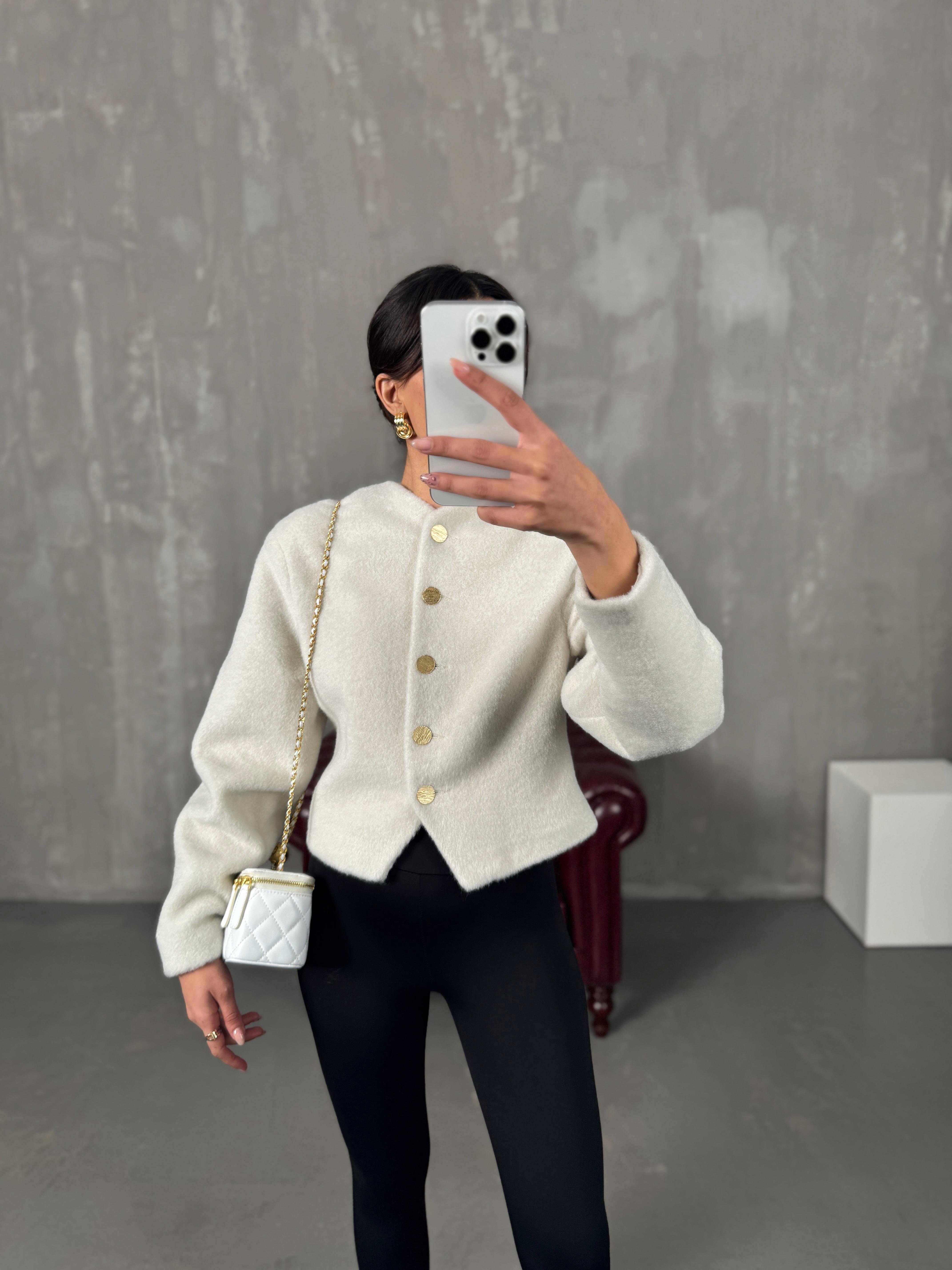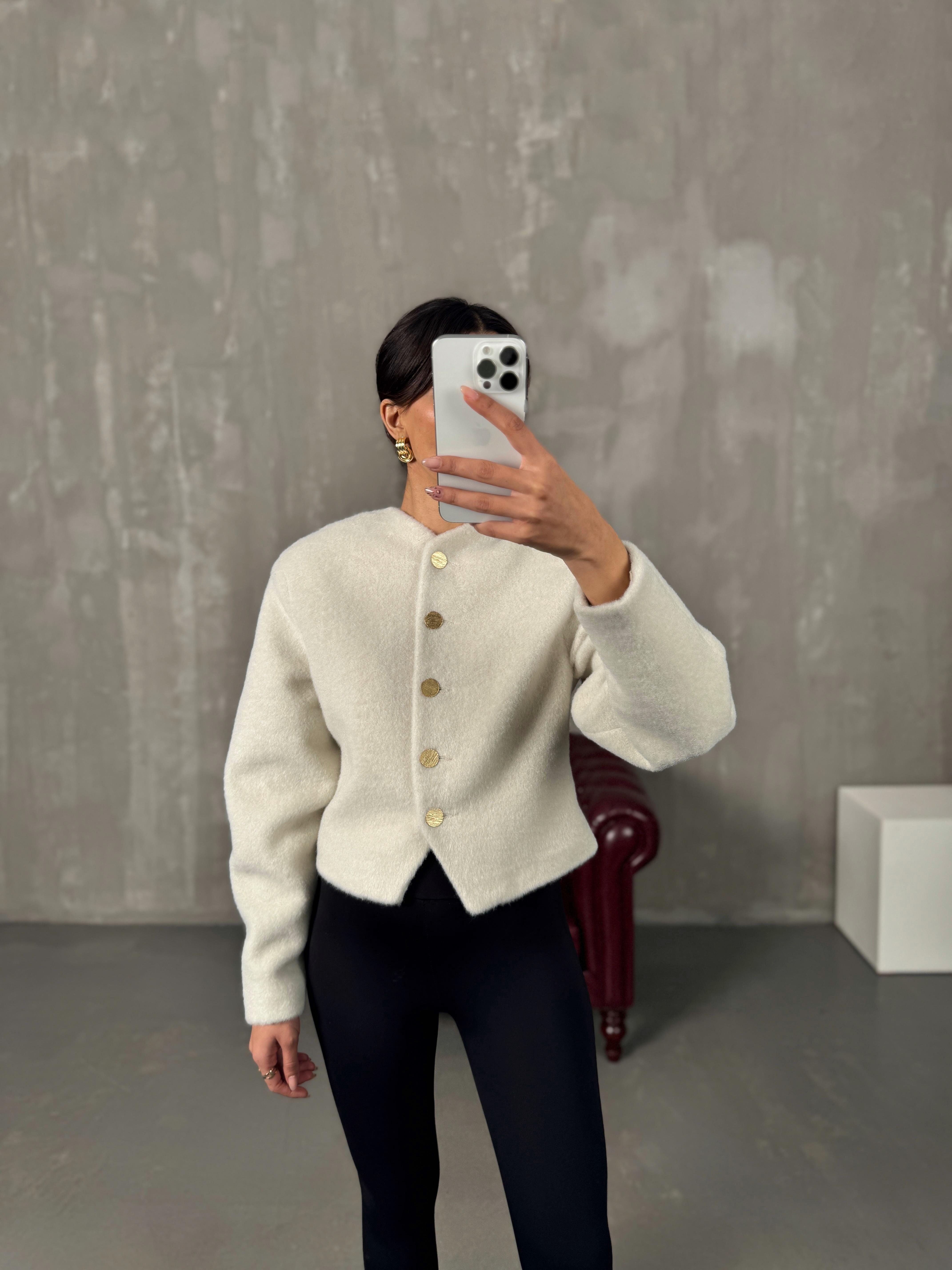 فينيسيا جاكيت قماش كاشمير بأزرار لون إكرو