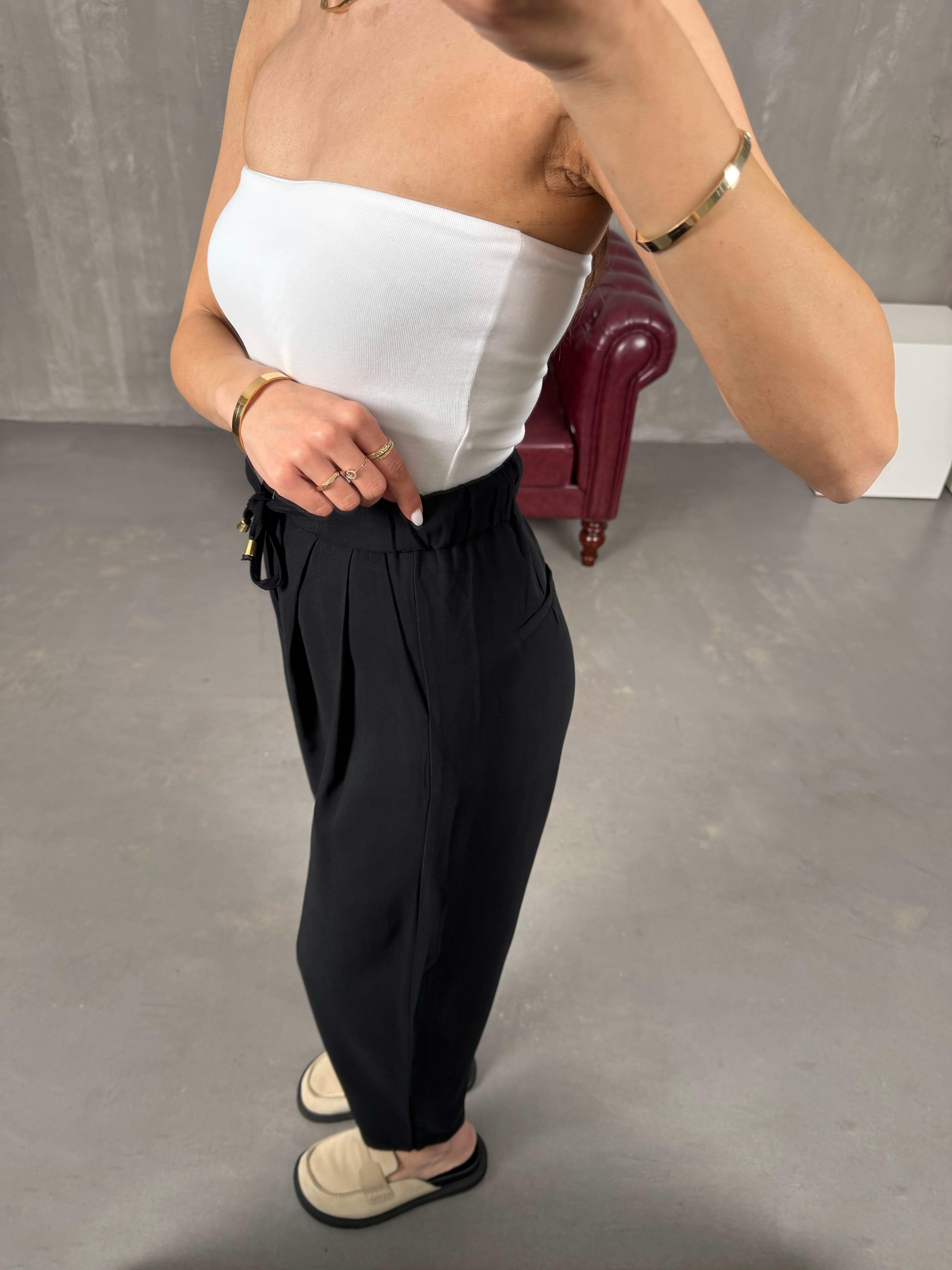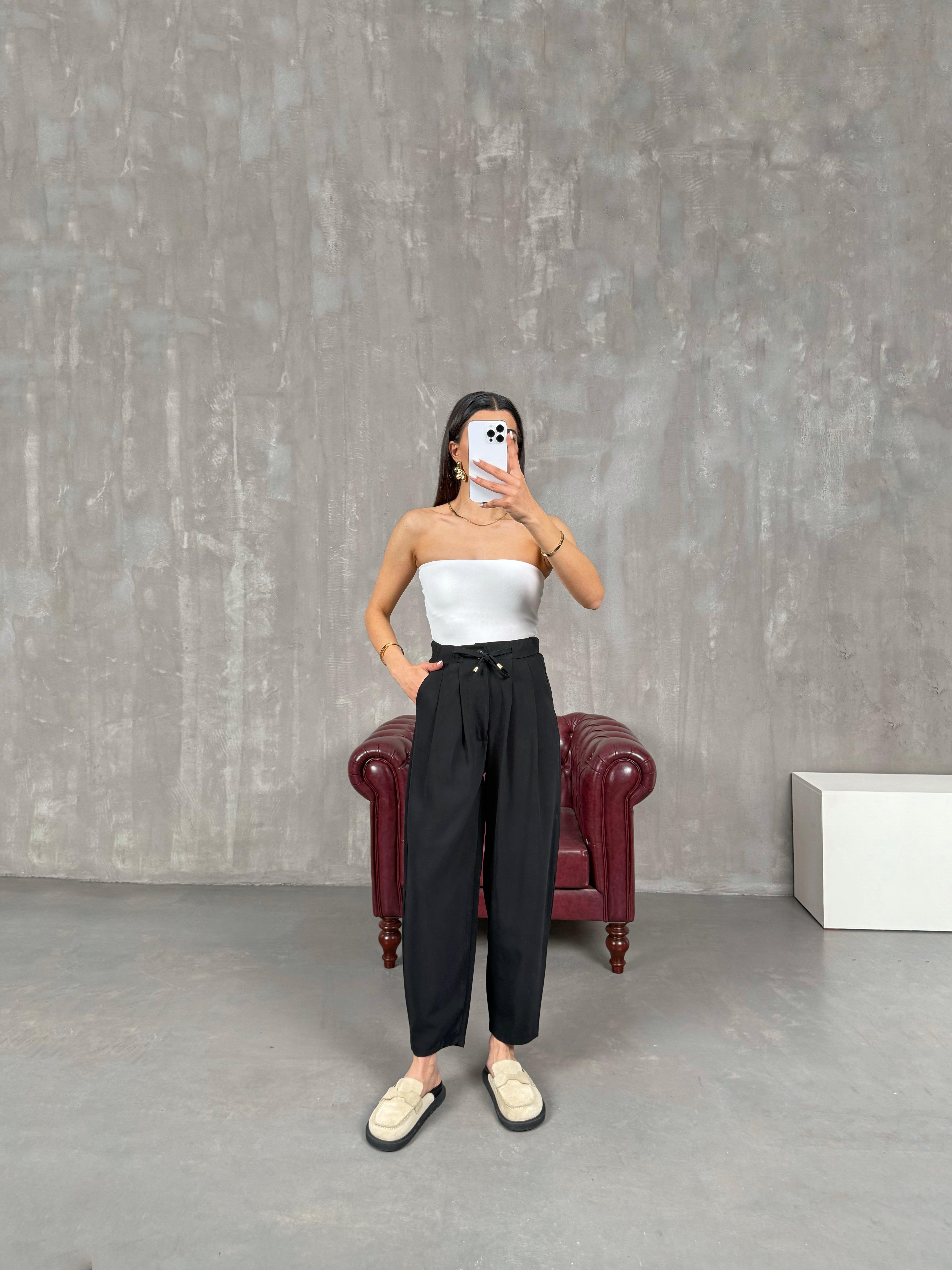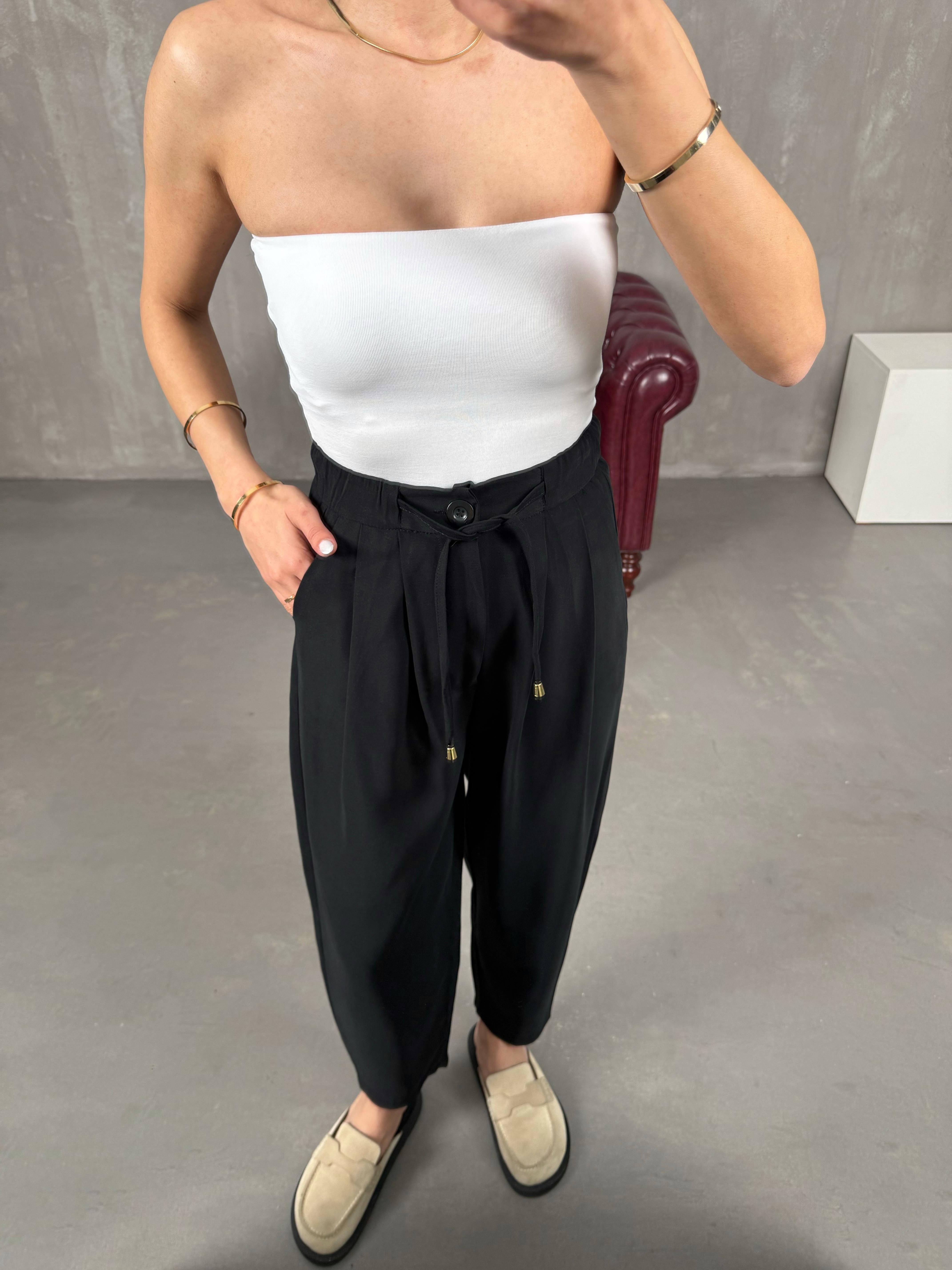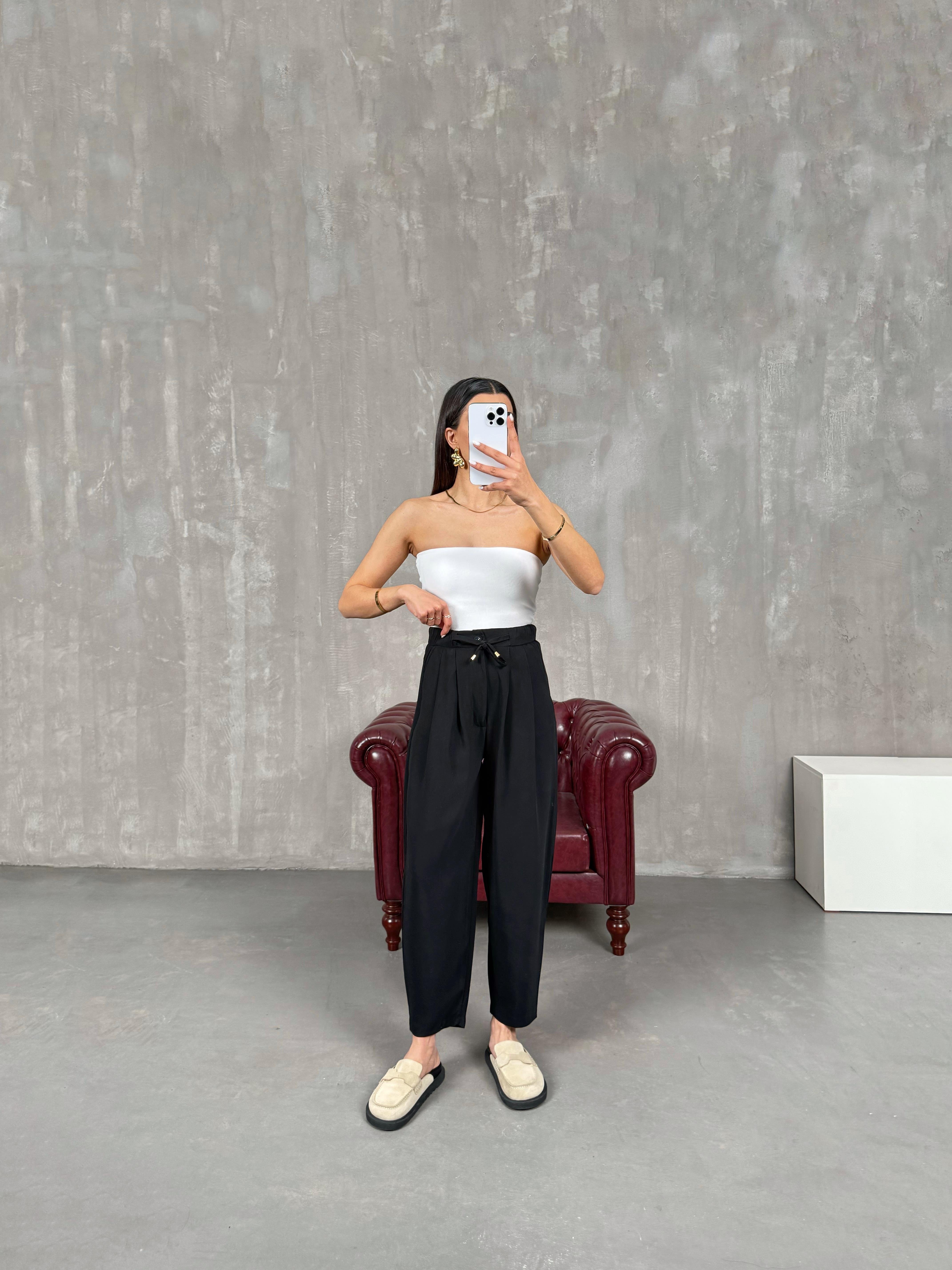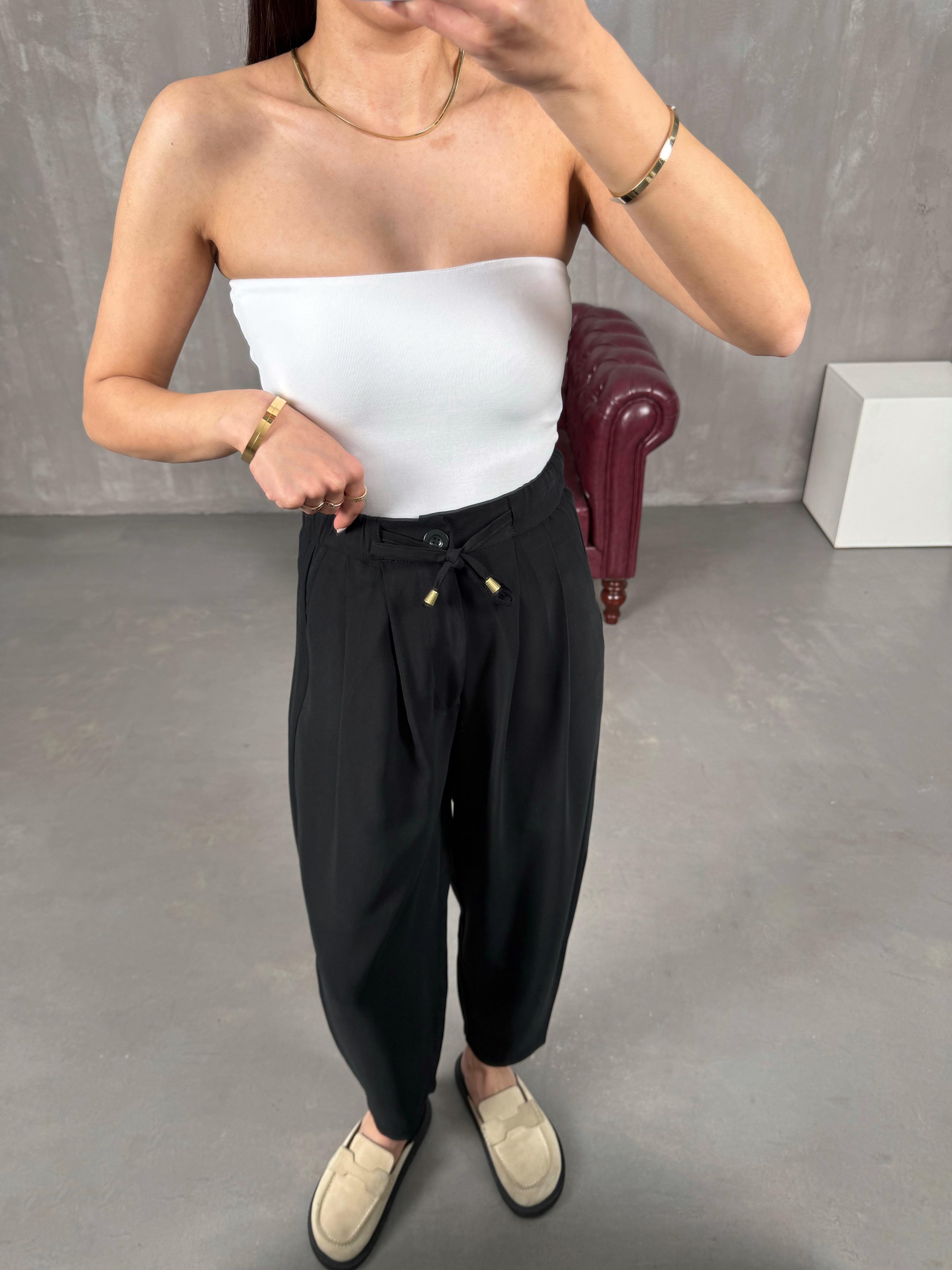 فيترا بنطلون شالوار موديل جزرة أسود بتفاصيل رباط أمامي
