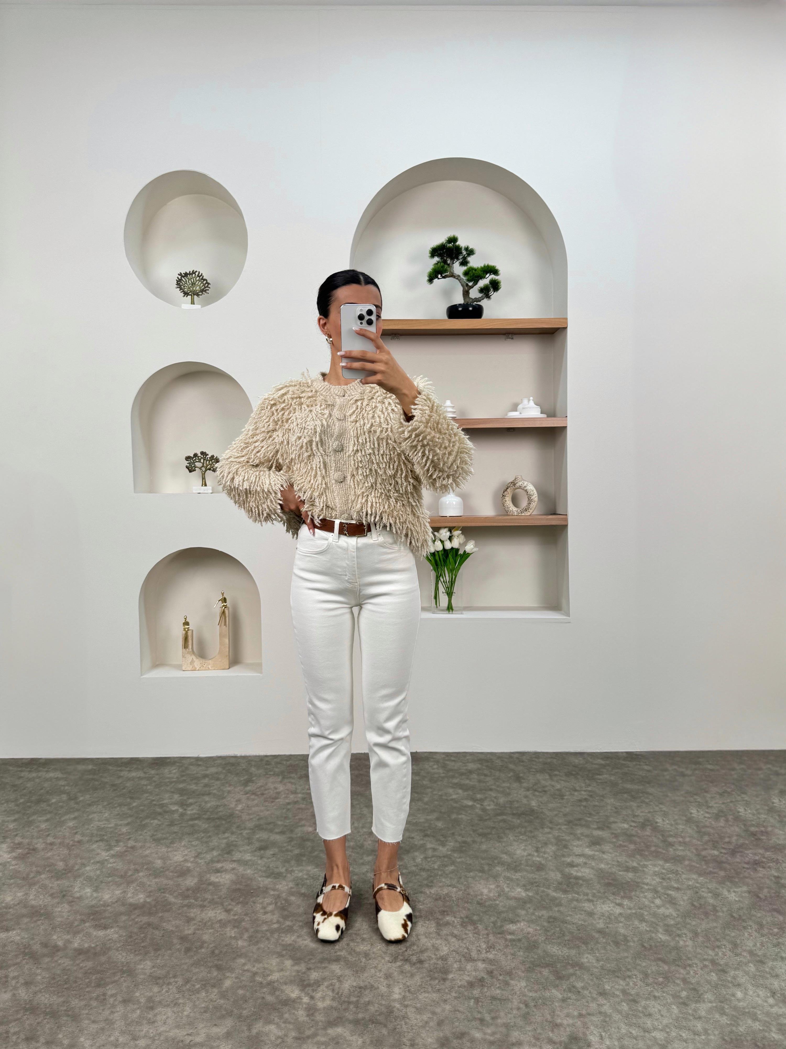Vini ZR Model Beyaz Kesik Paça Jean Pantolon