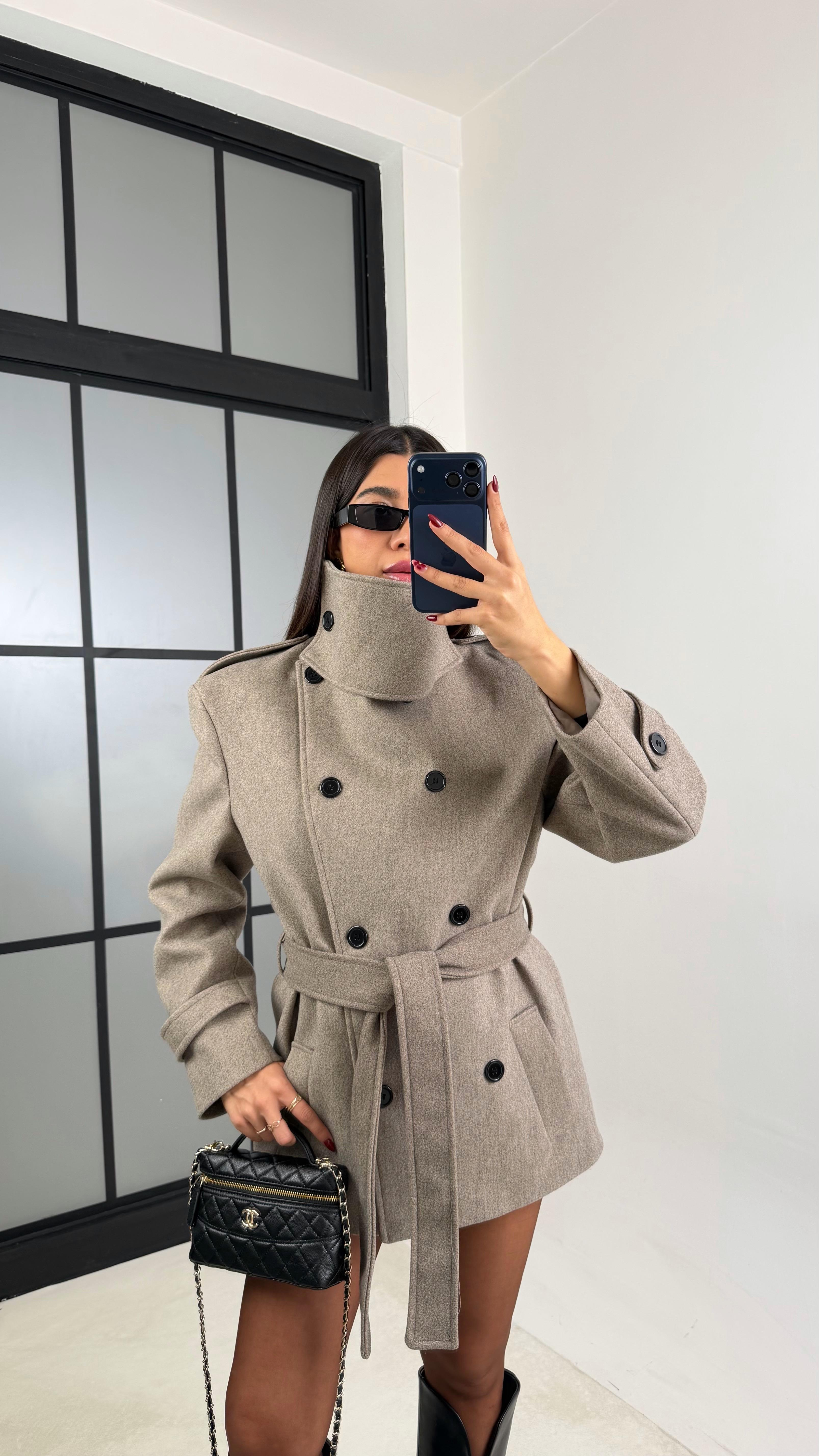 Vizon Dik Yakalı Vatkalı Kuşaklı Kaşe Kaban GAUS-00704GAUS المعاطف GAUS-00704