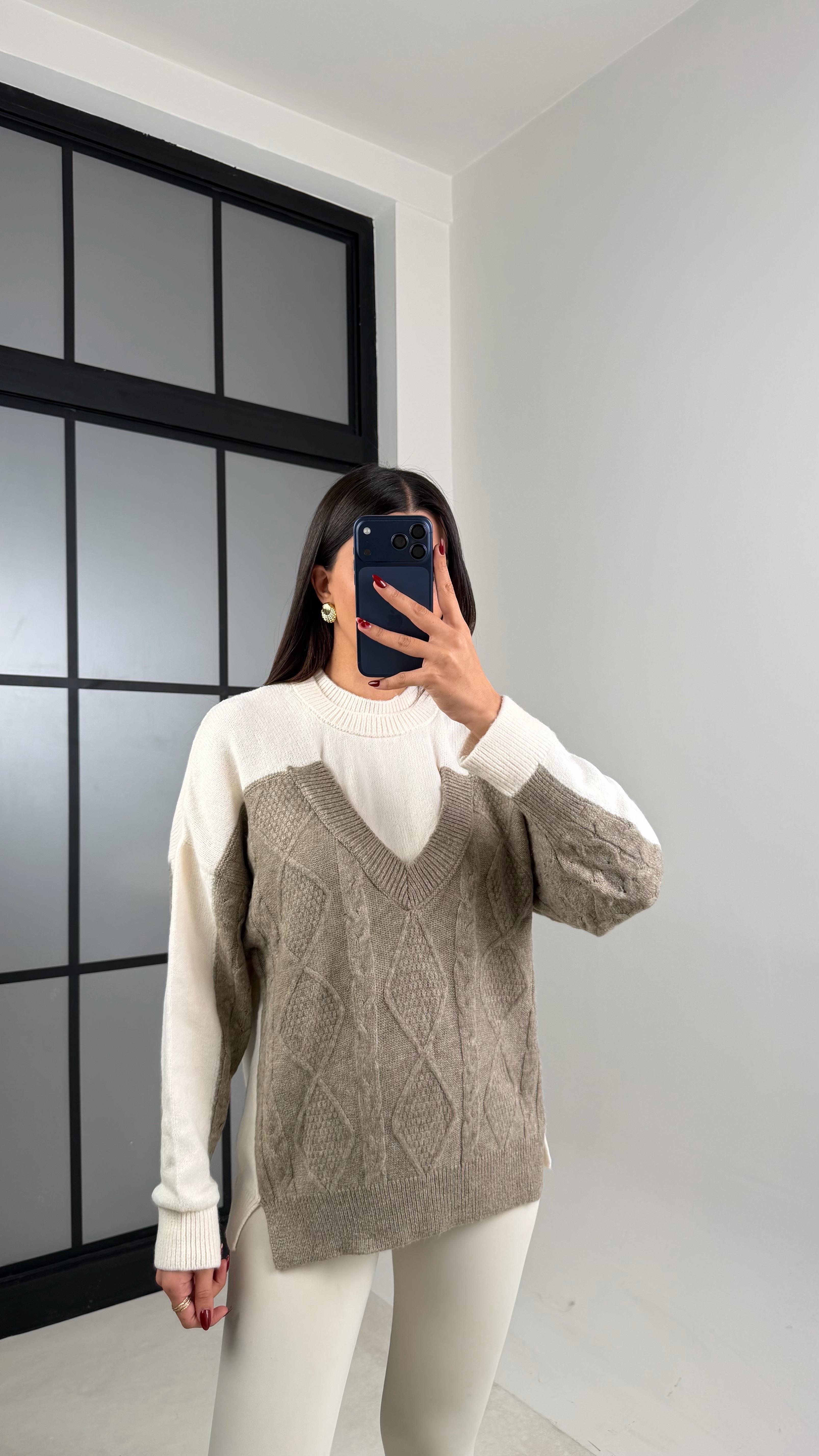 Vizon İki Yakalı Tasarım Triko Kazak GAUS-00578GAUS الكنزات GAUS-00578