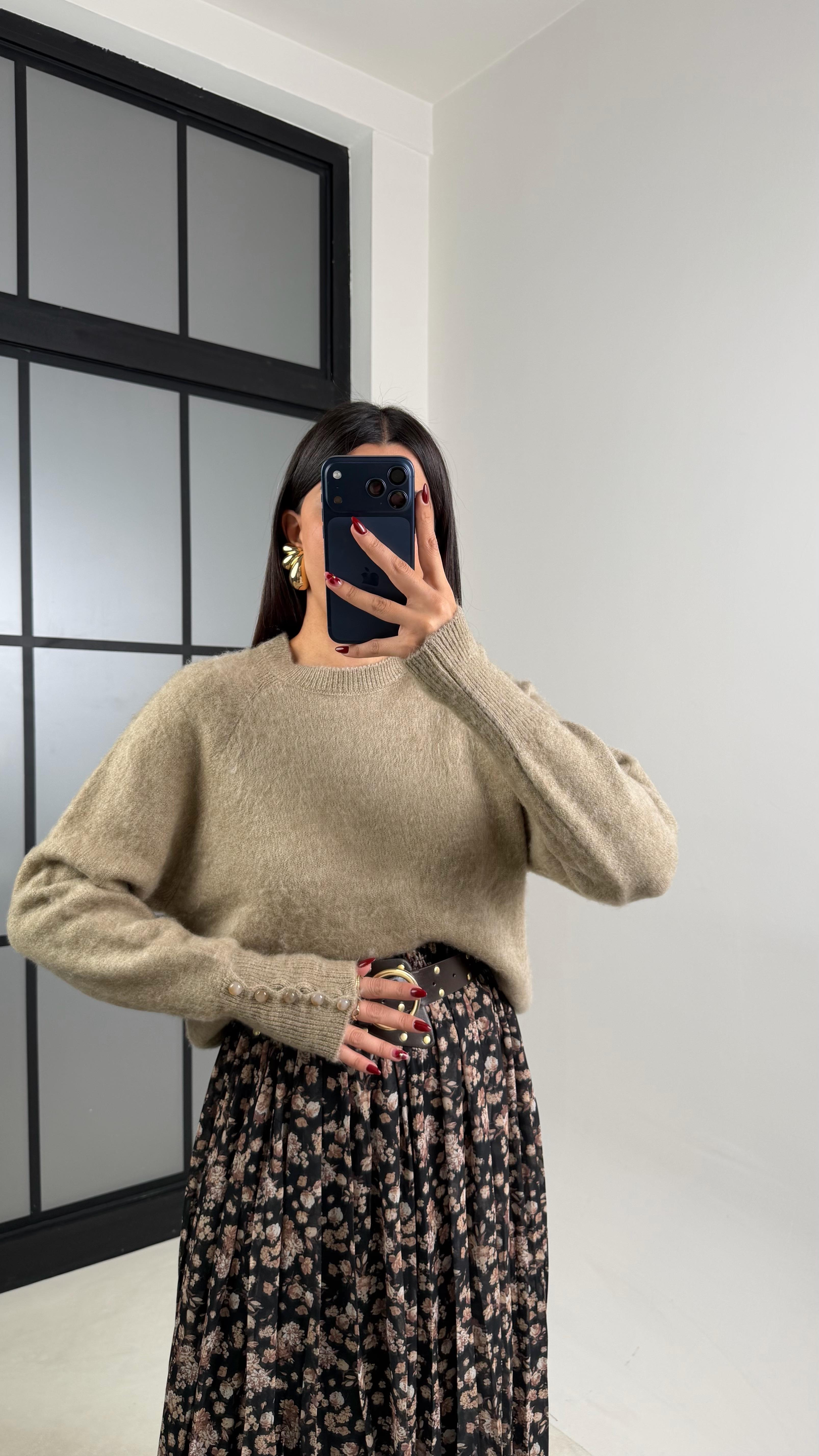 Kahve İtalyan Kol Yumuşak Dokulu Triko Kazak GAUS-00644 Krem İtalyan Kol Yumuşak Dokulu Triko Kazak GAUS-00644