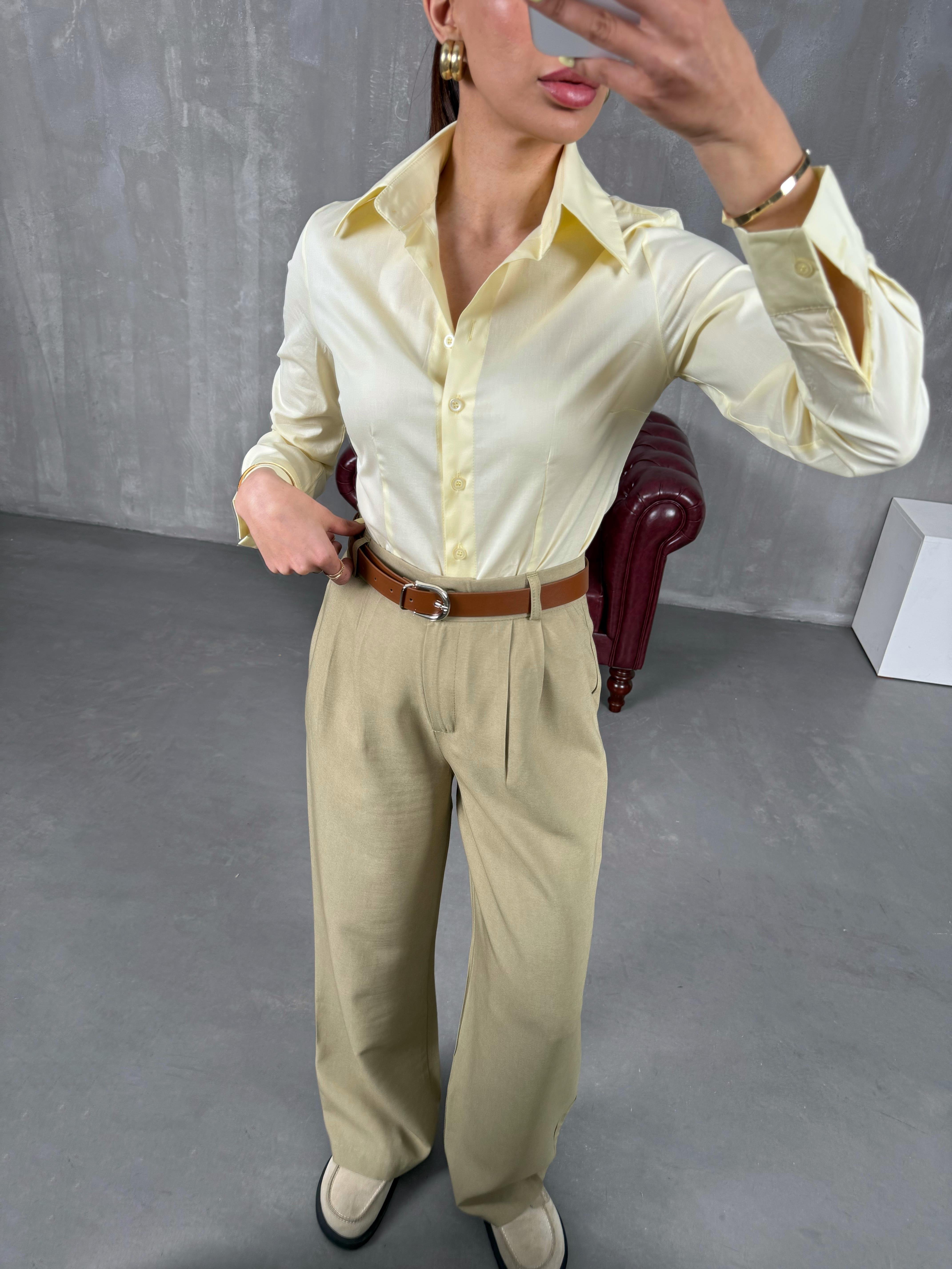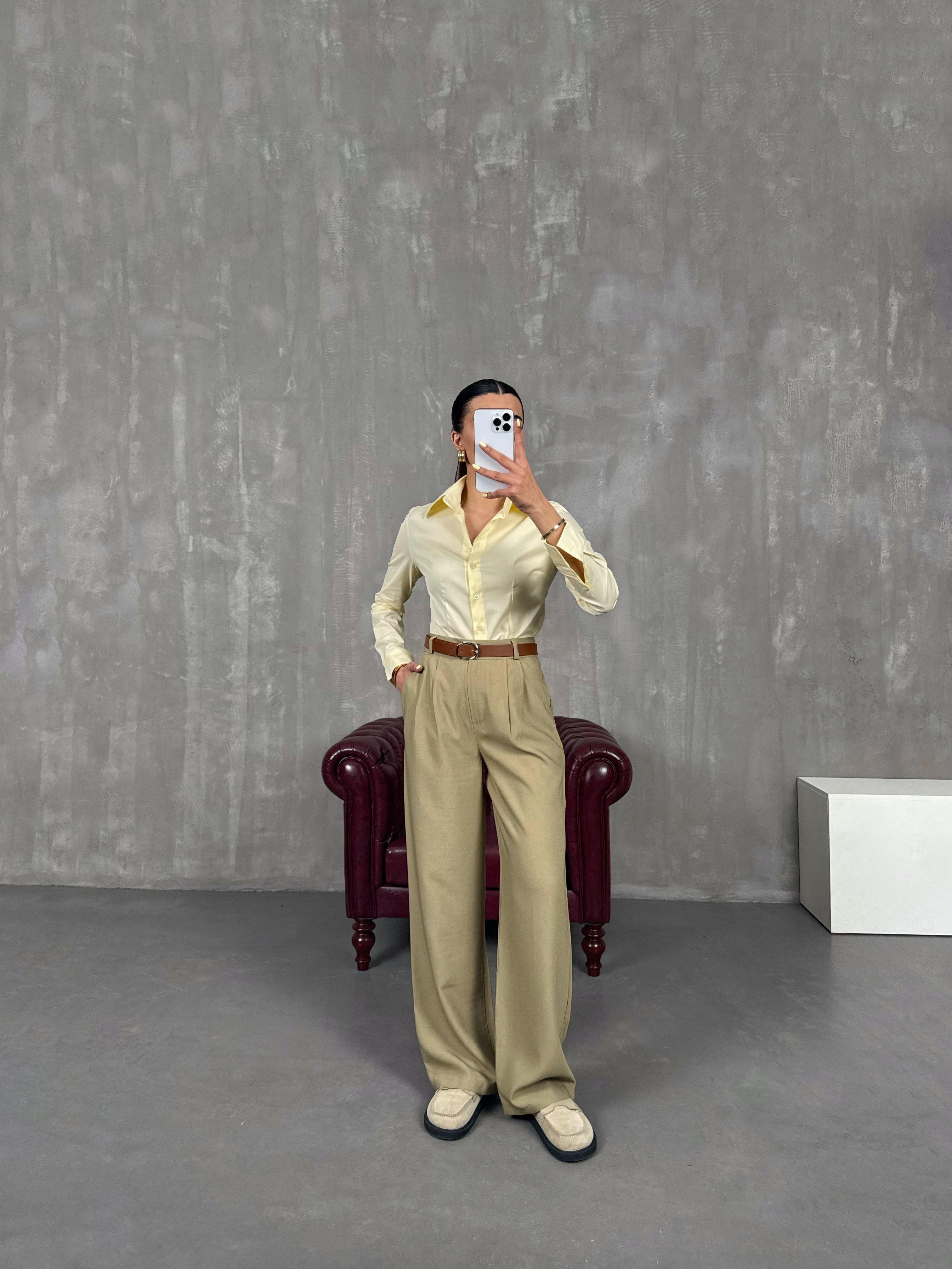 بنطال بالازو لون حجري قماش مستورد مع حزام Gaus00090 بنطال بالازو بني قماش مستورد مع حزام Gaus00090