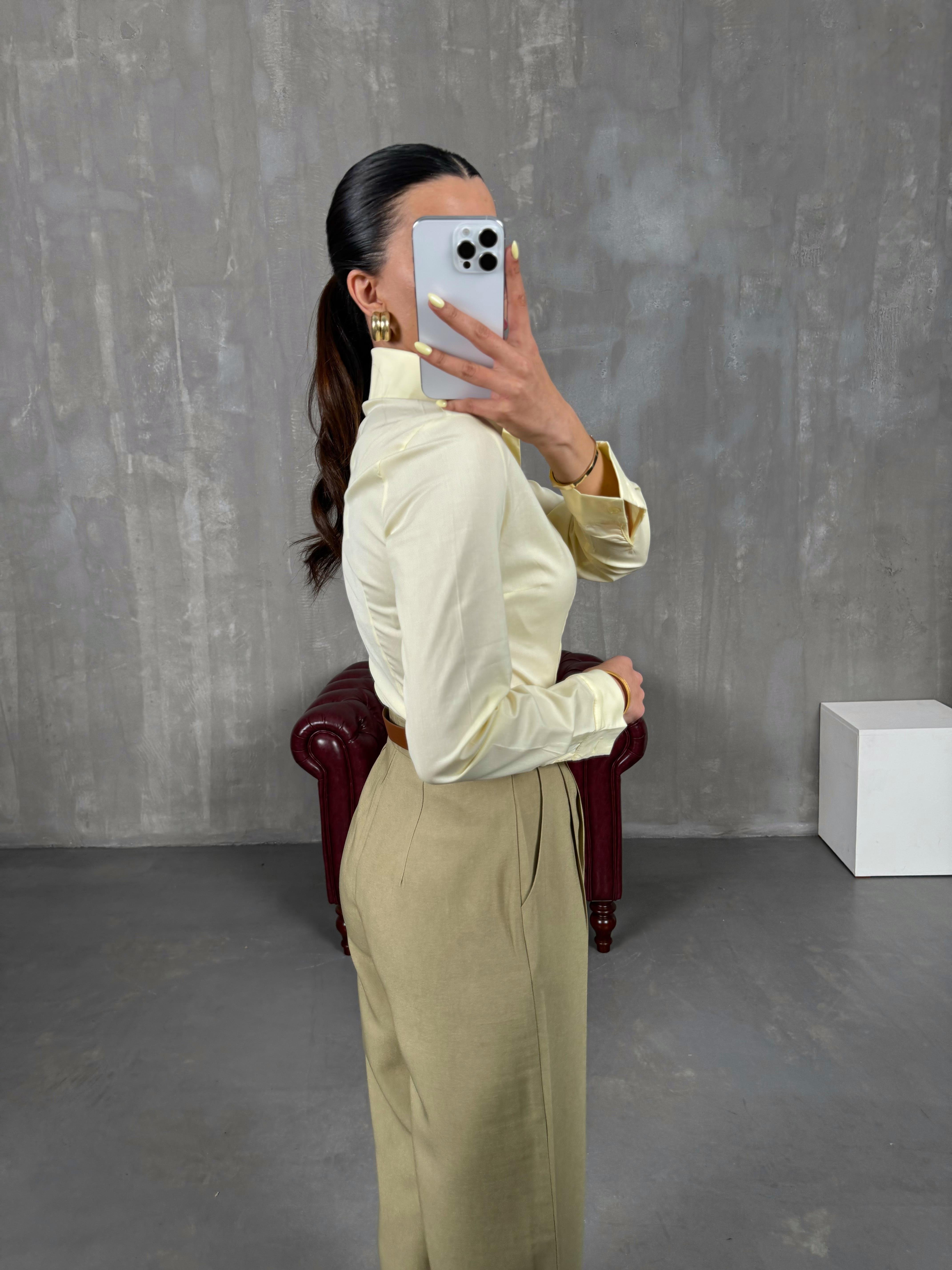 بنطال بالازو أخضر قماش مستورد مع حزام Gaus00090