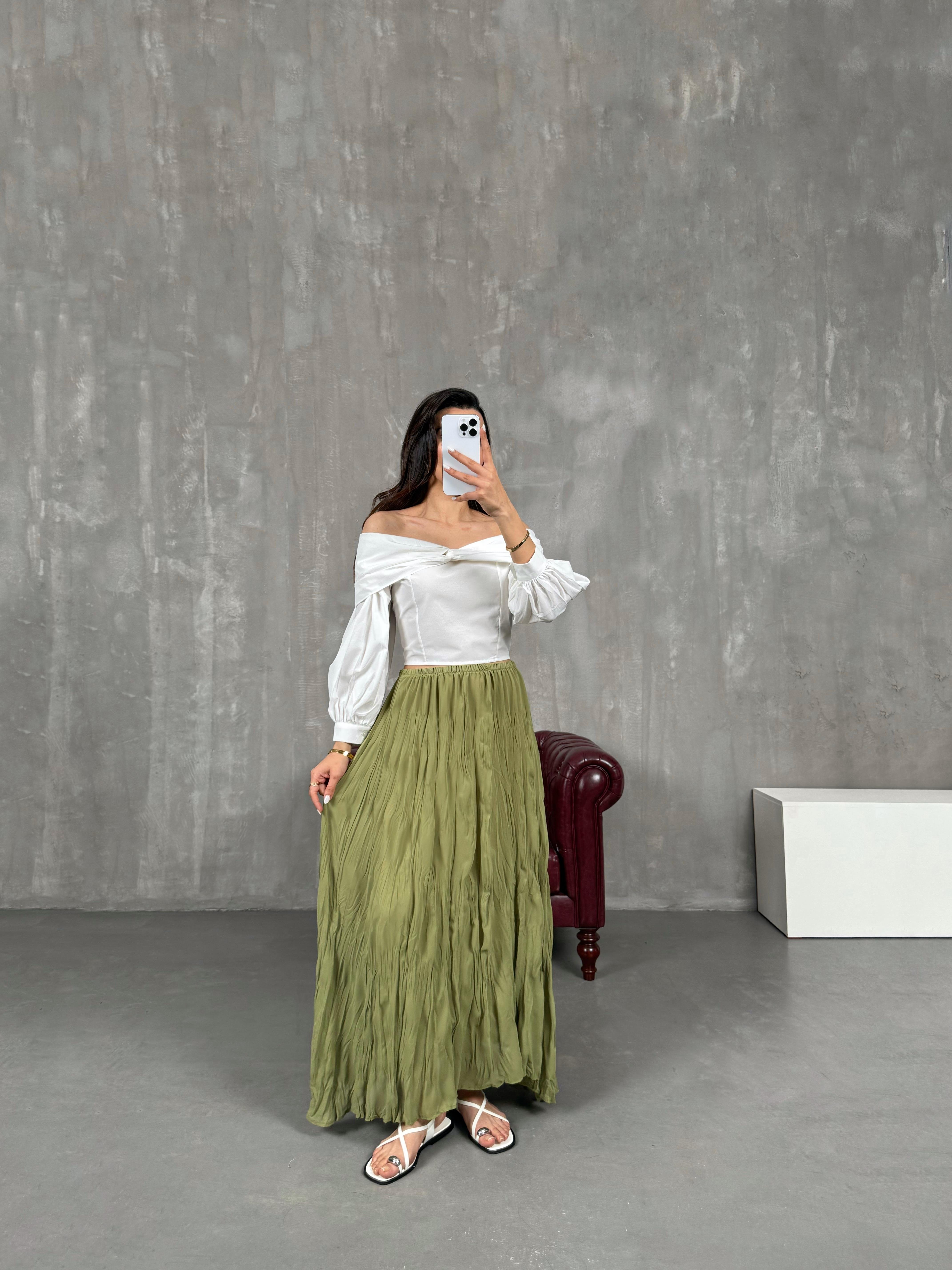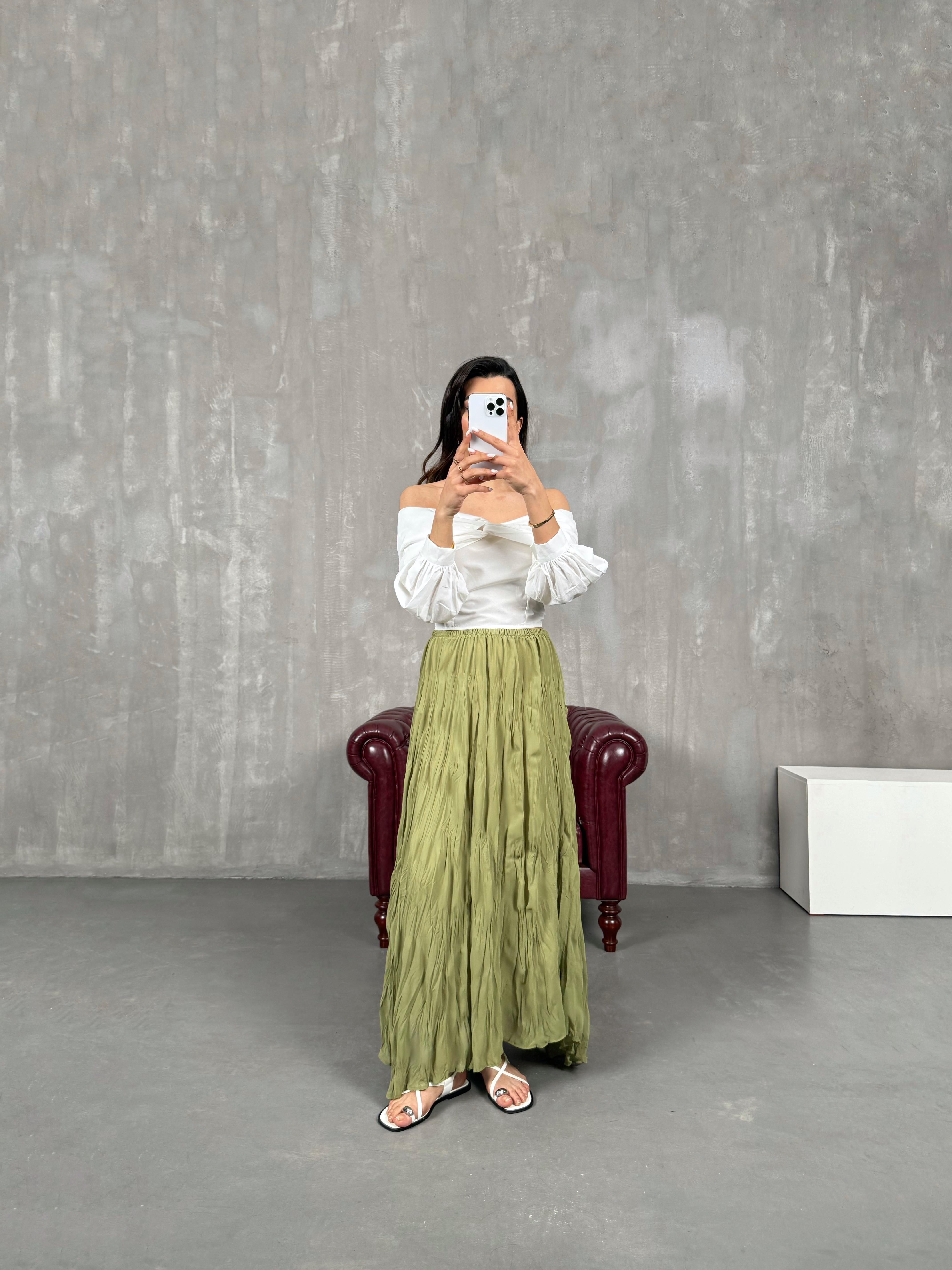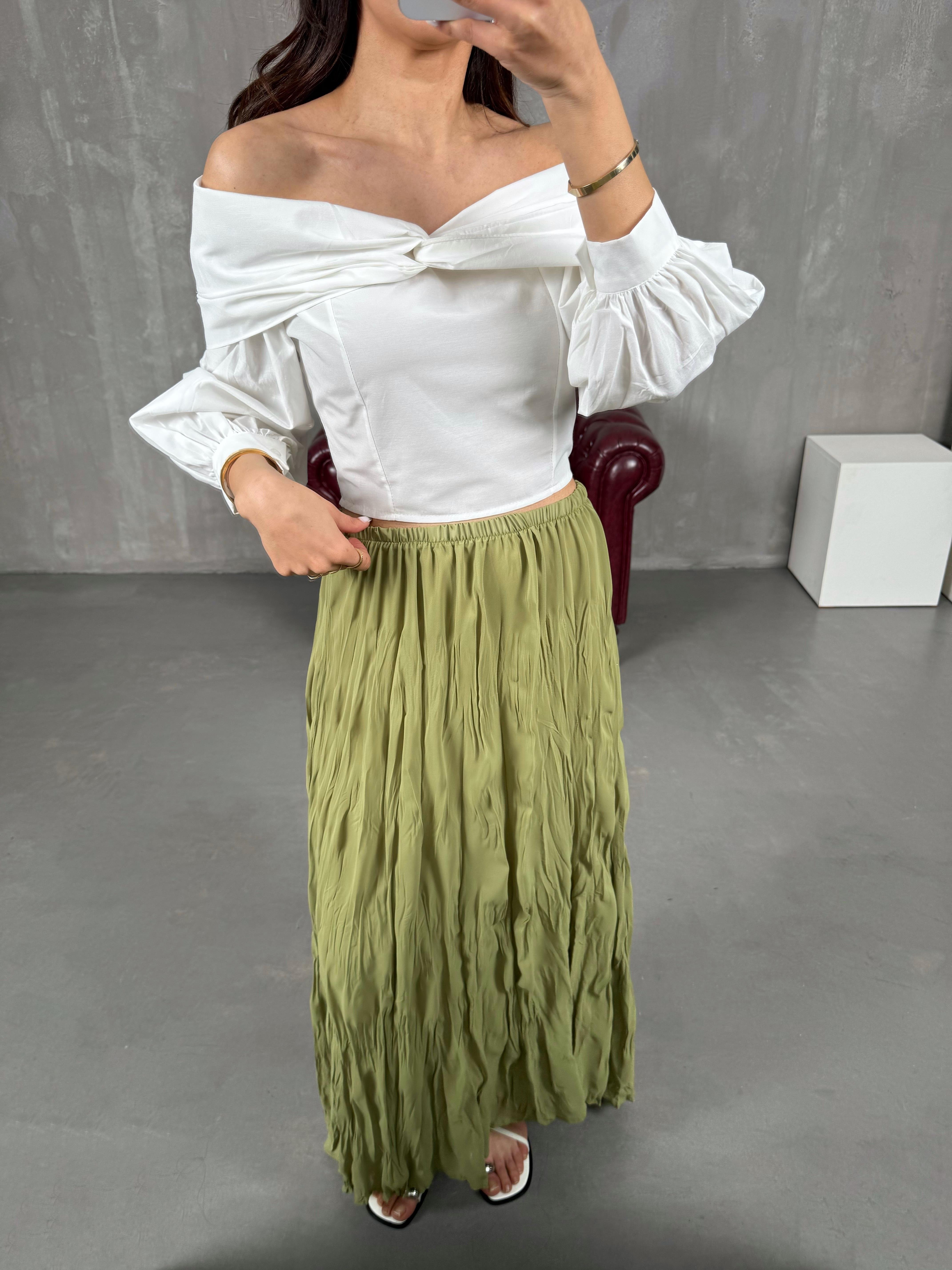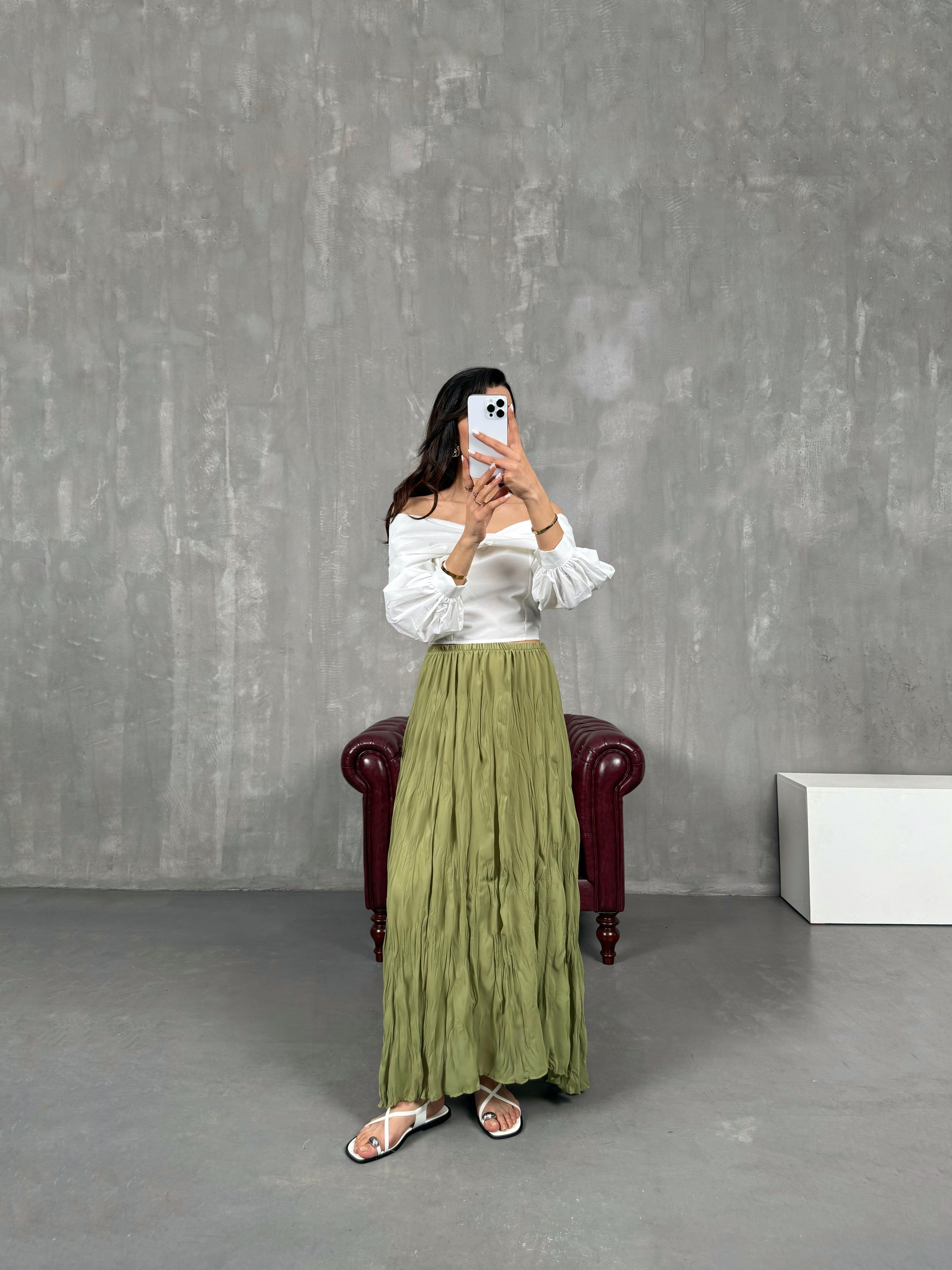 تنورة لون أخضر مبطنّة وبتفاصيل تول مجعّد Gaus00052