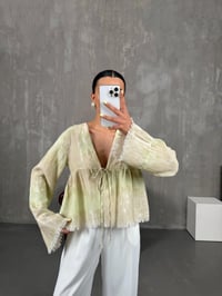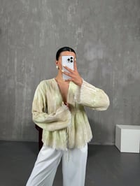 Yeşil Önden Bağlamalı Müslin Ebruli Bluz Gaus00088
