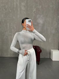 يودا بلوزة لون رمادي بنسيج كشمير وياقة نصف عالية