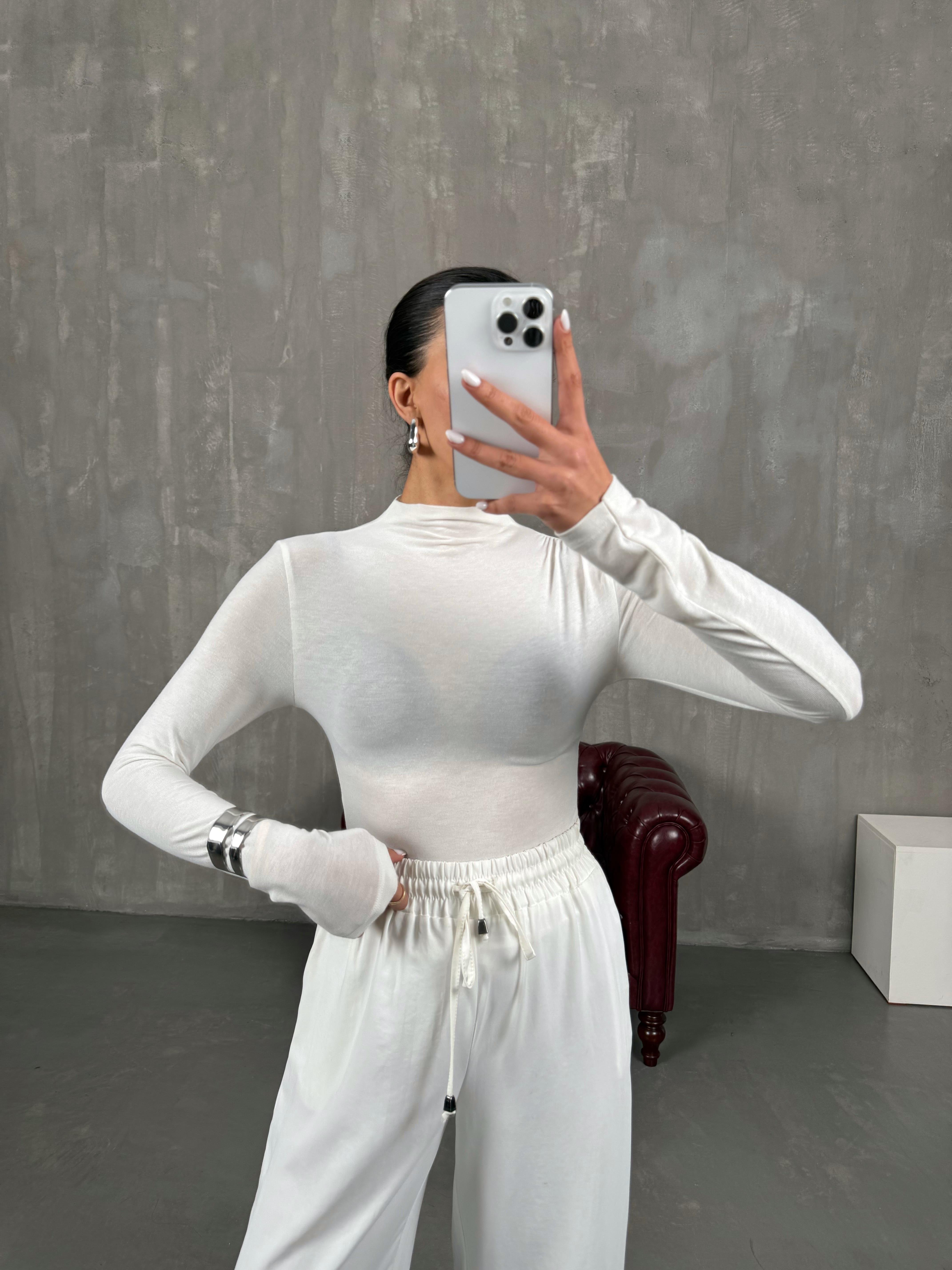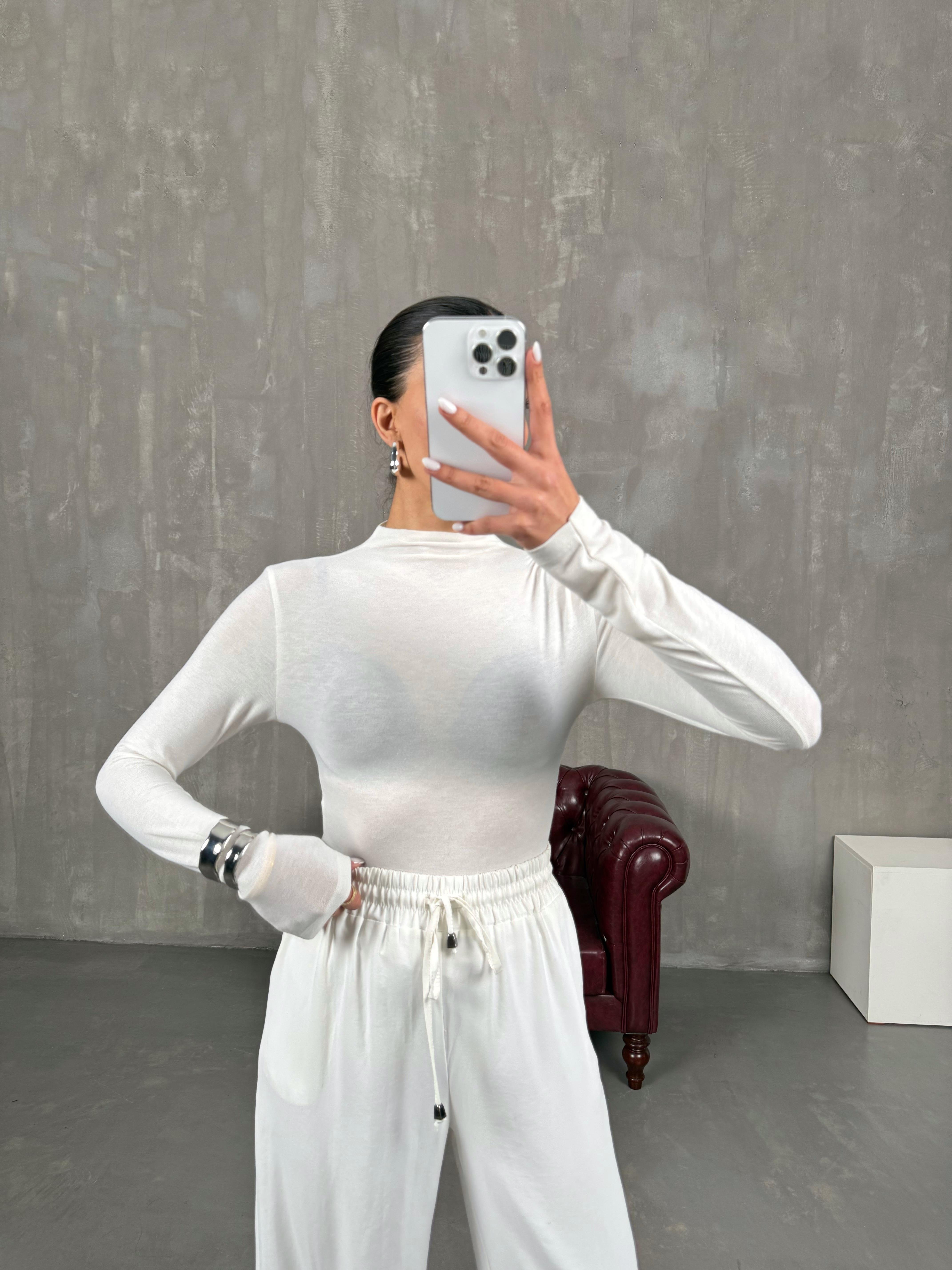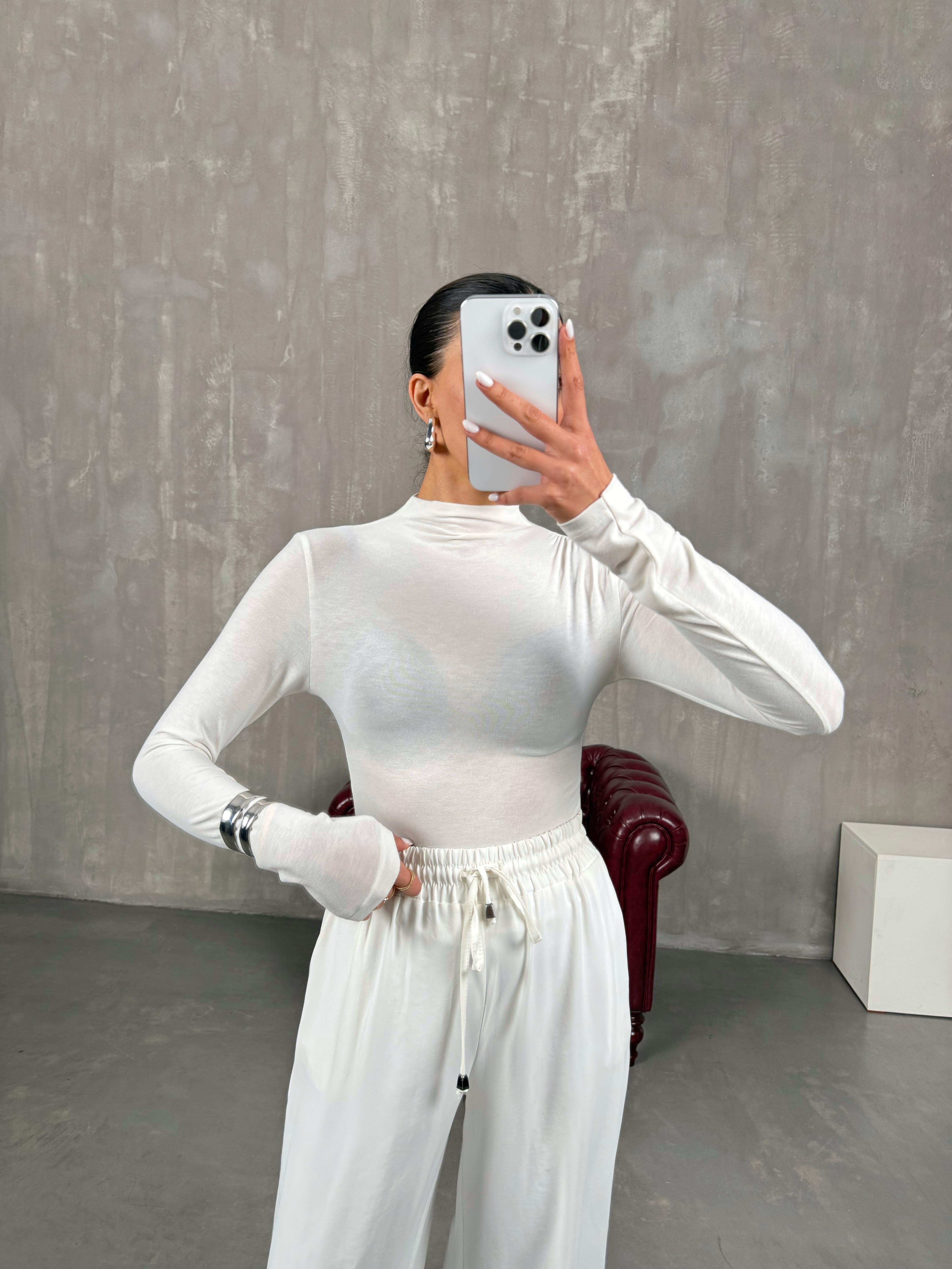 يودا بلوزة لون كريمي بنسيج كشمير وياقة نصف عالية