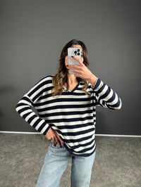 Yumoş Lacivert Çizgili Bluz