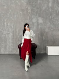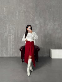 Sindo Kahve Peluş Deri Yelek Ceket Lordy Siyah Kol Denim Detaylı İçi Kürklü Kemerli Biker Mont Zari Bordo Tasarım Etek