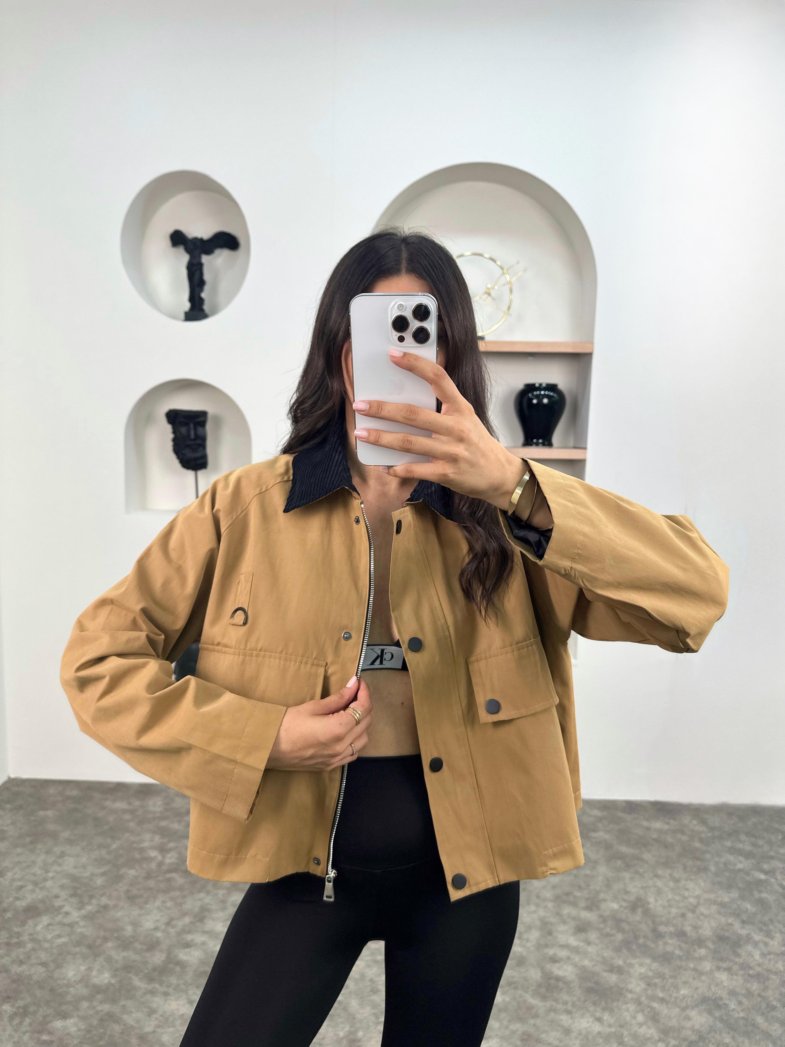 ZR Camel Astarlı Cepli Muadil Ceket