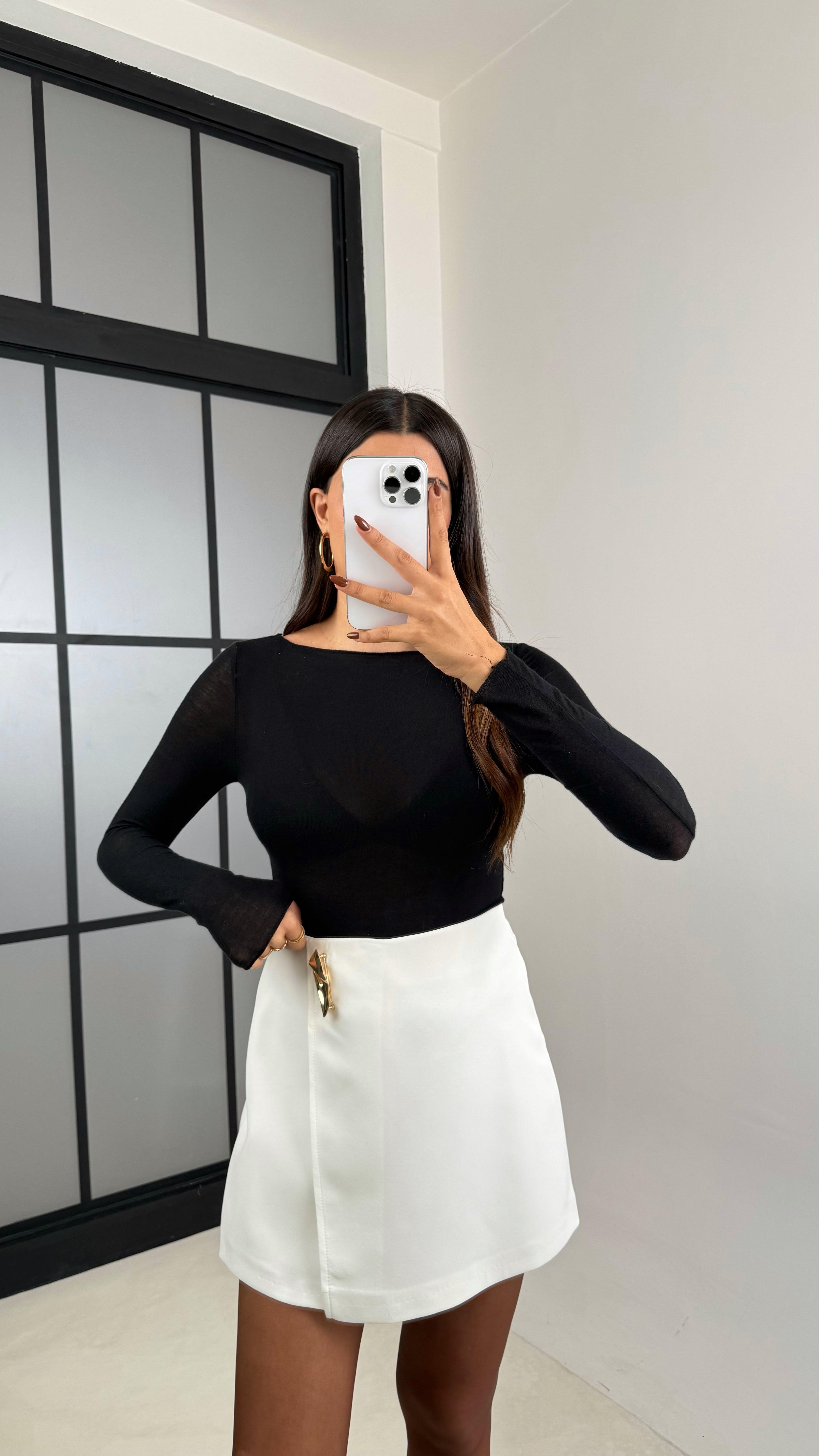 Beyaz Gold Tokalı Şort Etek GAUS-00453GAUSETEKGAUS-00453