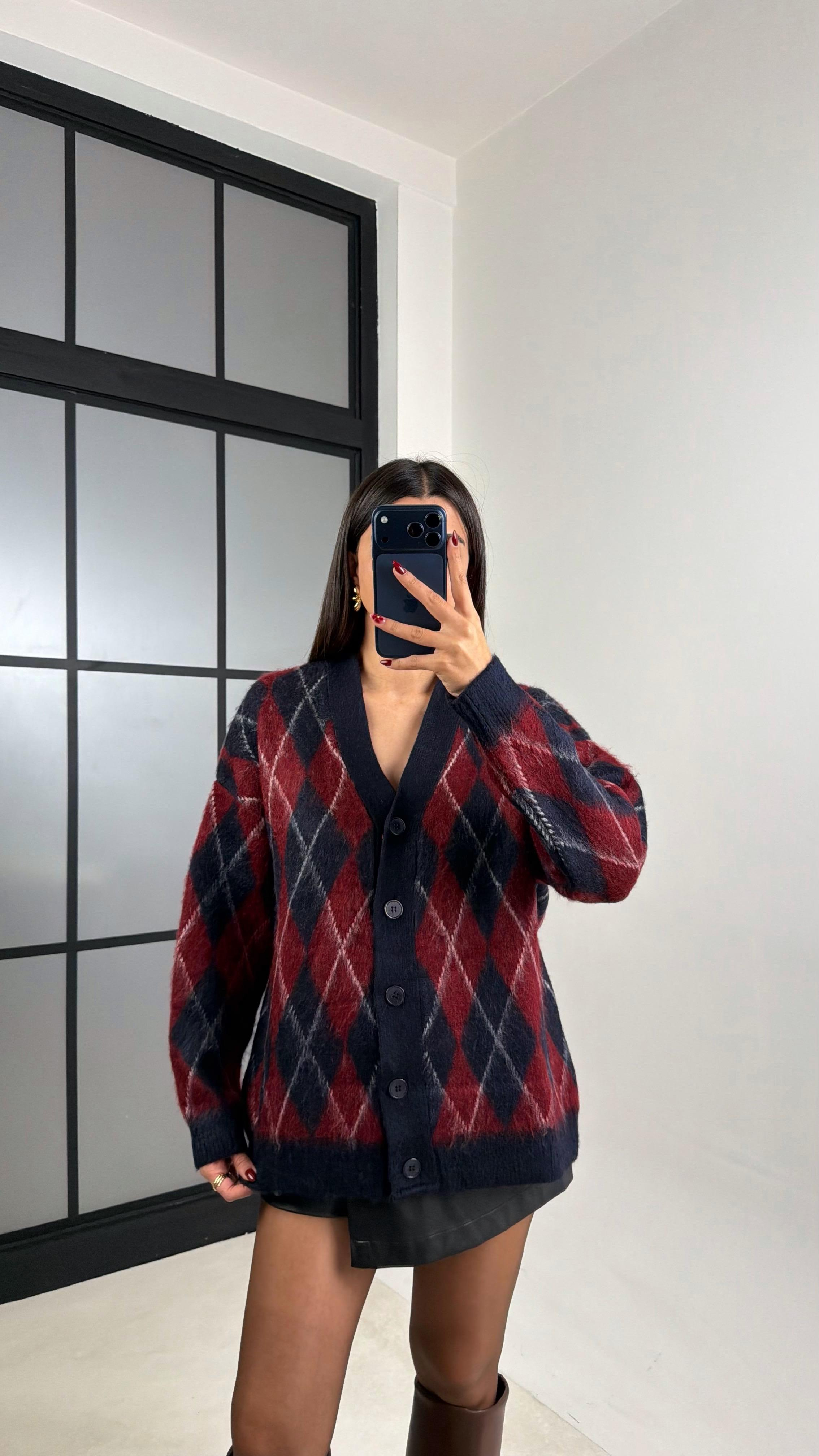 Bordo Baklava Desenli Triko Hırka GAUS-00627