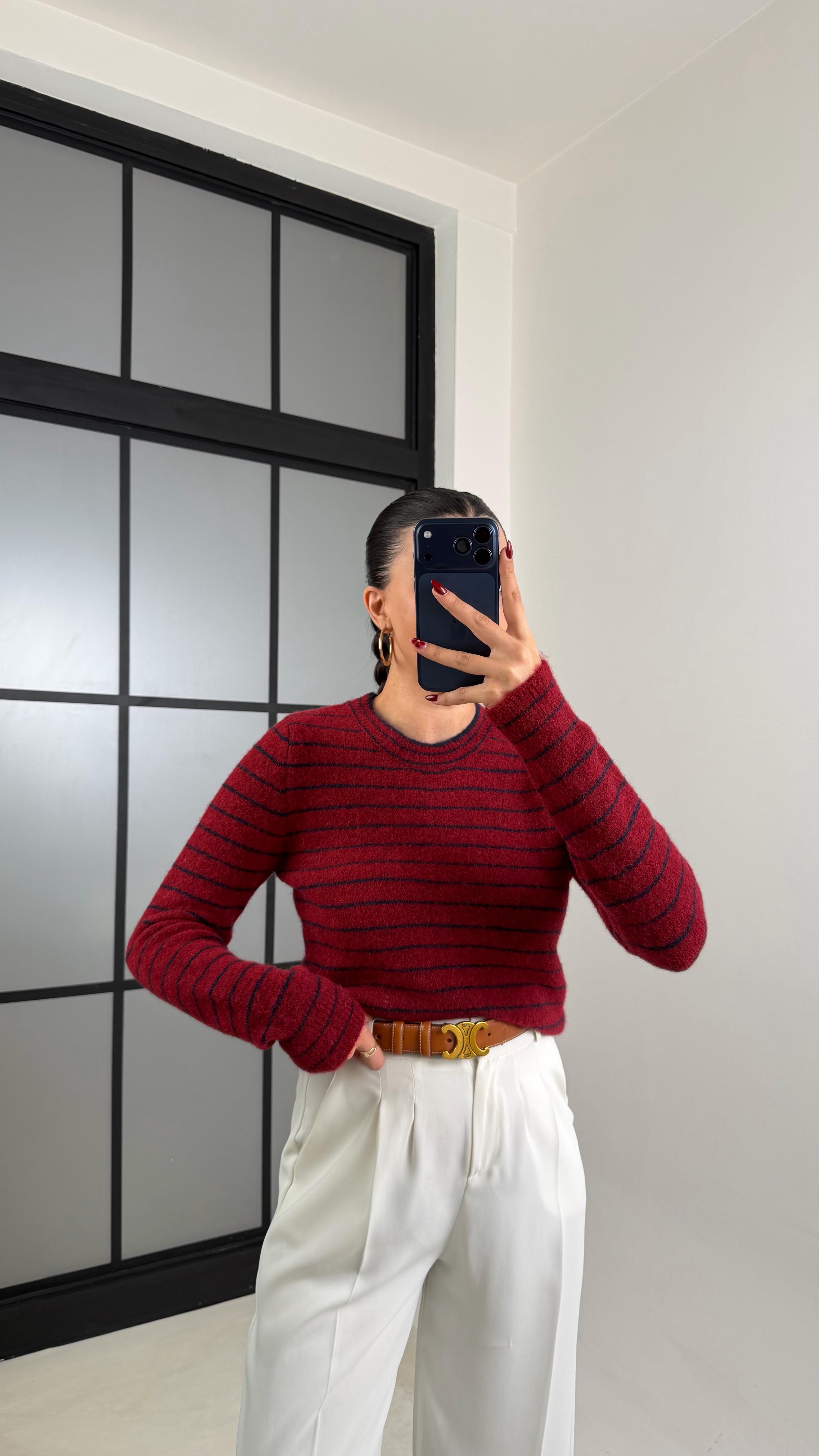 Bordo Çizgili Yumuşak Dokulu Kazak GAUS-00693