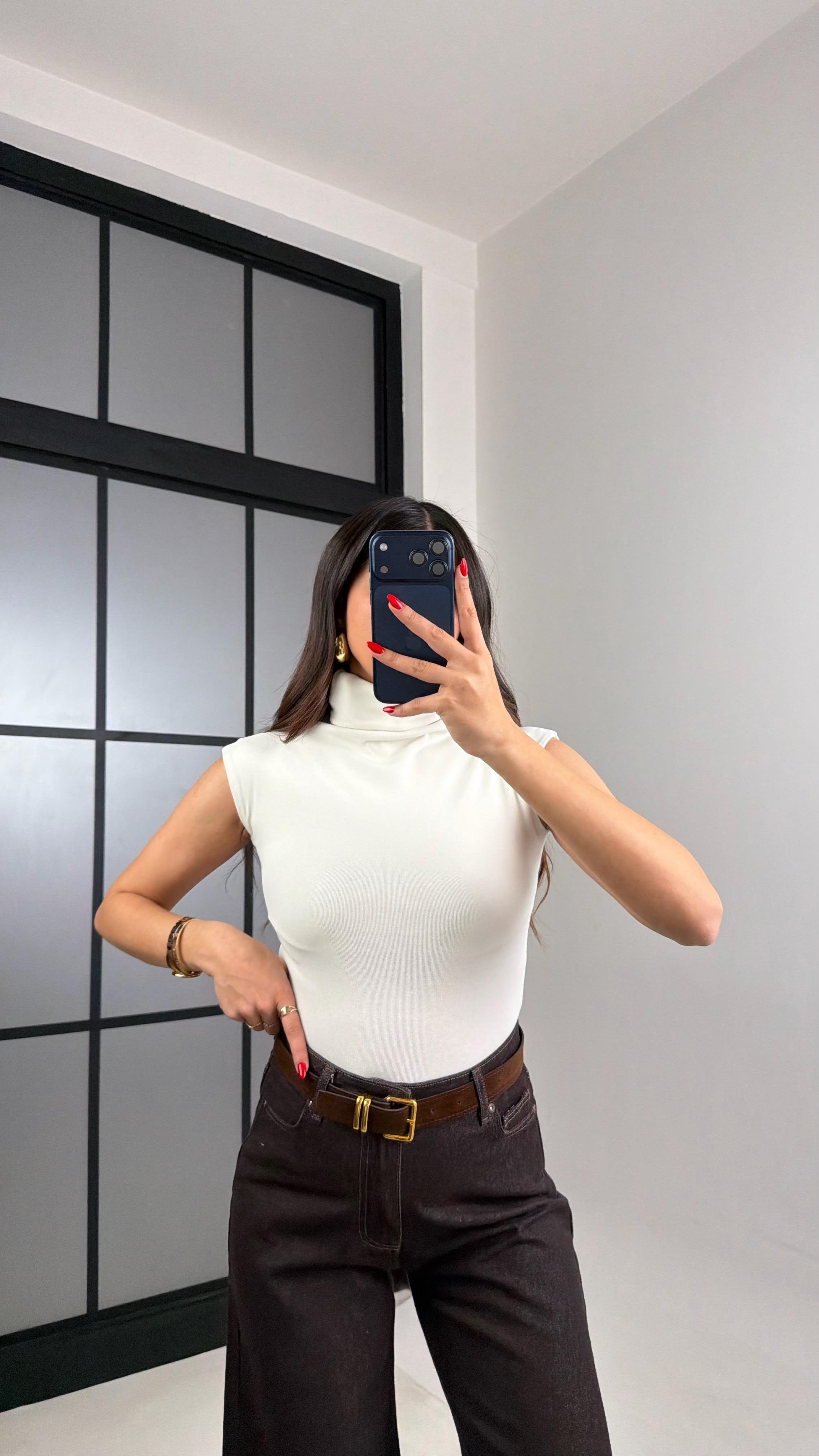 Ekru Balıkçı Yaka Sıfır Kol ZR Model Bodysuit GAUS-00942