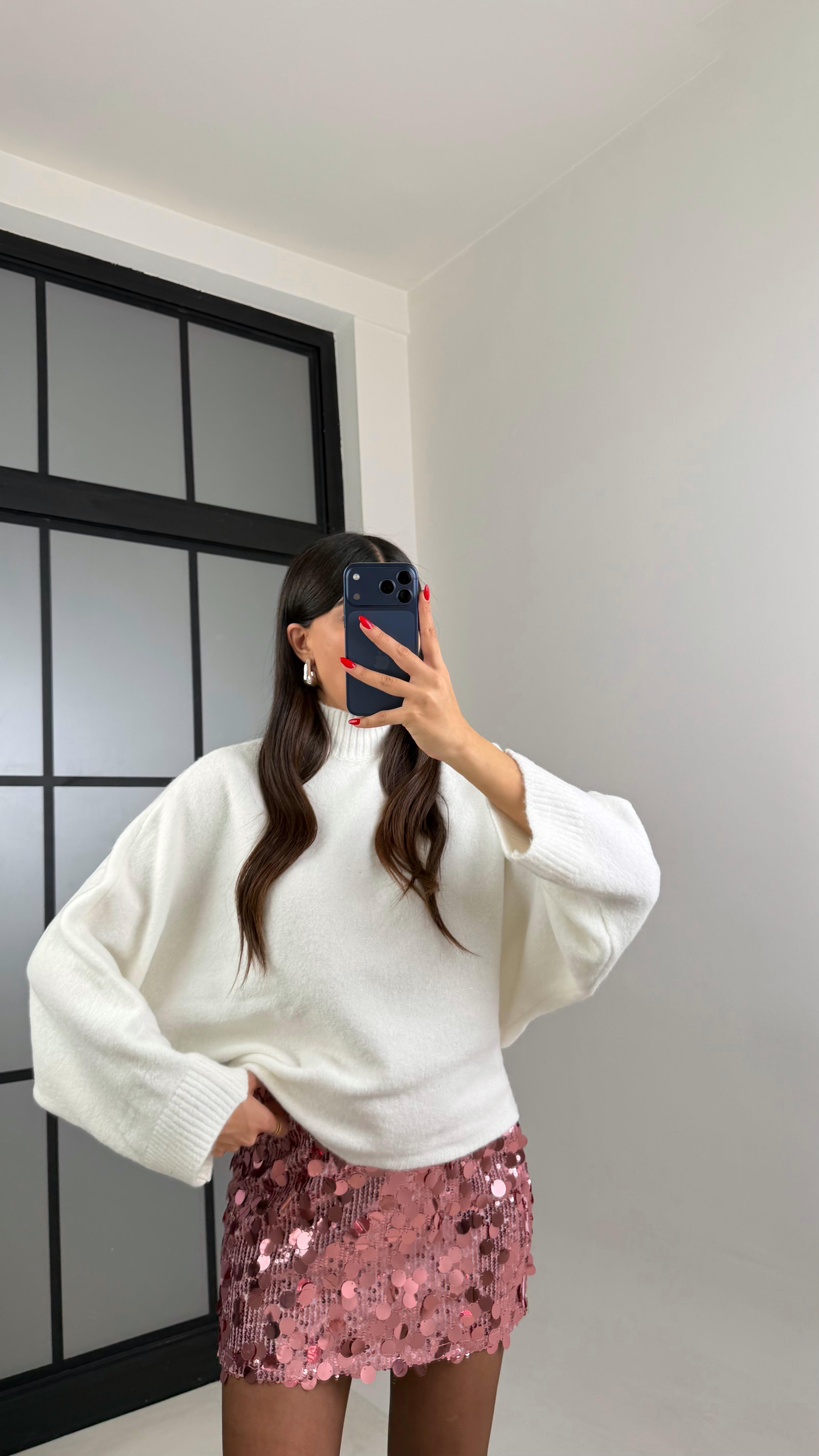 Ekru Balıkçı Yaka Yarasa Kol Triko Kazak GAUS-00928