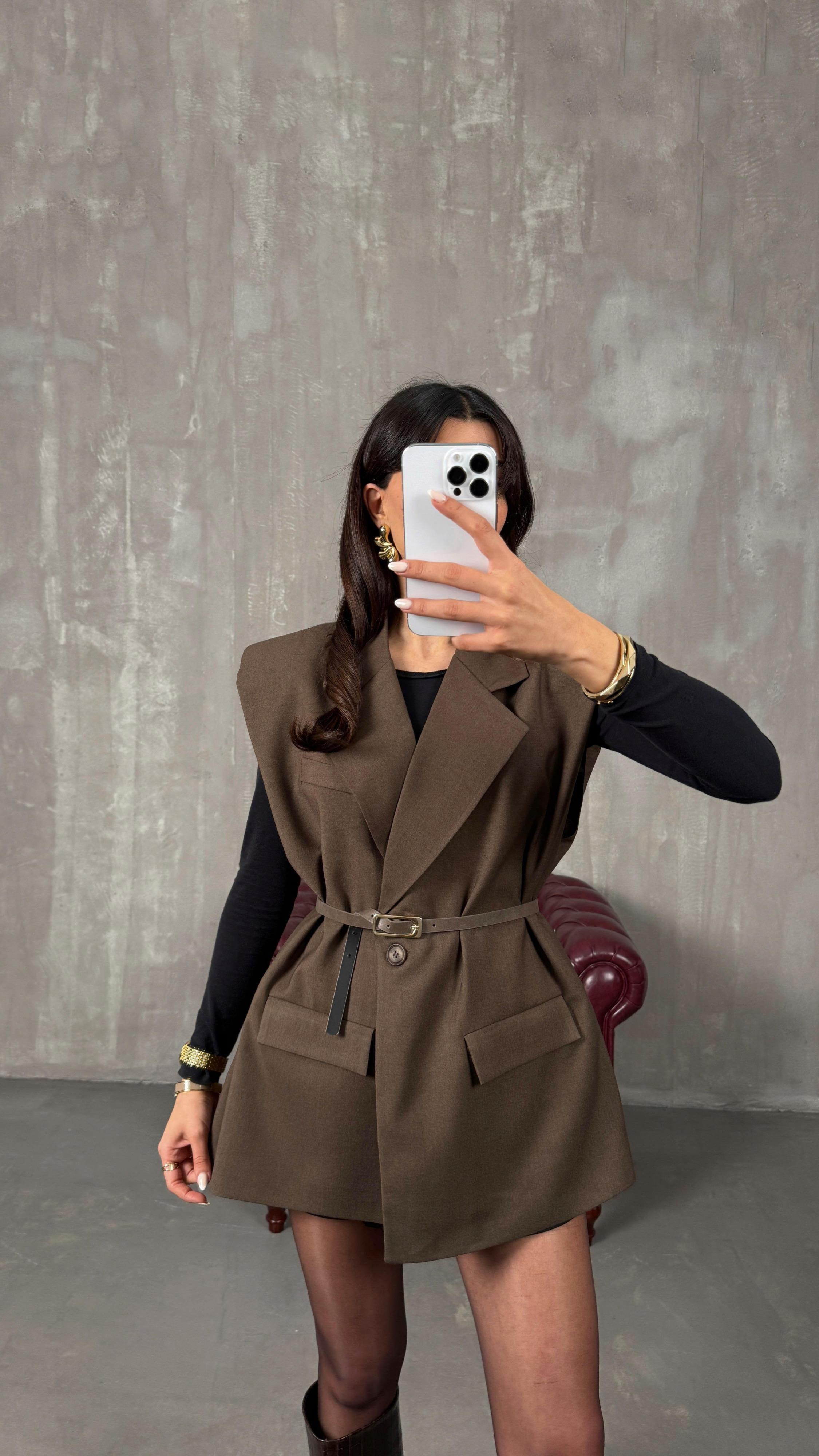 Acı Kahve Astarlı Vatkalı Kemerli Premium Yelek GAUS-01139