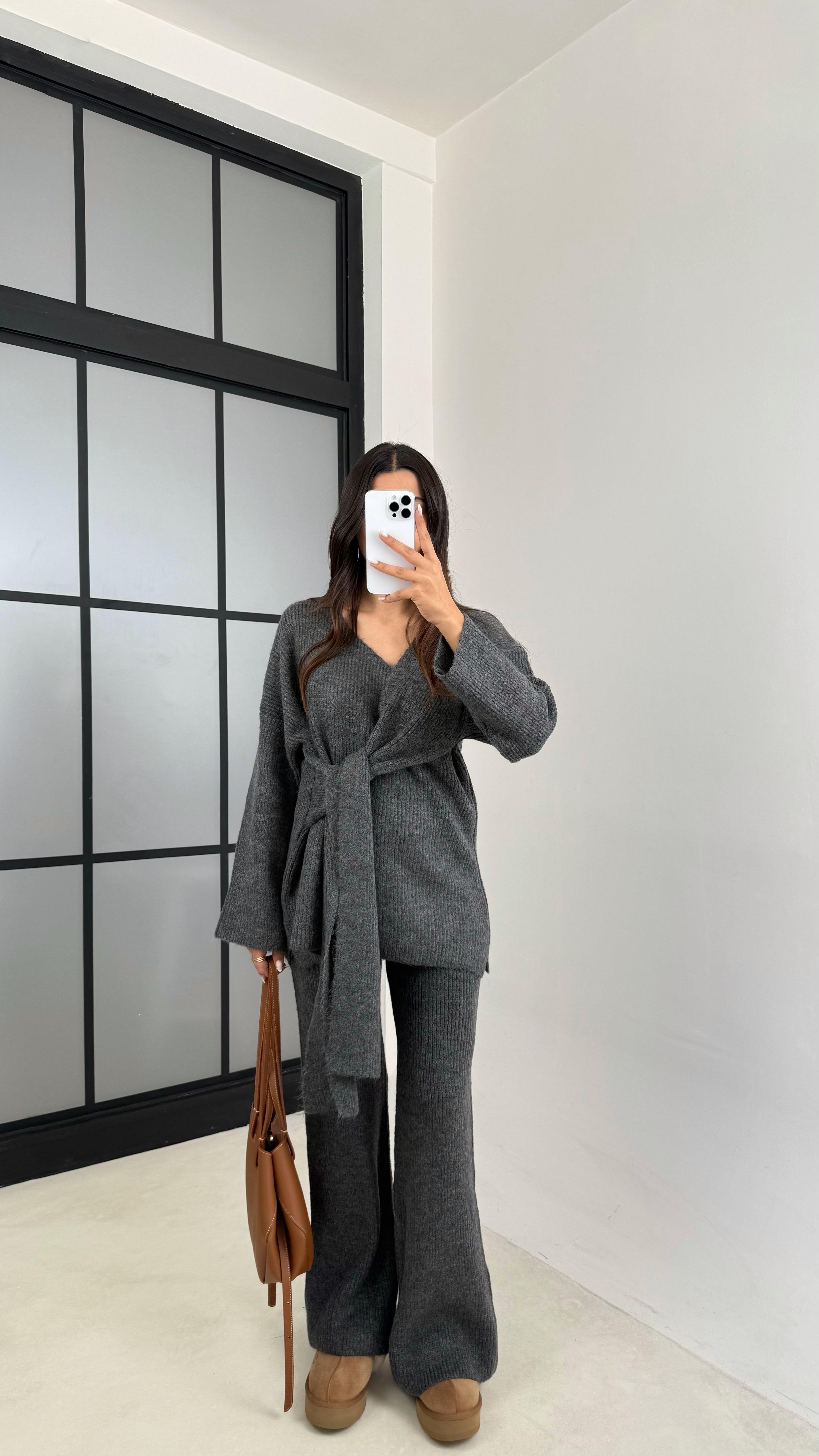 Antrasit Bağlama Detaylı Kazak Pantolon İkili Triko Takım GAUS-00526