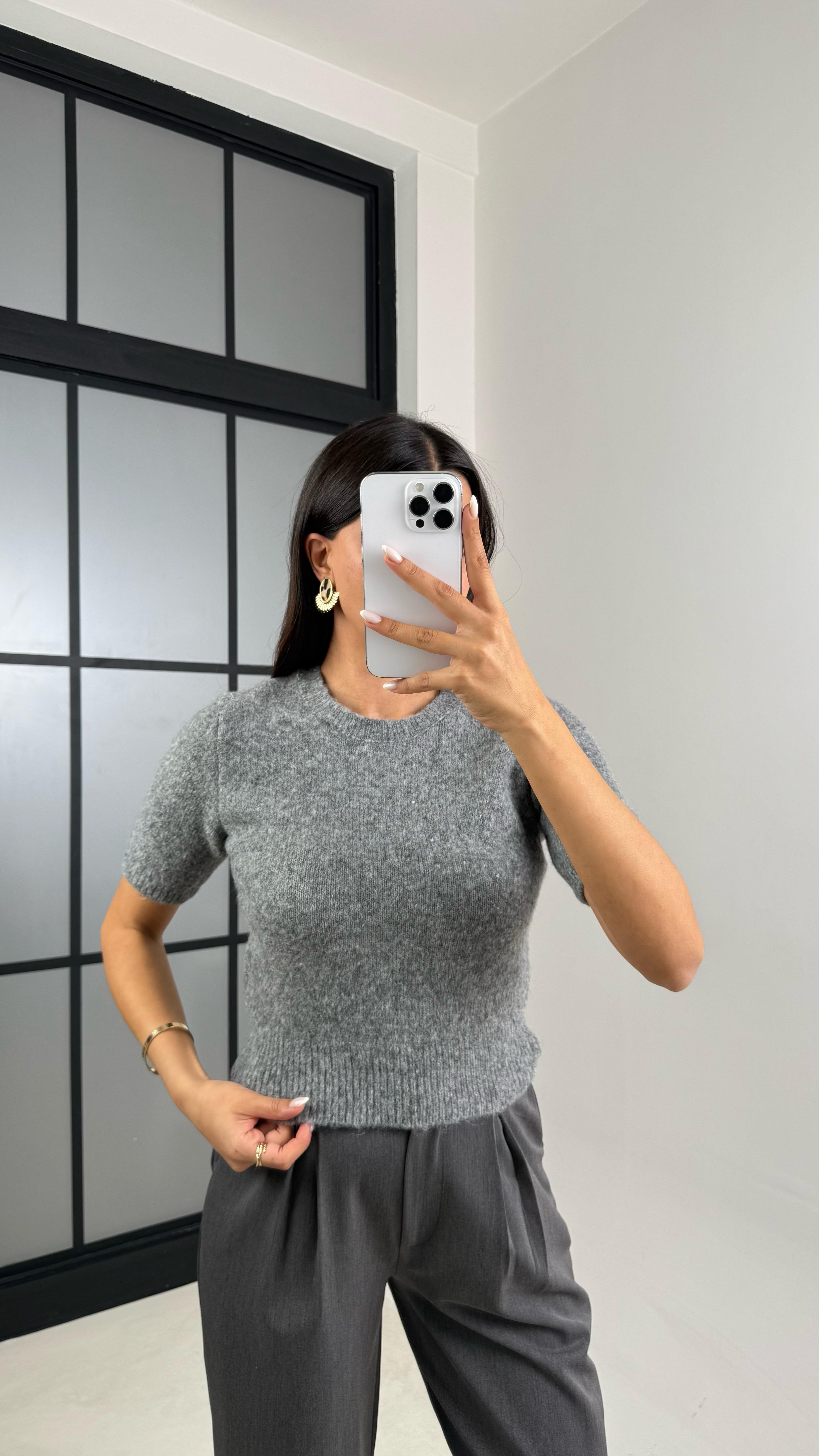 Antrasit Kısa Kol Yumuşak Triko Kazak GAUS-00554GAUSSweaterGAUS-00554