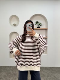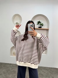 Biana Bordo Çizgili Üç İplik Şardonlu Ekru Oversize Sweatshirt