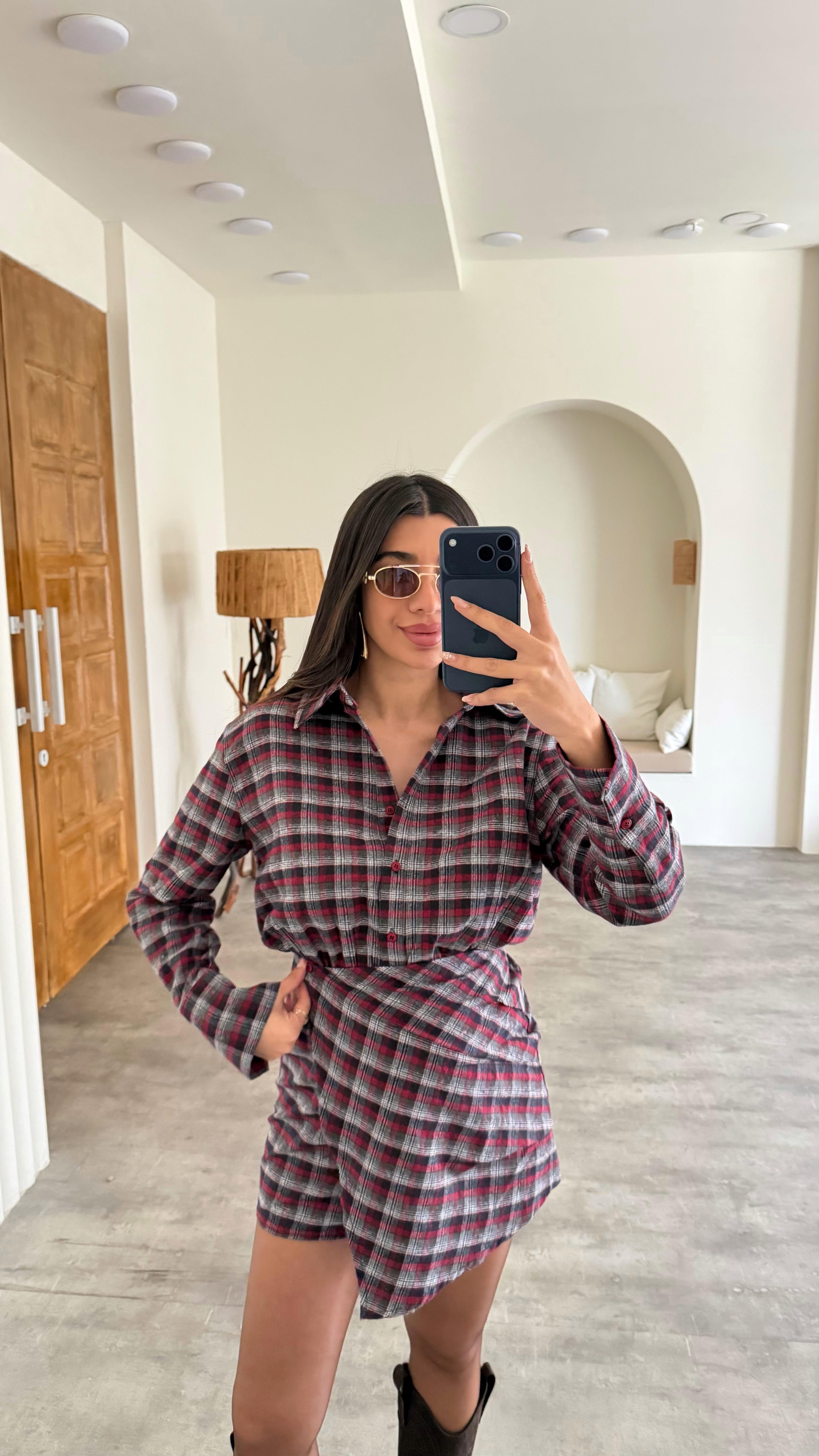 Lacivert Düğmeli Ekose Desenlii Muadil Gömlek Elbise GAUS-00877 Kahve Düğmeli Ekose Desenlii Muadil Gömlek Elbise GAUS-00877 Bordo Düğmeli Ekose Desenlii Muadil Gömlek Elbise GAUS-00877