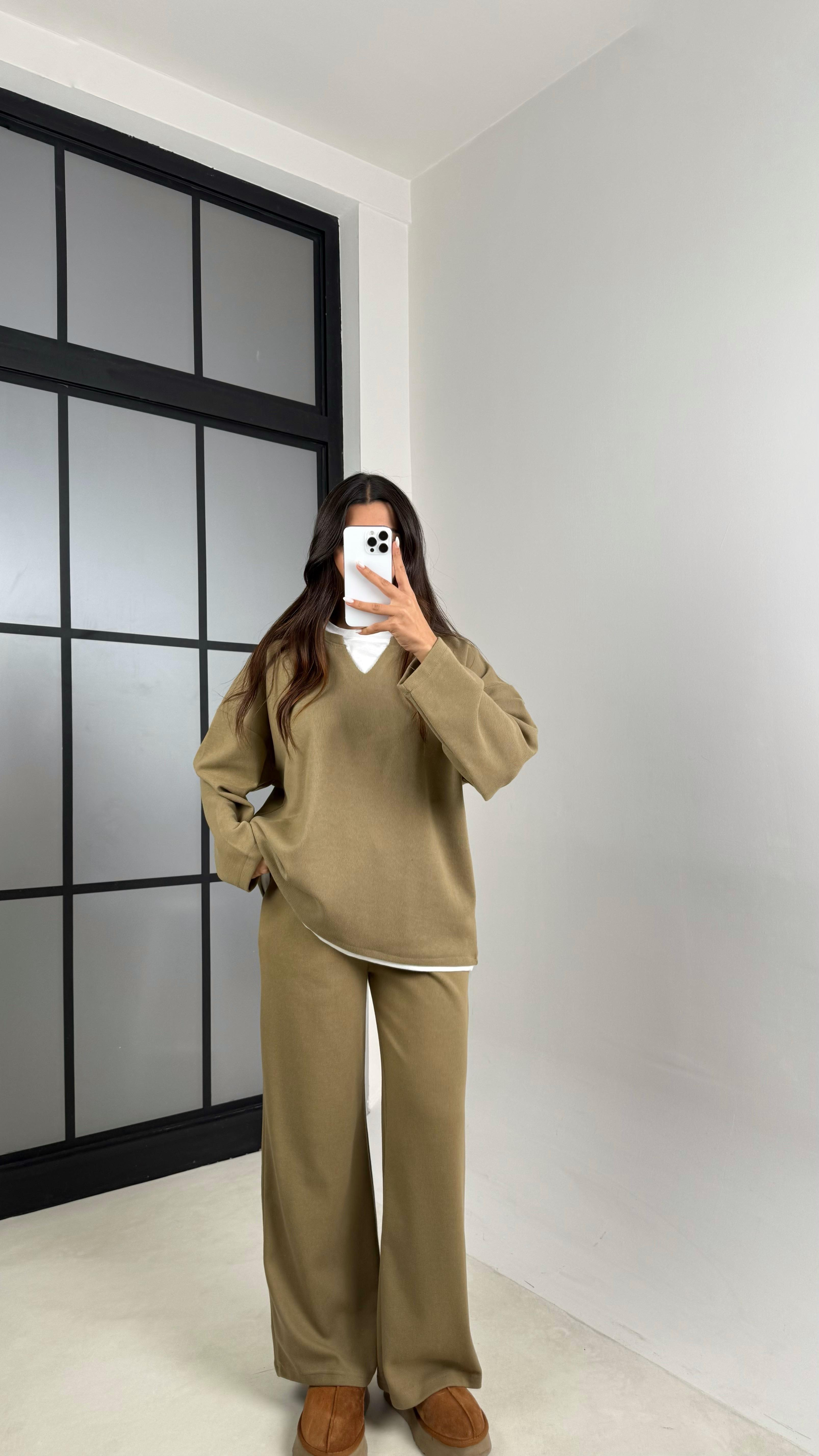 Camel Tshirt Detaylı Kazak Beli Lastikli Pantolon İkili Triko Takım GAUS-00485