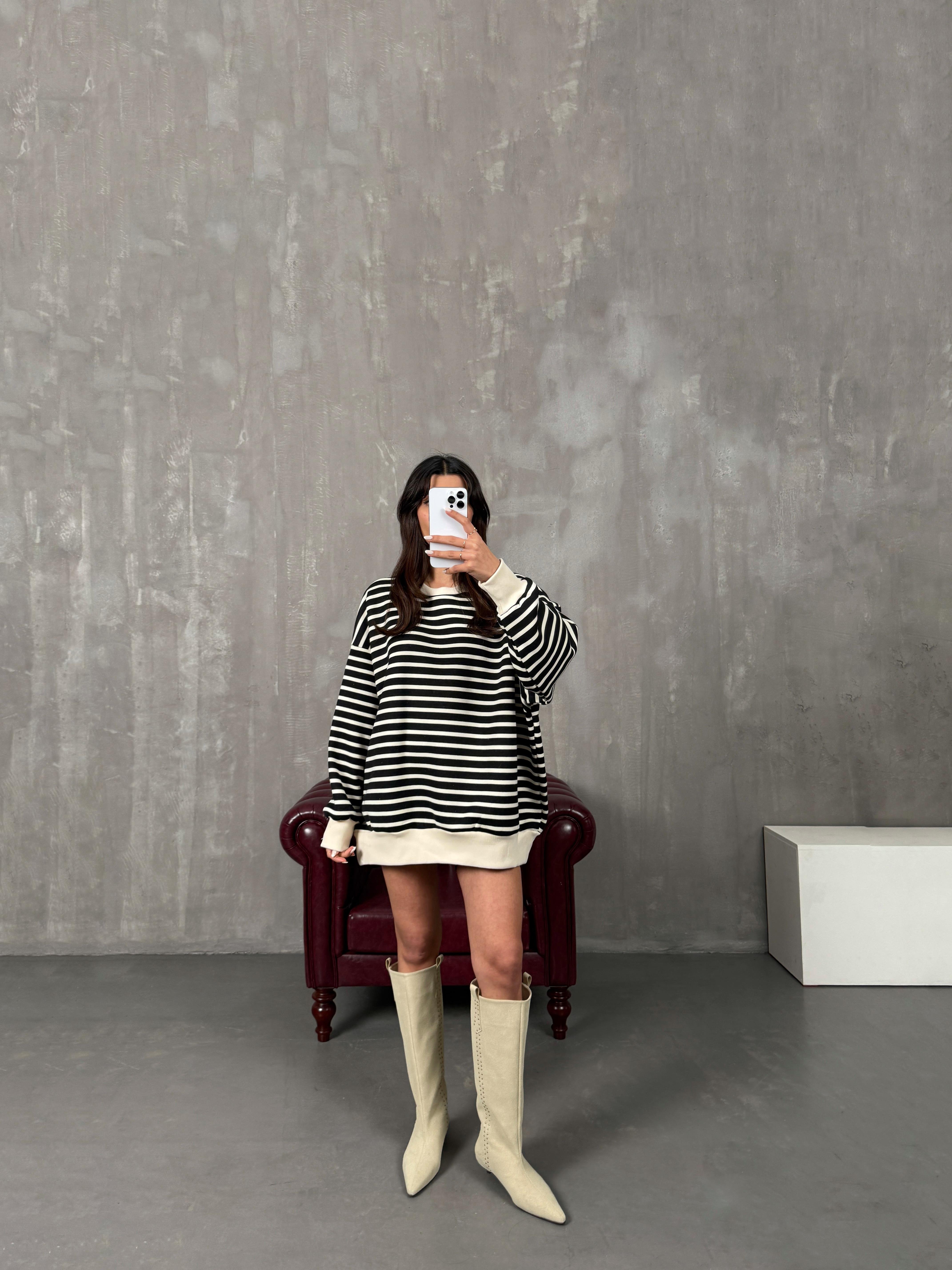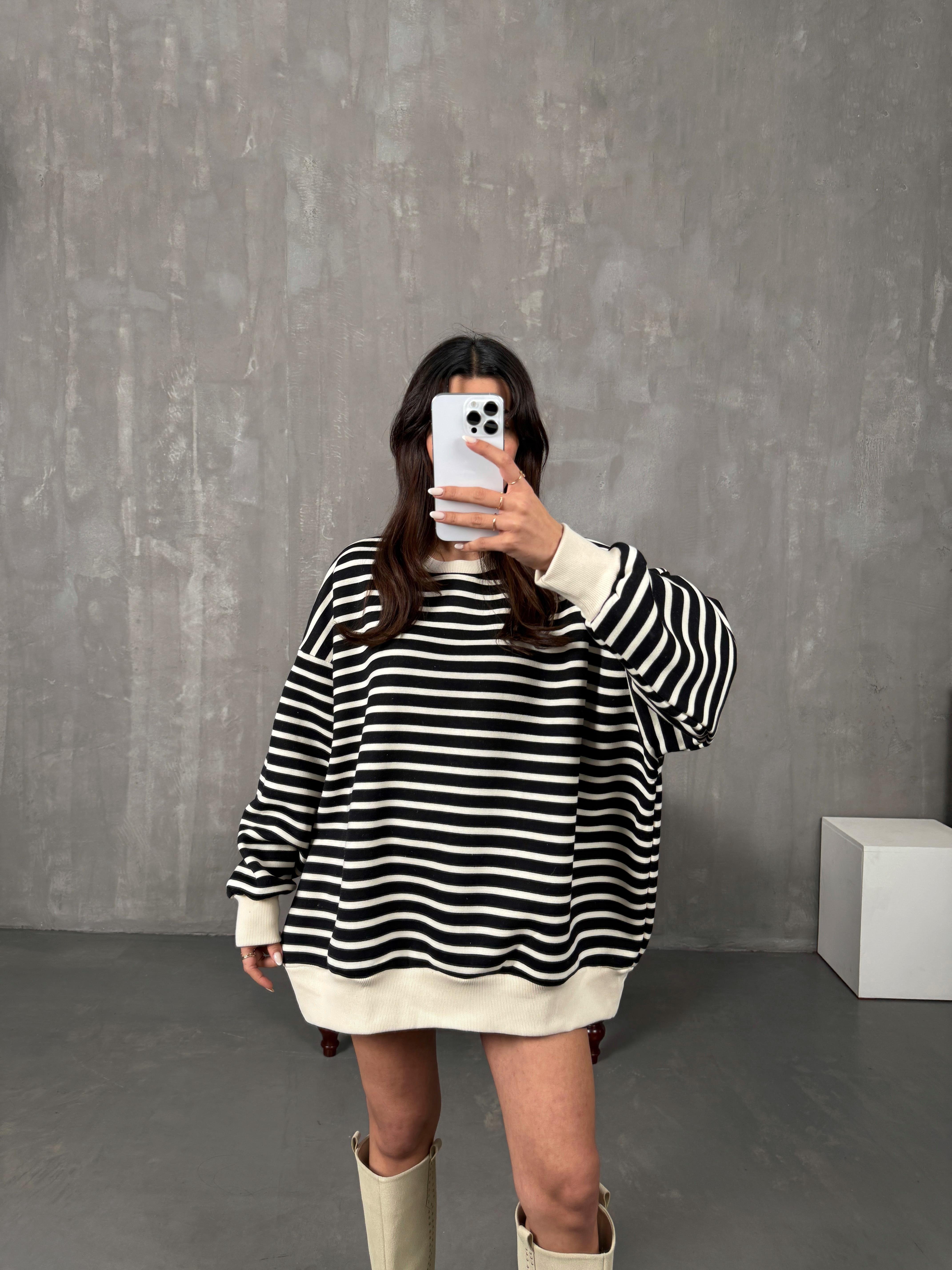 Felisya Beyaz Çizgili Üç İplik Şardonlu Sweat