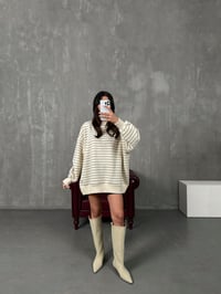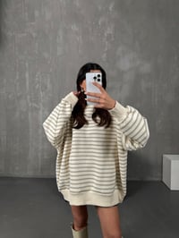 Felisya Vizon Çizgili Üç İplik Şardonlu Sweat