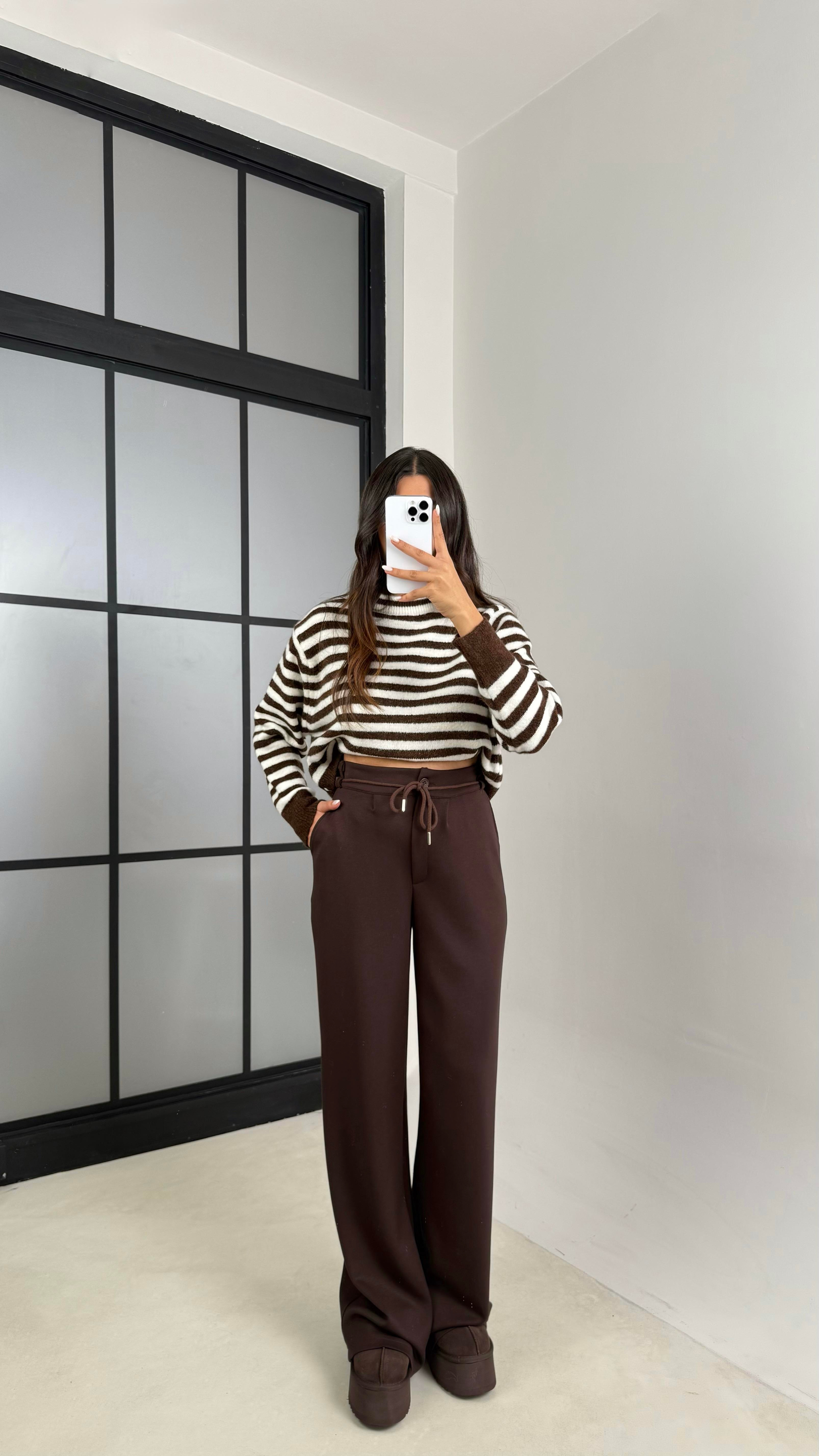 Kahve Kuşaklı Cepli Modal Kumaş Pantolon GAUS-00539