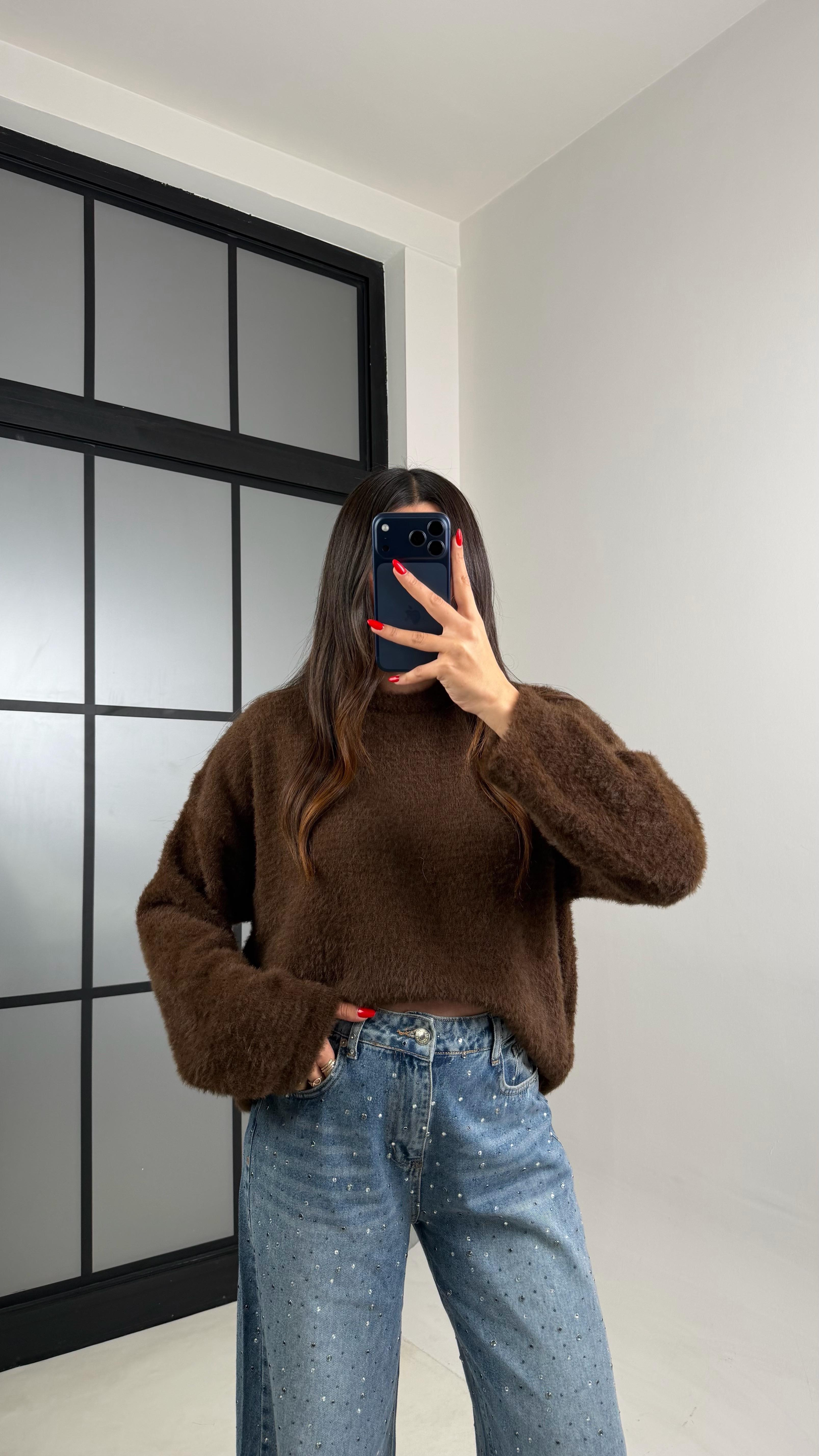 Kahve Yumuşak Dokulu Triko Kazak GAUS-00967