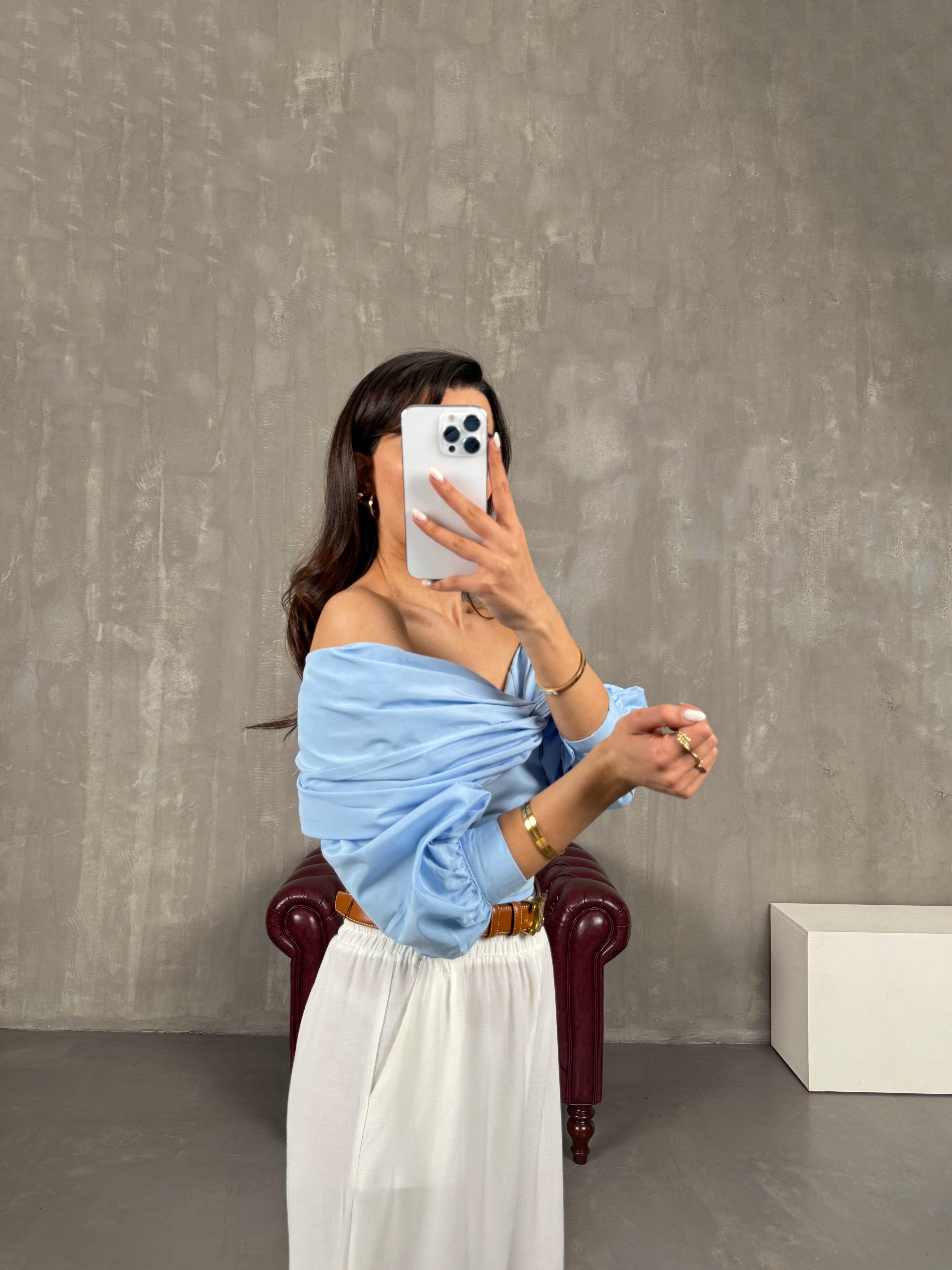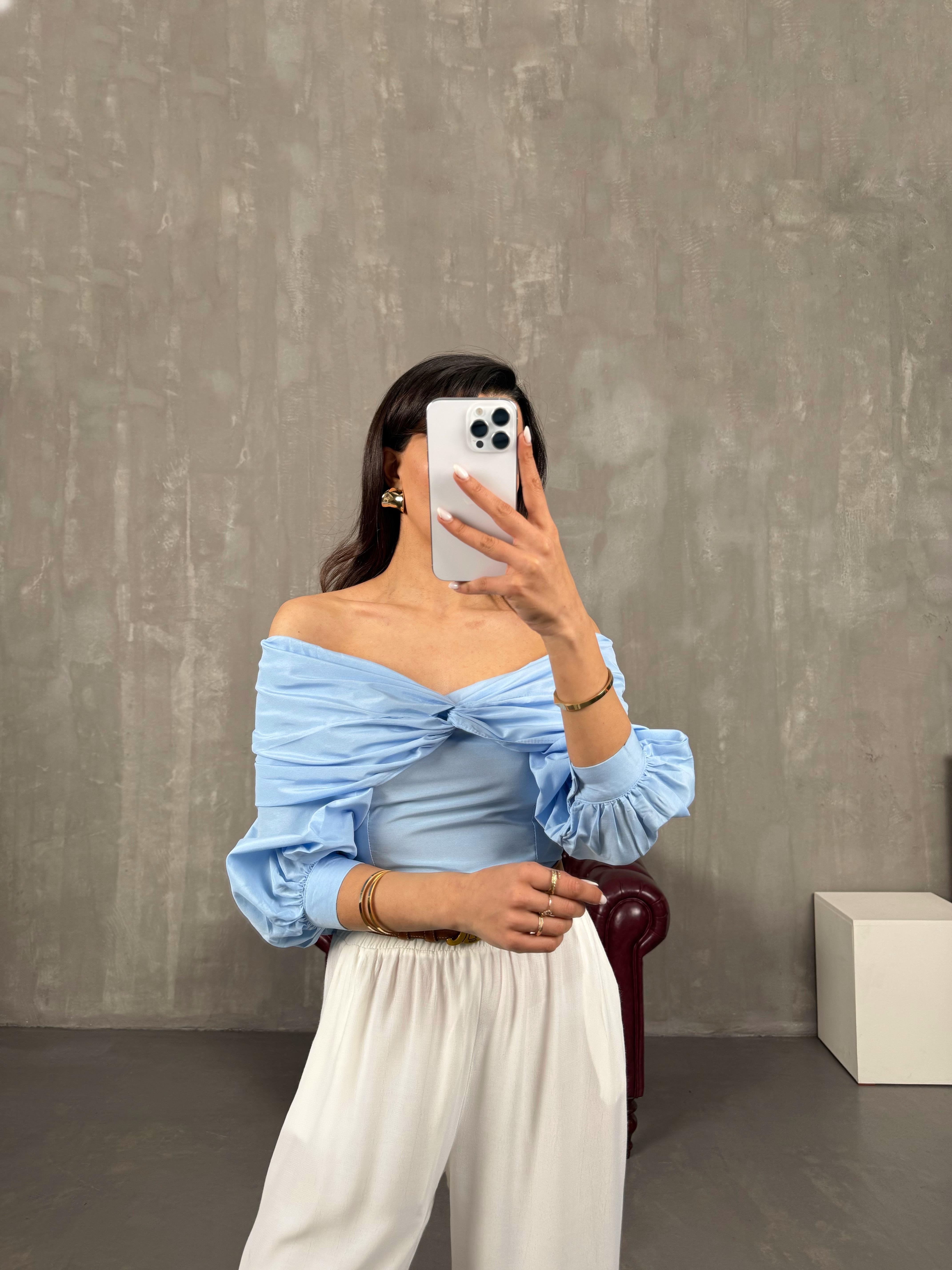 Blue Madonna Collar Crop Shirt Gaus00053