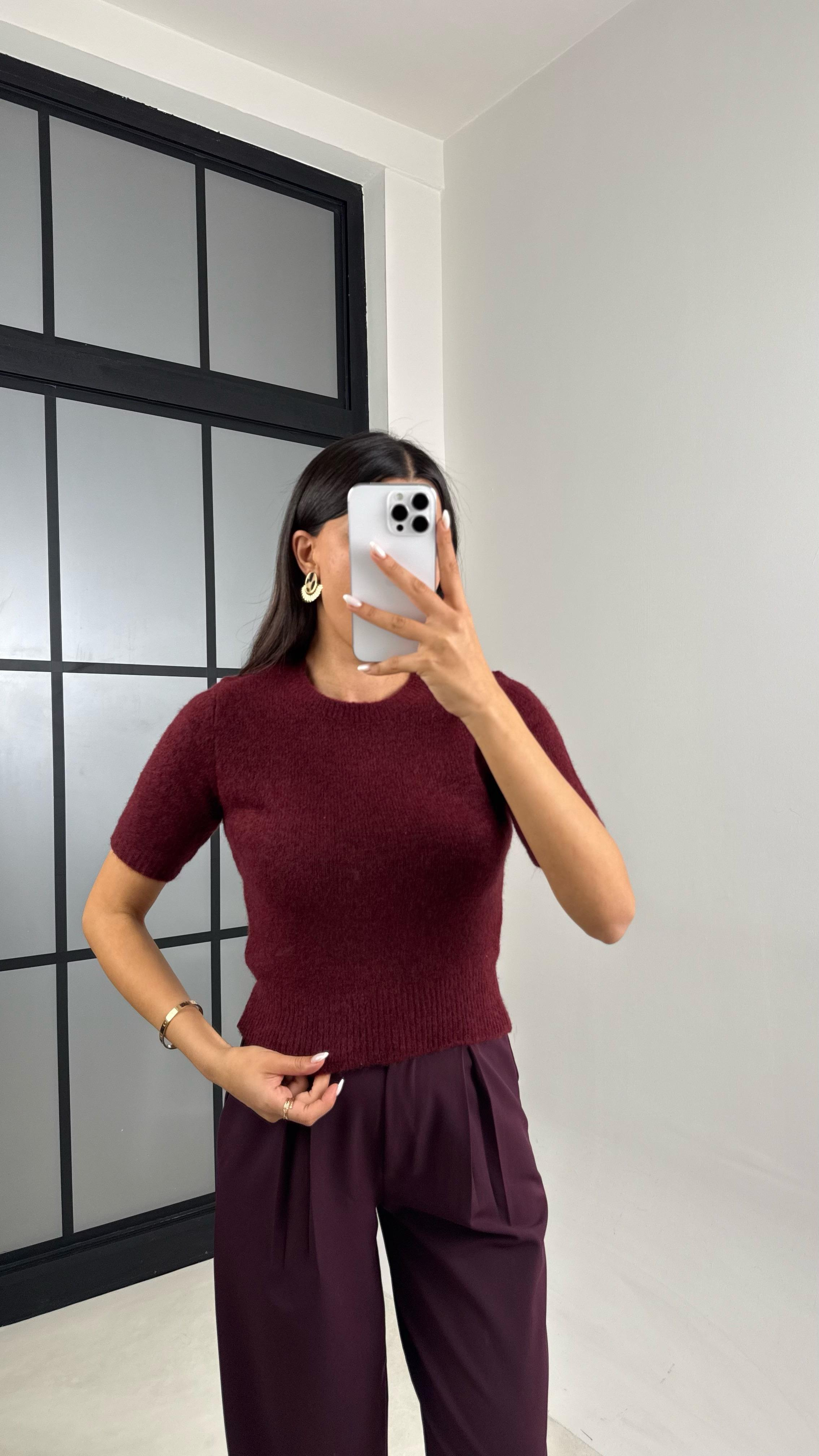 Mürdüm Kısa Kol Yumuşak Triko Kazak GAUS-00554GAUSSweaterGAUS-00554