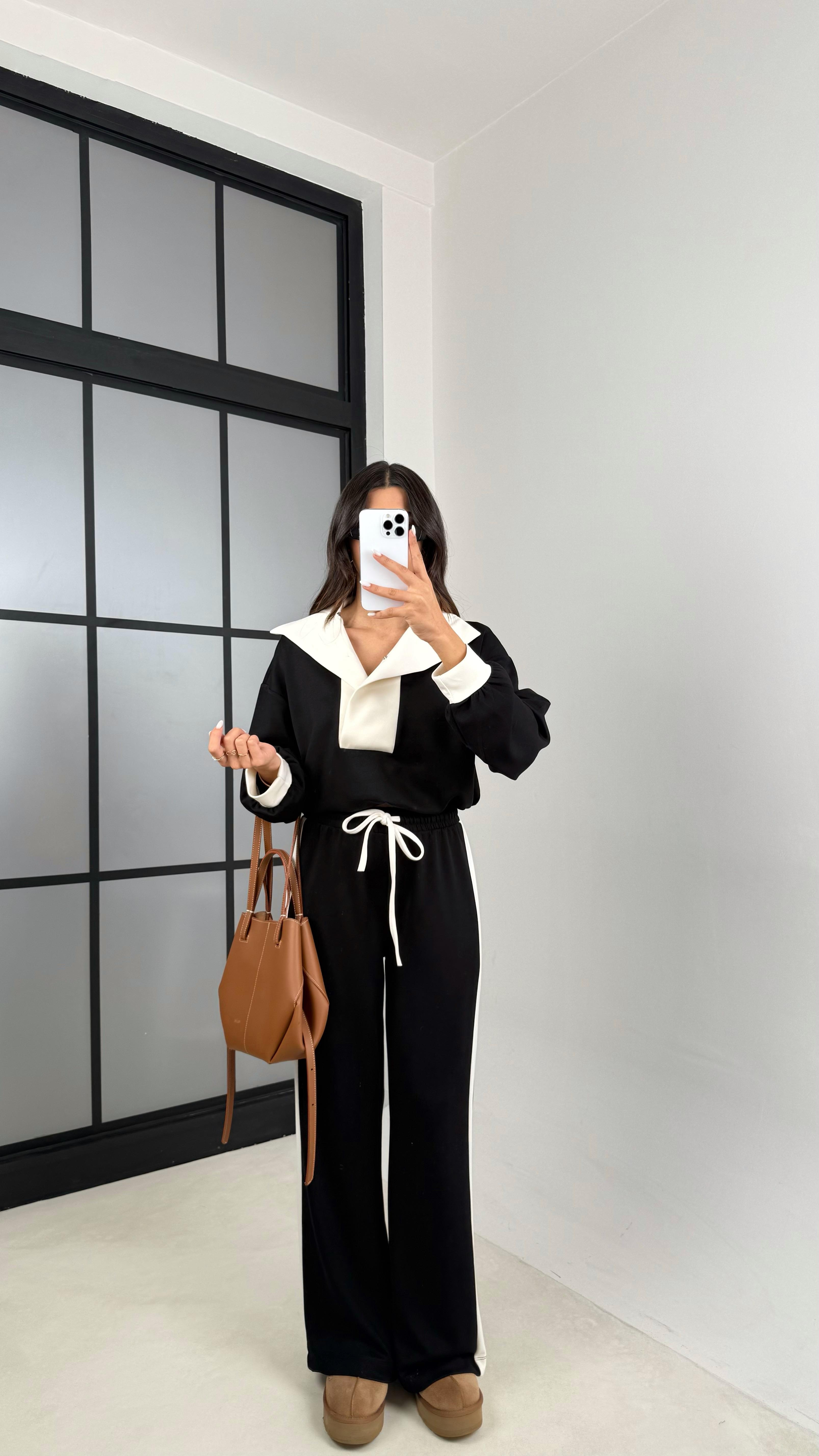 Siyah Beyaz Şerit Detaylı Tasarım Modal Kumaş İkili Takım GAUS-00529GAUSSuitsGAUS-00529